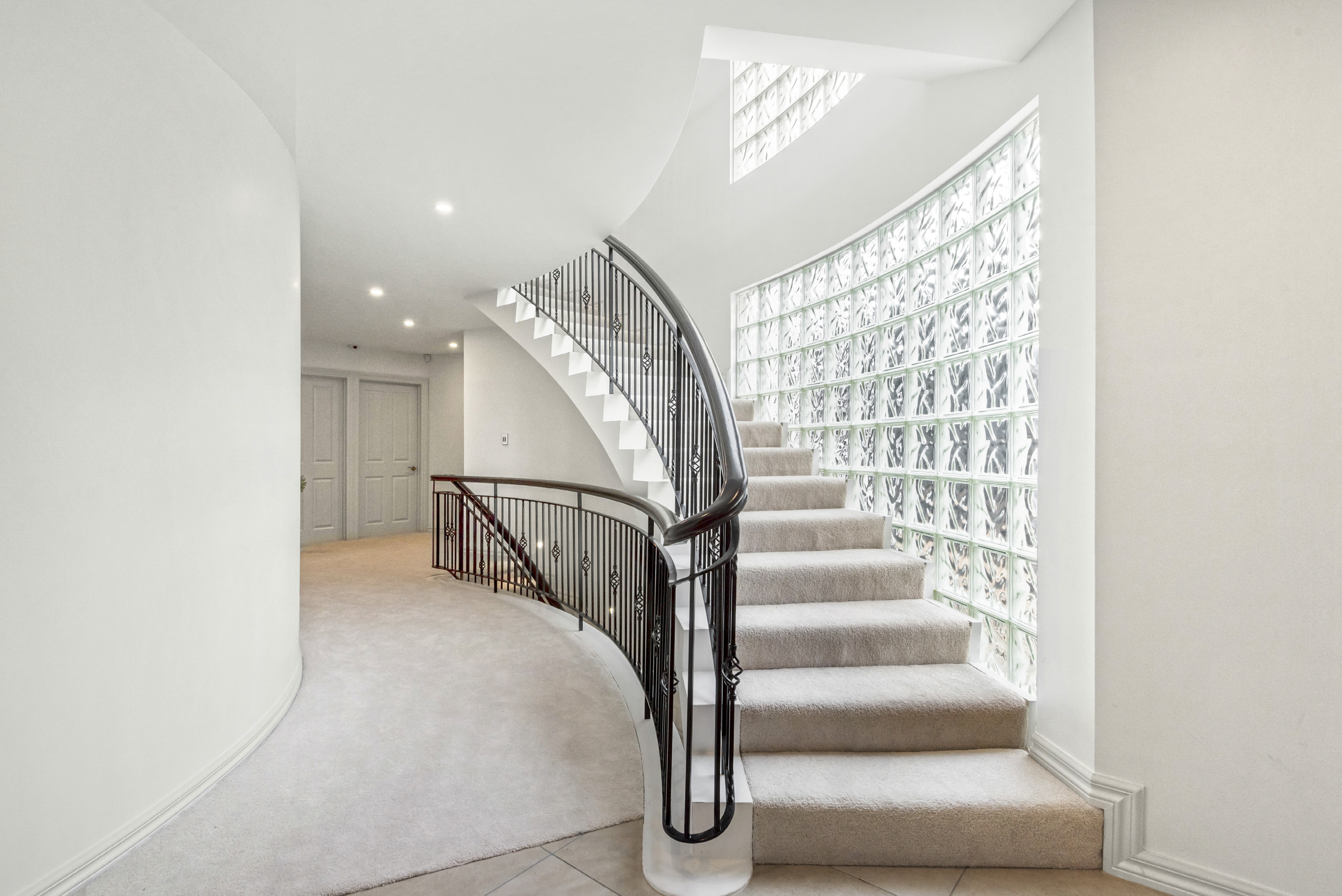 Multiple living and entertaining areas are arranged across three levels with provision for a lift. Entertaining on the lower level is effortless with a kitchenette/bar, lounge, bathroom and gym adjoining the pool and tennis court, while a sweeping staircase in the grand entrance leads to multiple living and entertaining spaces upstairs. The central kitchen adjoins dining and family living spaces, along with additional lounge and entertainment areas, a separate media room and wine storage room. There are five generous bedrooms and four bathrooms, with the private master suite enjoying a luxurious ensuite, walk-in wardrobe and views of the Waitematā Harbour.