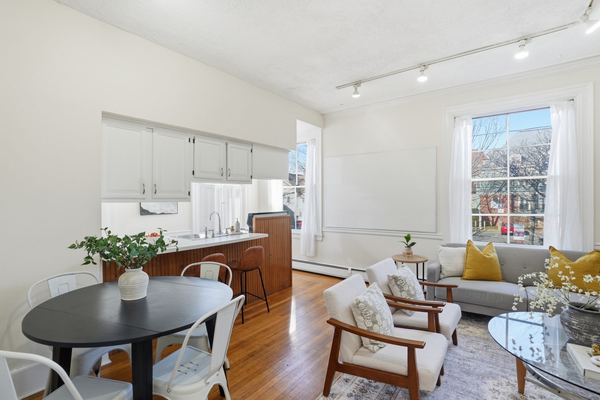 Welcome to an uplifting residence in one of College Hill's most sought-after locations. Just one block from Thayer Street, with its amazing shops, cafes, and restaurants, 265 Bowen offers a coveted East Side lifestyle. Set within a five-unit building with the timeless allure of 1900 Queen Anne/Late Victorian architecture, this charming one-level, one-bedroom condo is filled with character, light, and warmth. Inside, tall ceilings, oversized windows, hardwood floors, and original details create an inviting, airy feel throughout. A gracious entry welcomes you with period charm, highlighted by a glass-paneled cabinet, while a dedicated front hall closet adds everyday functionality. The open living space is a true highlight, featuring a generous living room with ample dining space, a focal fireplace, and a bright kitchen with upper and lower cabinetry, plus a peninsula, perfect for stool seating. The oversized bedroom offers high ceilings, beautiful natural light, and a walk-in closet. A full bathroom with a tiled shower and bathtub is conveniently located nearby. Additional conveniences include common no-fee laundry in the basement, a private storage unit, and assigned off-street parking. The condo fee includes heat and hot water a valuable everyday perk along with snow removal and well-maintained landscaping. A rare opportunity to own a centrally located College Hill residence in one of Providence's most desirable neighborhoods, this Bowen Street beauty is a must-see.