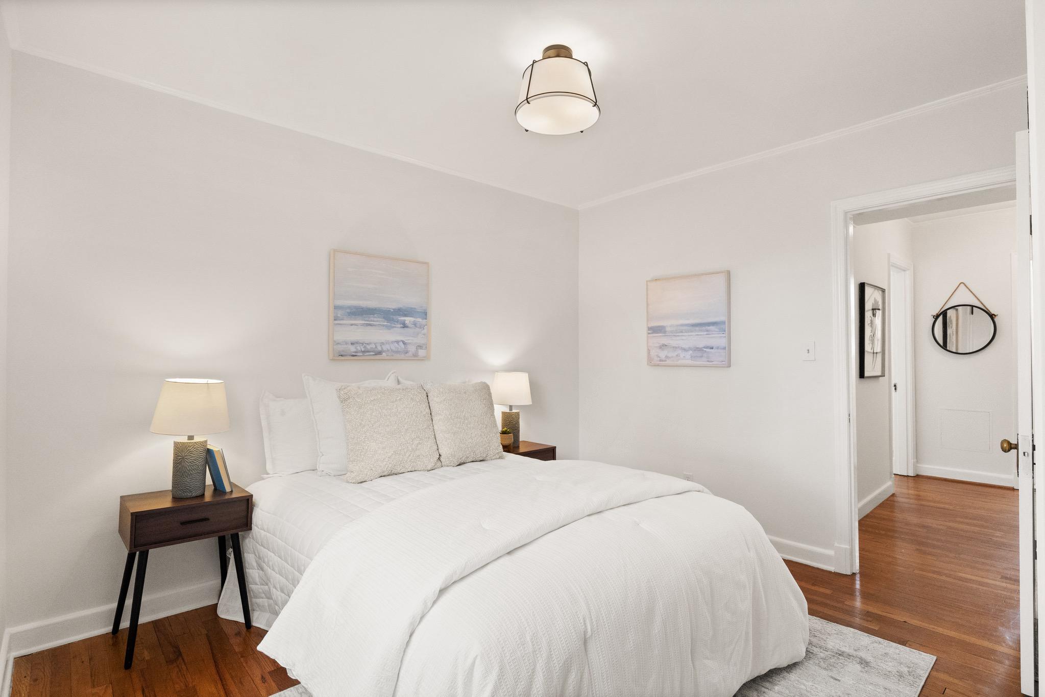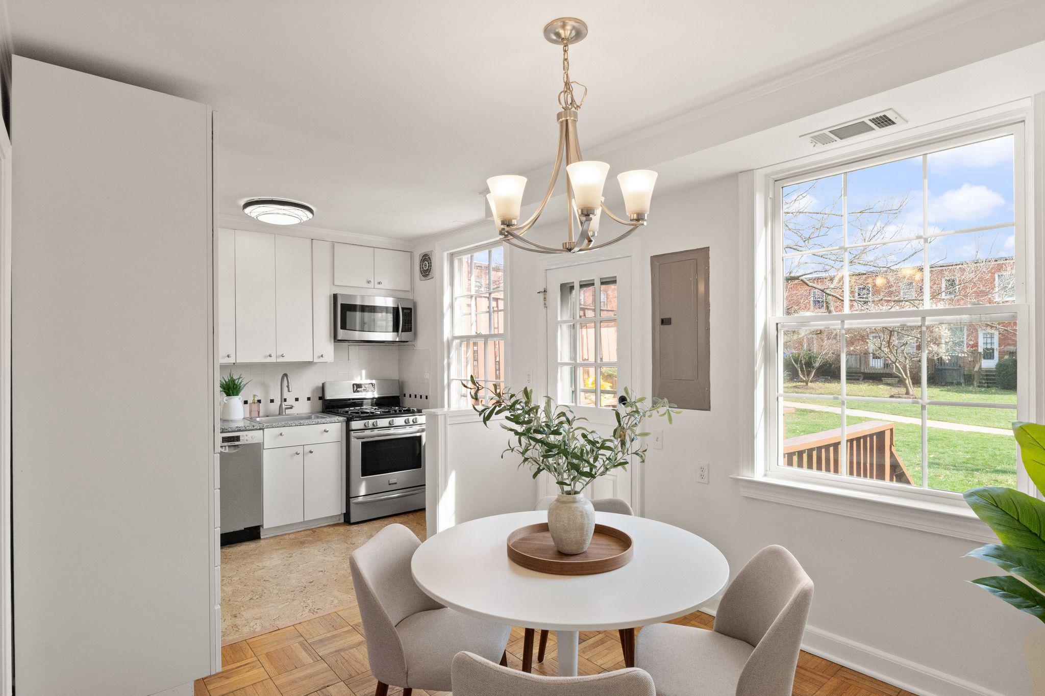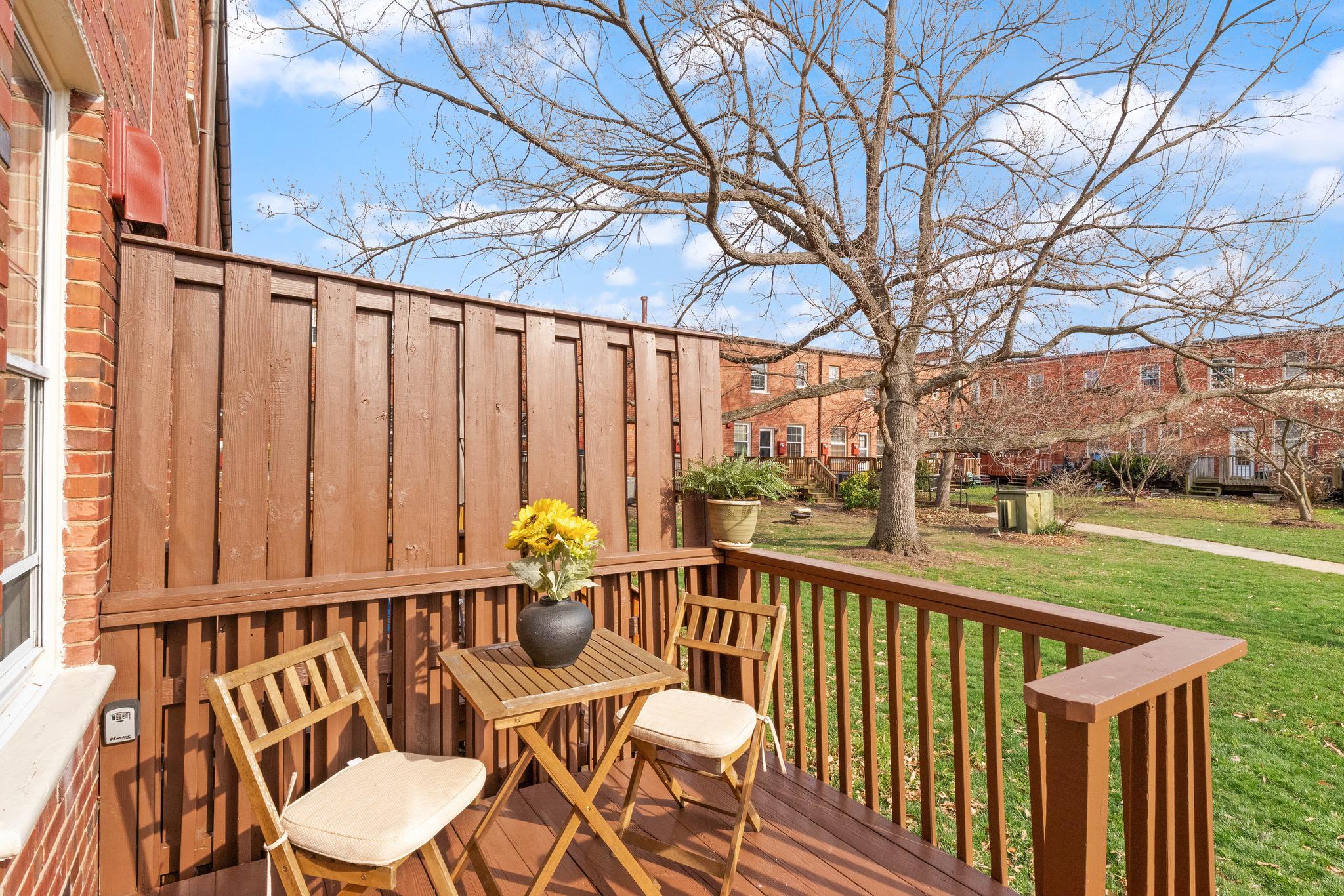 Tucked quietly at the end of a peaceful courtyard within Arlington Village, this thoughtfully positioned 2-bedroom, 1-bath home offers a rare sense of privacy with serene, tree-filled views that come to life in the spring.Inside, hardwood floors run throughout, complemented by fresh paint and an abundance of natural light that fills the living and dining spaces. The kitchen and bath maintain a timeless black-and-white palette - full of character and charm - while offering a clean, functional layout. Just off the kitchen, a private deck creates an easy extension of living space, ideal for morning coffee or unwinding at the end of the day.Both bedrooms are well-proportioned, including a versatile second bedroom with built-in desk, perfect for today’s work-from-home needs. The home balances original charm with everyday livability in a setting that feels both quiet and connected.Arlington Village is known for its unique blend of green space and community amenities, including a pool, tennis courts, and a vibrant neighborhood feel. Ideally located just moments from The Pike, Shirlington, Pentagon City, and DC, with convenient access to public transit, dining, and everyday conveniences.