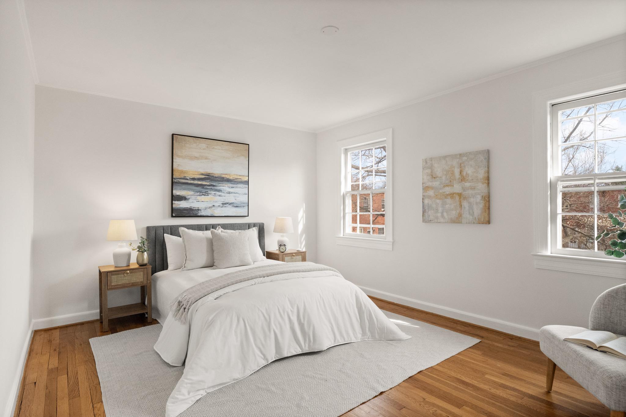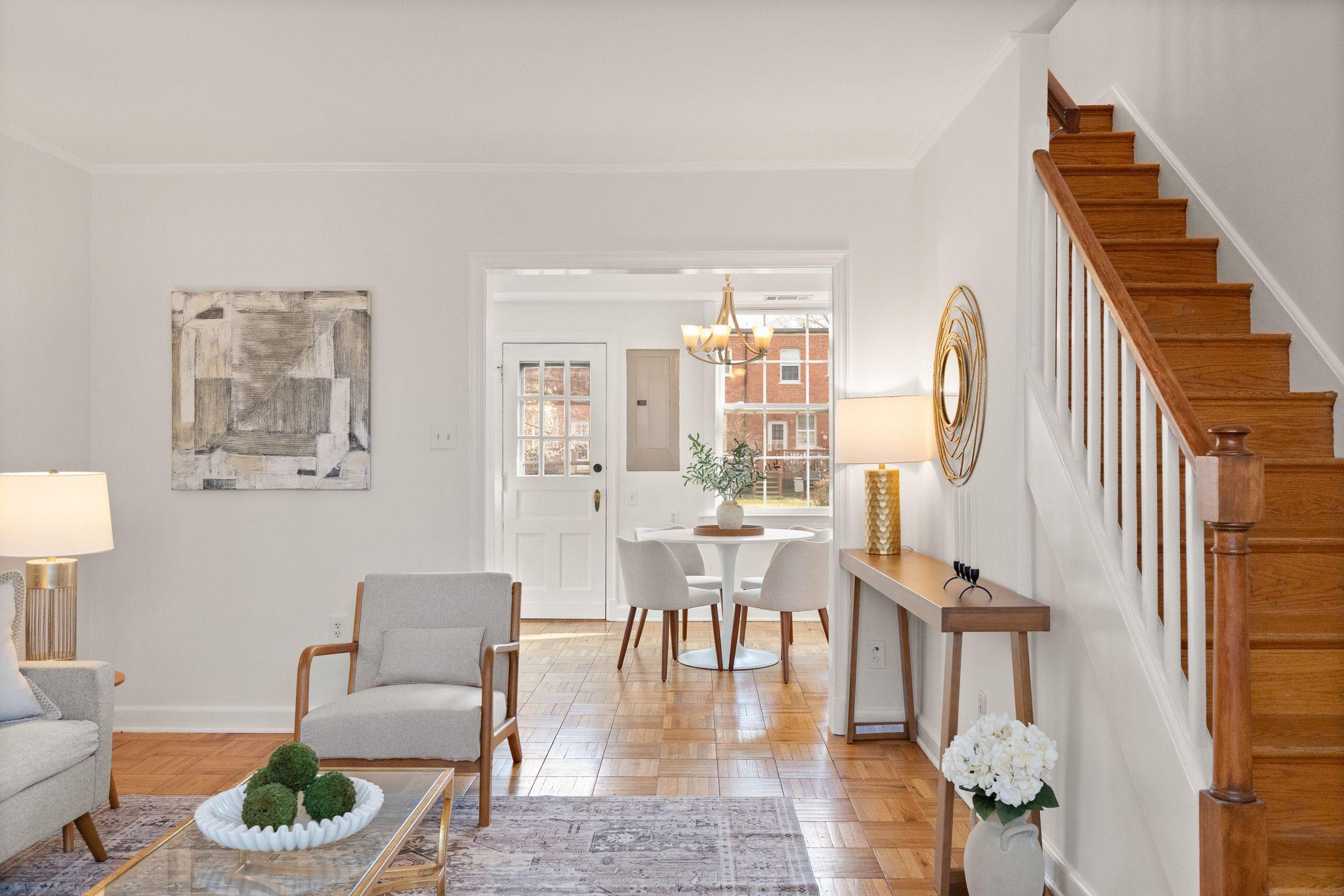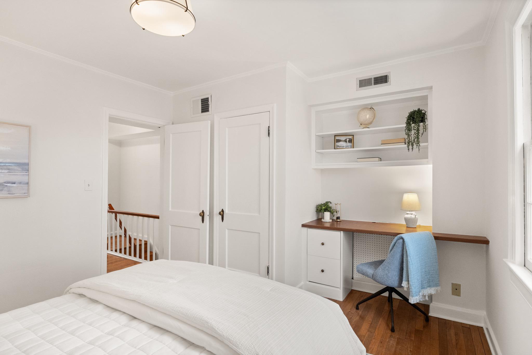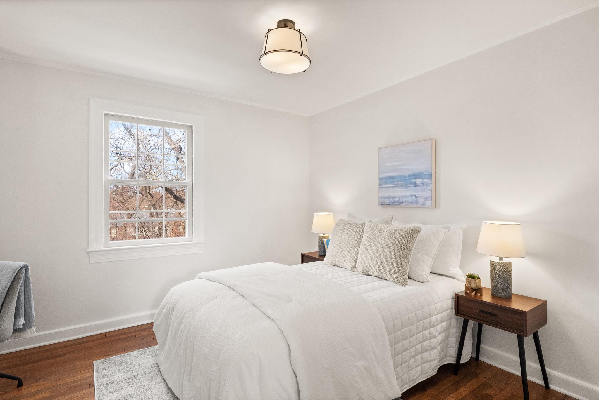 Tucked quietly at the end of a peaceful courtyard within Arlington Village, this thoughtfully positioned 2-bedroom, 1-bath home offers a rare sense of privacy with serene, tree-filled views that come to life in the spring.Inside, hardwood floors run throughout, complemented by fresh paint and an abundance of natural light that fills the living and dining spaces. The kitchen and bath maintain a timeless black-and-white palette - full of character and charm - while offering a clean, functional layout. Just off the kitchen, a private deck creates an easy extension of living space, ideal for morning coffee or unwinding at the end of the day.Both bedrooms are well-proportioned, including a versatile second bedroom with built-in desk, perfect for today’s work-from-home needs. The home balances original charm with everyday livability in a setting that feels both quiet and connected.Arlington Village is known for its unique blend of green space and community amenities, including a pool, tennis courts, and a vibrant neighborhood feel. Ideally located just moments from The Pike, Shirlington, Pentagon City, and DC, with convenient access to public transit, dining, and everyday conveniences.