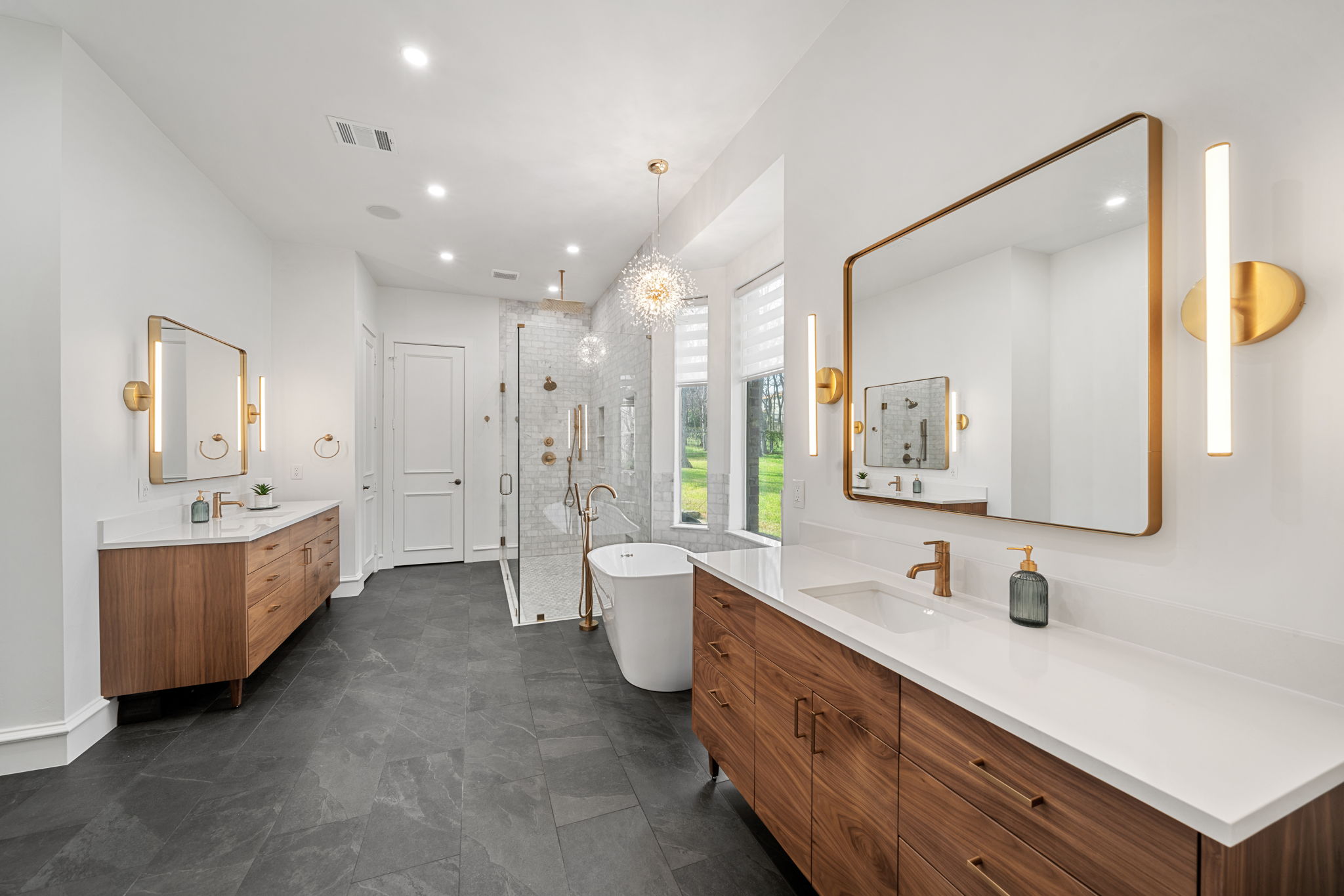Move-in ready with designer updates and set on a beautifully treed one-acre private cul-de-sac homesite, this Rustic Transitional Farmhouse offers the rare combination of privacy, space, and modern living just minutes from Southlake Town Square. Thoughtfully renovated with elevated finishes, the home features a designer kitchen with custom cabinetry, large island, premium appliances, quartz surfaces, and striking details throughout. Additional improvements include a renovated primary bath with spa-inspired finishes, updated living room, new energy-efficient windows, refinished hardwood floors, and custom staircase enhancements. Filled with natural light and designed for both everyday living and entertaining, the layout offers a private downstairs primary suite overlooking the backyard with direct outdoor access and a luxurious bath featuring a freestanding tub, oversized walk-in shower, and dual vanities. A downstairs guest suite with private exterior entry provides an ideal multigenerational option, while a separate private office with doors creates the perfect work-from-home space. Just off the dining room, a private lounge offers a quiet setting for reading, coffee, or conversation, with French doors opening to the covered front patio. Upstairs includes three bedrooms, two baths, a secondary living area ideal for a kids’ retreat, and a flexible media room currently used as a home gym. Outdoor living features a resort-style pool and spa, covered outdoor kitchen with grill and ample countertop space, expansive lawn framed by mature trees, and a low-maintenance turf play area for kids and pets. Smart home features include Lutron lighting and Sonos sound systems controlled from wall-mounted Apple devices. The one-acre homesite also offers space to add additional garages if desired, with convenient access to Southlake Town Square, premier shopping and dining, and schooling options including Carroll ISD—a rare opportunity in Southlake, TX.