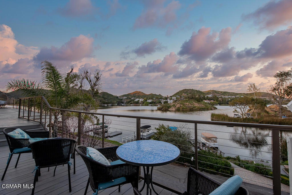 GILLIGAN'S ISLANDA rare and remarkable offering--this is one of the last remaining lakefront estates along the coveted shores of Lake Sherwood, set behind the prestige of a guard-gated enclave. Celebrity-owned, the residence captures sweeping lake and mountain vistas while delivering an elevated waterfront lifestyle defined by serenity and sophistication.Recently reimagined with exceptional taste, this four-bedroom, four-bath home is a showcase of refined design, where every detail has been thoughtfully curated. The selection of tile and materials is nothing short of breathtaking--an artful blend of texture, tone, and craftsmanship that elevates each space with quiet luxury. The gourmet kitchen is both striking and functional, adorned with exquisite quartz stone surfaces, premium appliances, and bespoke finishes that reflect a true sense of elegance.The expansive great room is bathed in natural light, featuring dramatic beamed ceilings, a wood-burning fireplace, and walls of glass that frame the ever-changing beauty of the lake and mountains beyond--creating a seamless dialogue between indoor comfort and the natural world.The primary suite is a beautifully appointed sanctuary, where refined finishes and a tranquil ambiance reflect the home's thoughtful design and understated elegance.Outdoor living unfolds effortlessly with a spectacular wraparound deck that appears to float above the water--an extraordinary setting for both intimate moments and grand entertaining. A delightful pool with a view offers a serene, sun-drenched retreat, perfectly positioned to take in the shimmering lake below, while the adjacent barbecue area creates an inviting space for open-air dining and effortless entertaining.A private boat dock invites days spent boating, kayaking, paddle boarding, fishing, or simply enjoying the rhythm of the water. Above it all, a secluded upper-level bedroom suite--accessed via a private staircase--offers a peaceful retreat with commanding panoramic views.Adding to the home's distinctive character is a charming turret-style belvedere--an architectural jewel that rises like a quiet outpost above the lake. This intimate vantage point offers a truly cinematic perspective, where water, sky, and mountains converge, creating a space that feels both inspiring and serenely removed.A dedicated office with custom built-ins provides a refined space for work or study, completing the home's thoughtful layout.Set on approximately a quarter-acre of wooded grounds within the exclusive Lake Sherwood community, this residence offers a rare blend of privacy, natural beauty, and timeless elegance--just moments from Sherwood Country Club, scenic trails, and the everyday conveniences of Westlake Village.