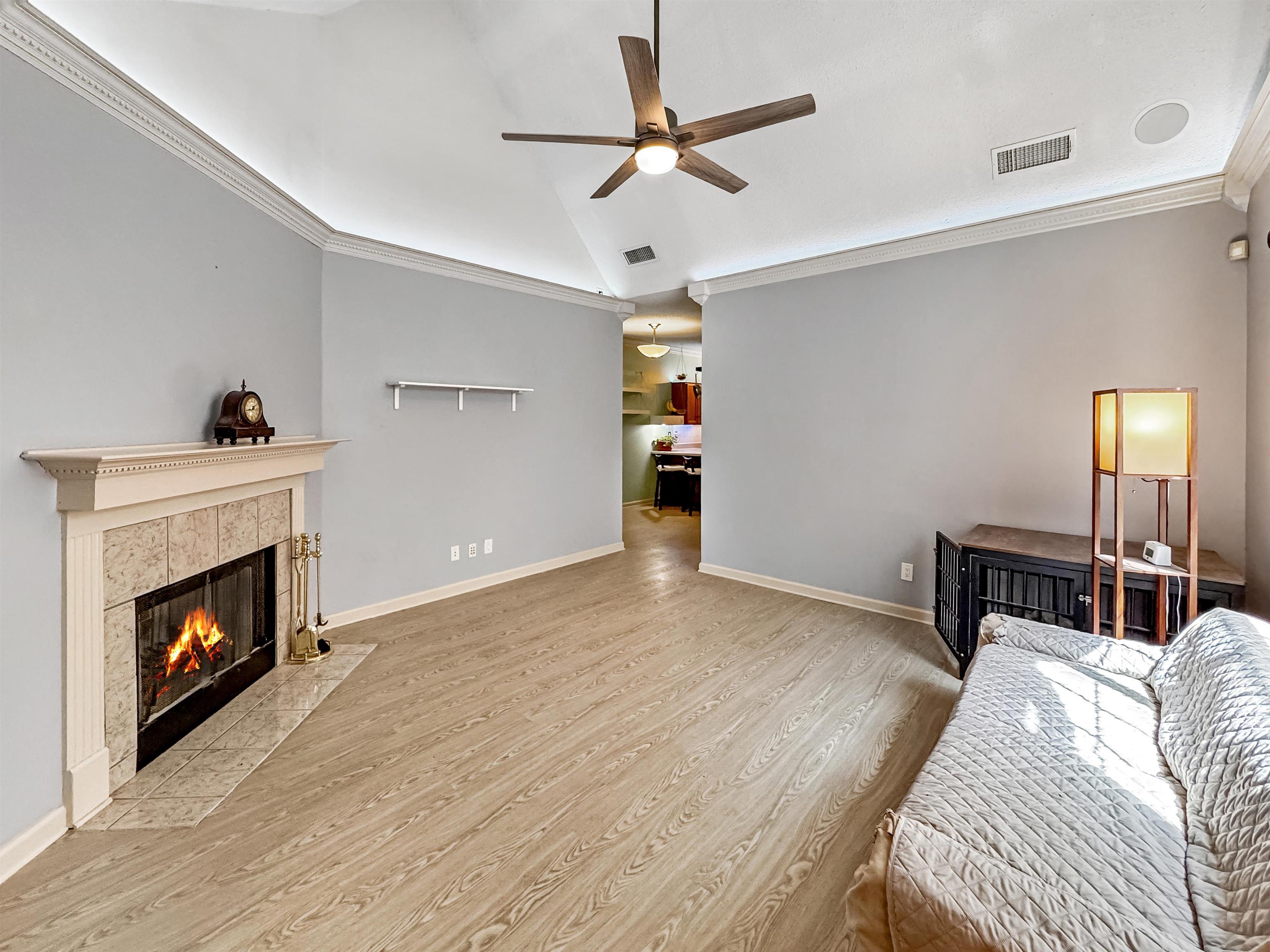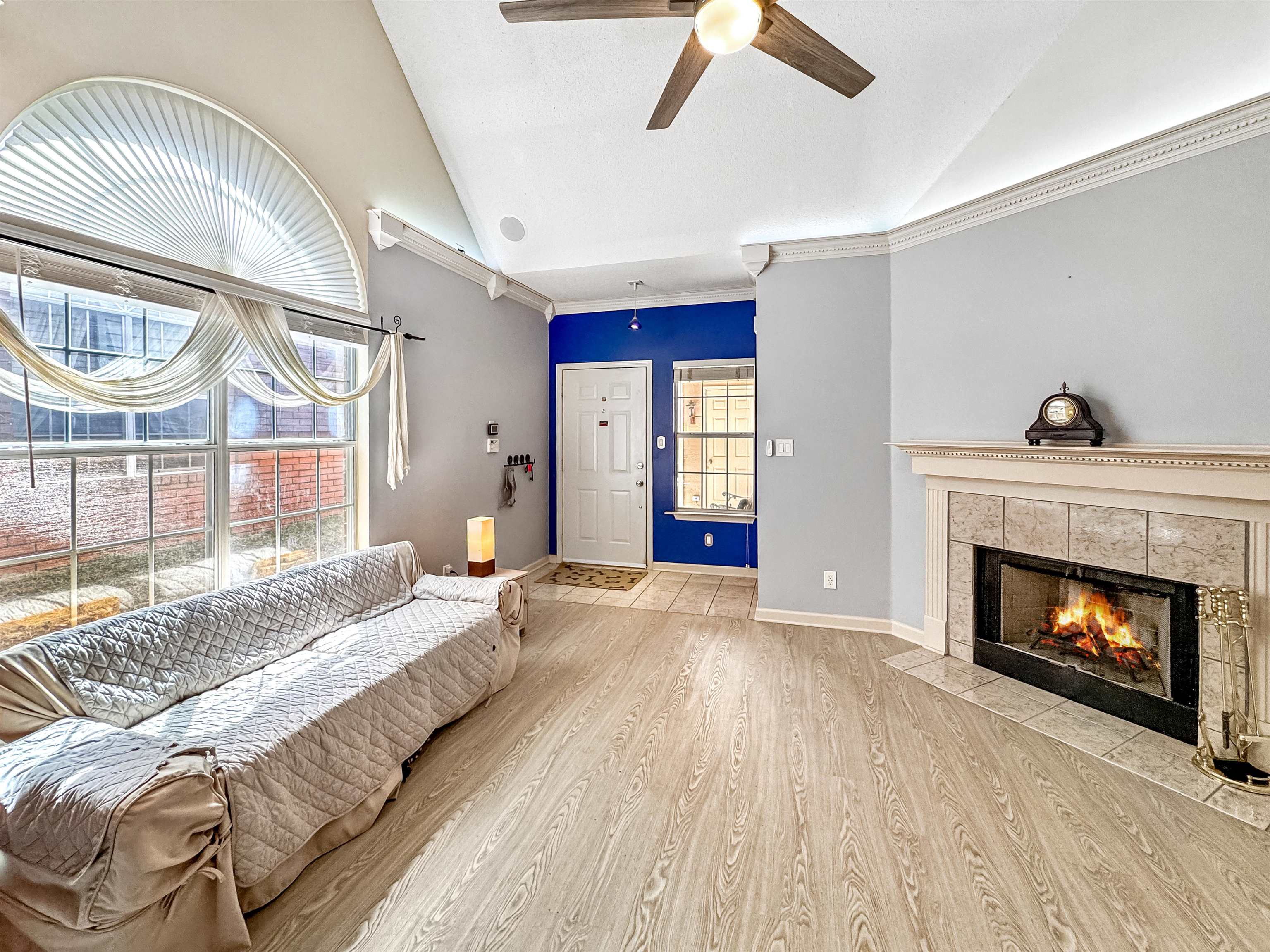 Charming and move-in ready, this Cordova gem sits on a huge fenced lot and offers the perfect blend of style and convenience. The inviting blue front door welcomes you into a thoughtfully designed split bedroom plan featuring luxury vinyl flooring throughout. The spacious den and primary suite boast vaulted ceilings, creating an open and airy feel. The primary also includes double sinks and a walk-in closet for added comfort. You'll love the gorgeous custom dental moulding, intimate lighting, and stylish fixtures that give this home a unique touch. The kitchen comes fully equipped with washer, dryer, and refrigerator remaining. Tankless H2O heater dbl paned windows add efficiency, while fresh paint makes everything feel like new. Step outside to a covered patio lined with cool pavers perfect for relaxing or entertaining. Complete with a 2-car attached garage and conveniently located near shopping, dining, and an easy drive to the airport, all on a quiet street. Affordable and adorable!