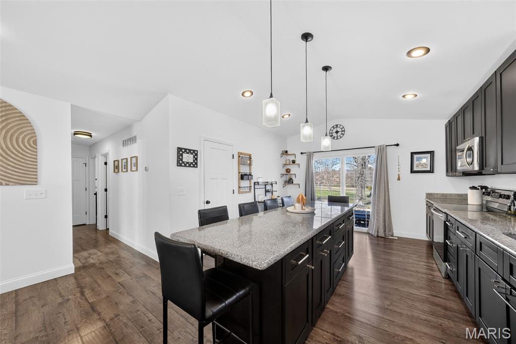 Upgrades galore in this stunning craftsman-style ranch that truly checks every box! From the moment you step inside, you're welcomed by a vaulted great room filled with natural light, recessed lighting, and a warm, modern feel that instantly feels like home. This 3-bedroom, 2-bath beauty is loaded with upgrades featuring laminate flooring throughout, upgraded trim, ceiling fans in every room, and quality double-hung windows. The kitchen is the heart of the home and made for entertaining, showcasing 42" custom cabinetry, stainless steel appliances, a deep sink, pantry, and a large center island perfect for gatherings. The open layout flows effortlessly to the backyard through a sliding glass door ideal for everyday living and hosting alike. Retreat to the spacious primary suite offering three closets and a beautifully appointed bath with custom ceramic tile, a custom shower door, and eye-catching barn wood accents. The lower level adds incredible flexibility with a finished room, egress window for a future bedroom, and a rough-in for a future bathroom. Main floor laundry adds everyday convenience, and the 16x12 deck is the perfect spot to relax or entertain.