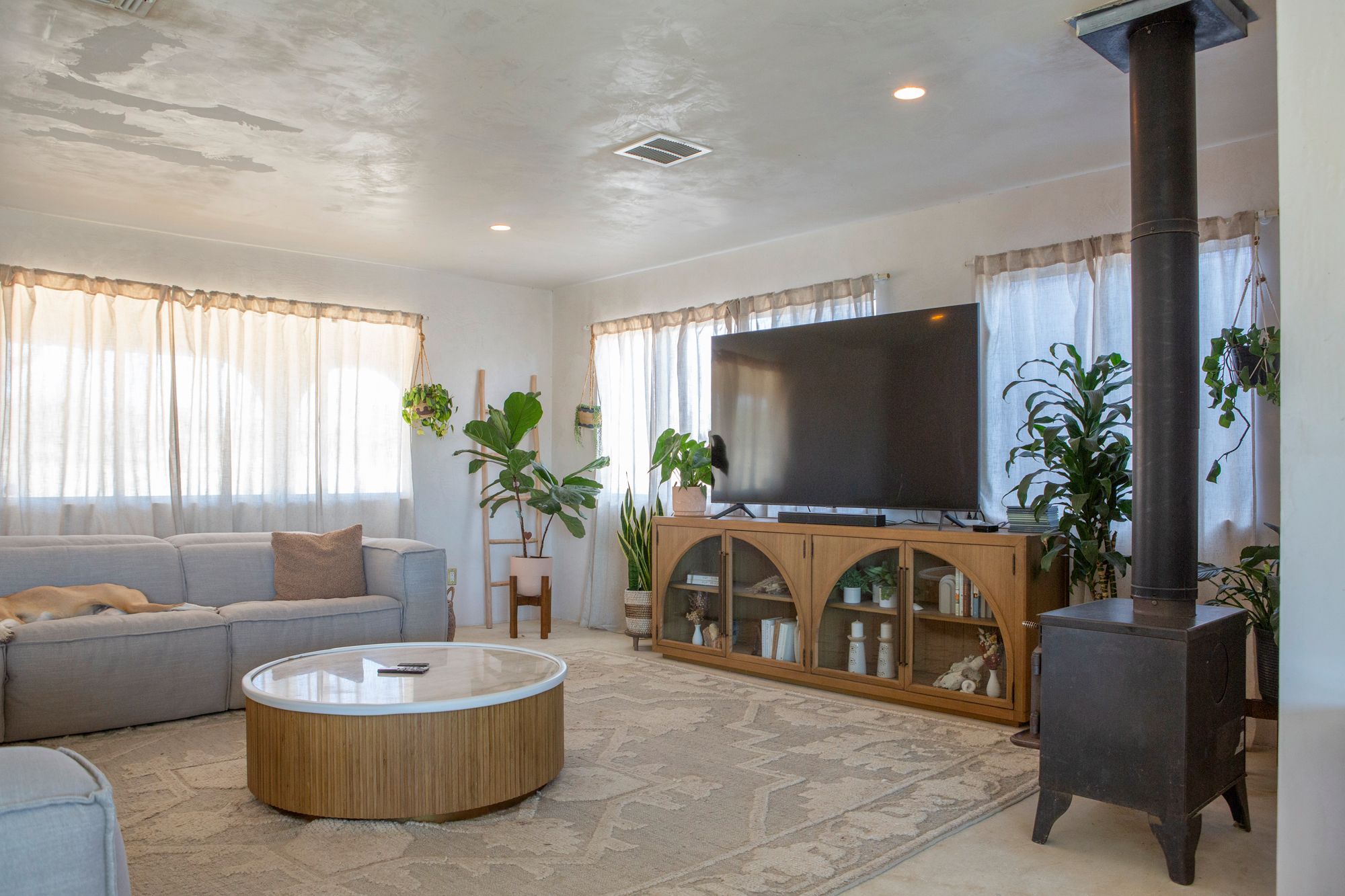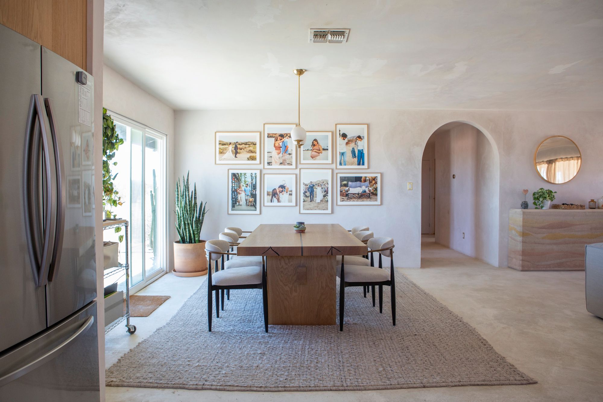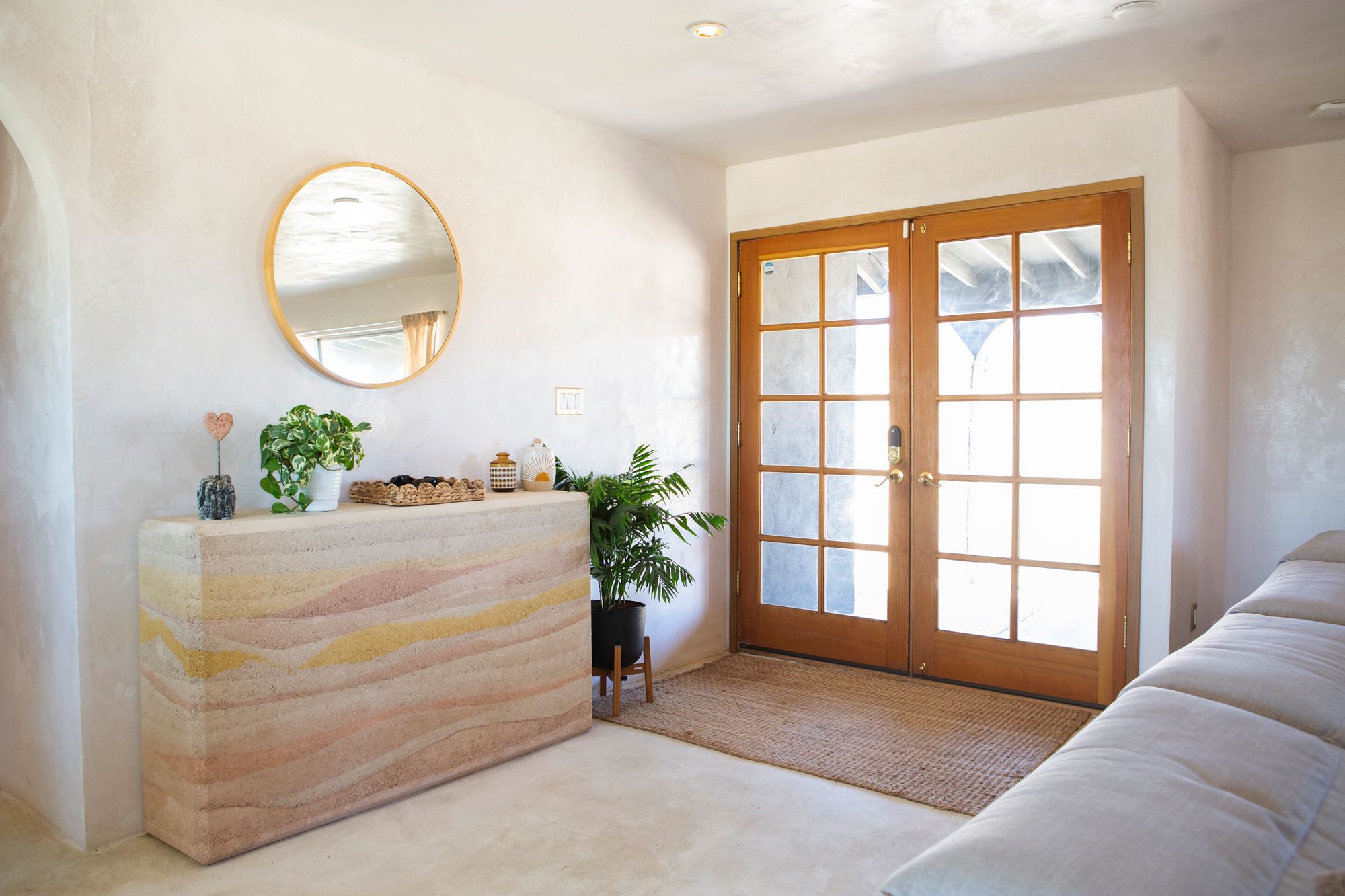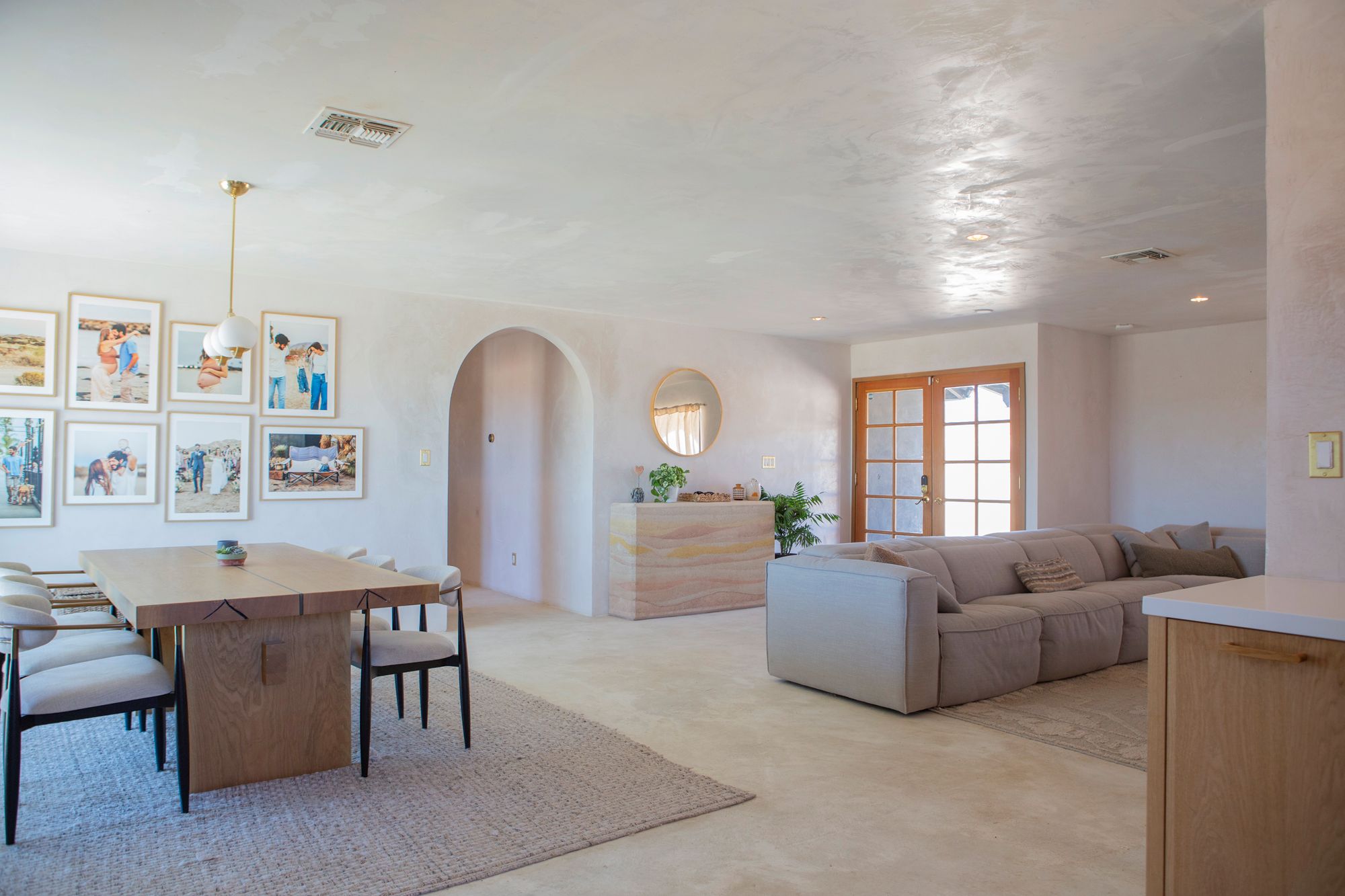 Discover a desert sanctuary thoughtfully designed to harmonize with its natural surroundings. This custom retreat showcases non-toxic, earth-derived materials, seamlessly blending modern living with the beauty of the landscape. Every detail has been carefully considered, from hand-applied lime plaster walls to custom vanities throughout. The home features fully owned solar panels for energy efficiency and long-term peace of mind. Just off the garage, a versatile flex/office space with its own mini-split AC and heating system offers year-round comfort, perfect for work, fitness, or creative use. The fully fenced property, complete with rattlesnake fencing, provides ample space for families and pets to roam freely. Young Palo Verde, Eucalyptus, and Joshua trees are beginning to take root, adding to the property's natural charm and future privacy. Unwind under the desert stars in the hot tub, soaking in breathtaking views and sunsets over Goat Mountain. This home balances privacy and accessibility - remote enough for tranquility, yet just a short drive to town. A rare opportunity to experience desert living at its finest. I'd love to show you this special home!