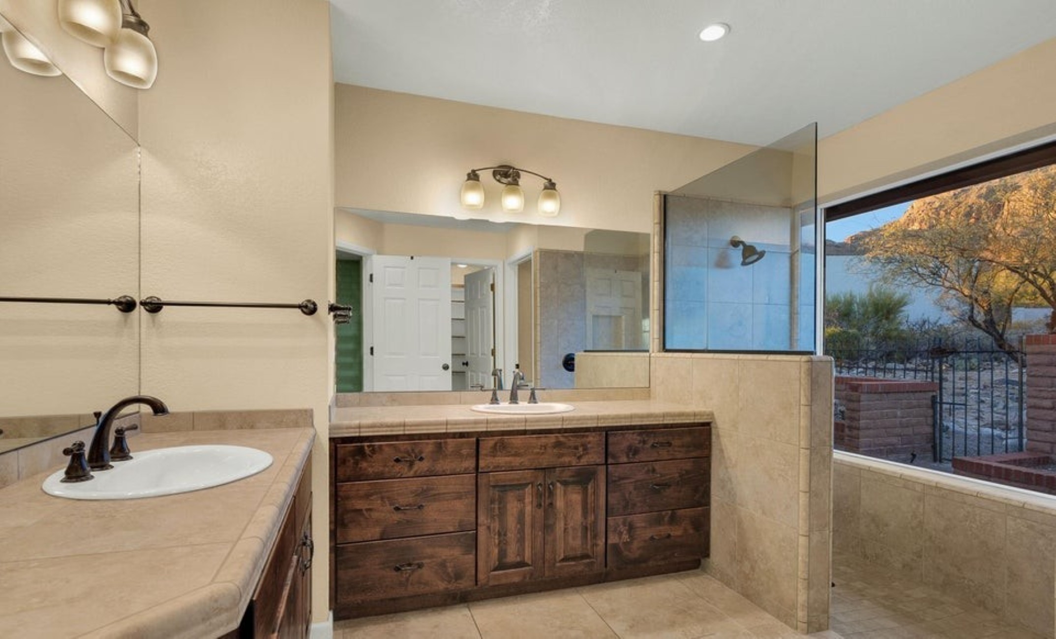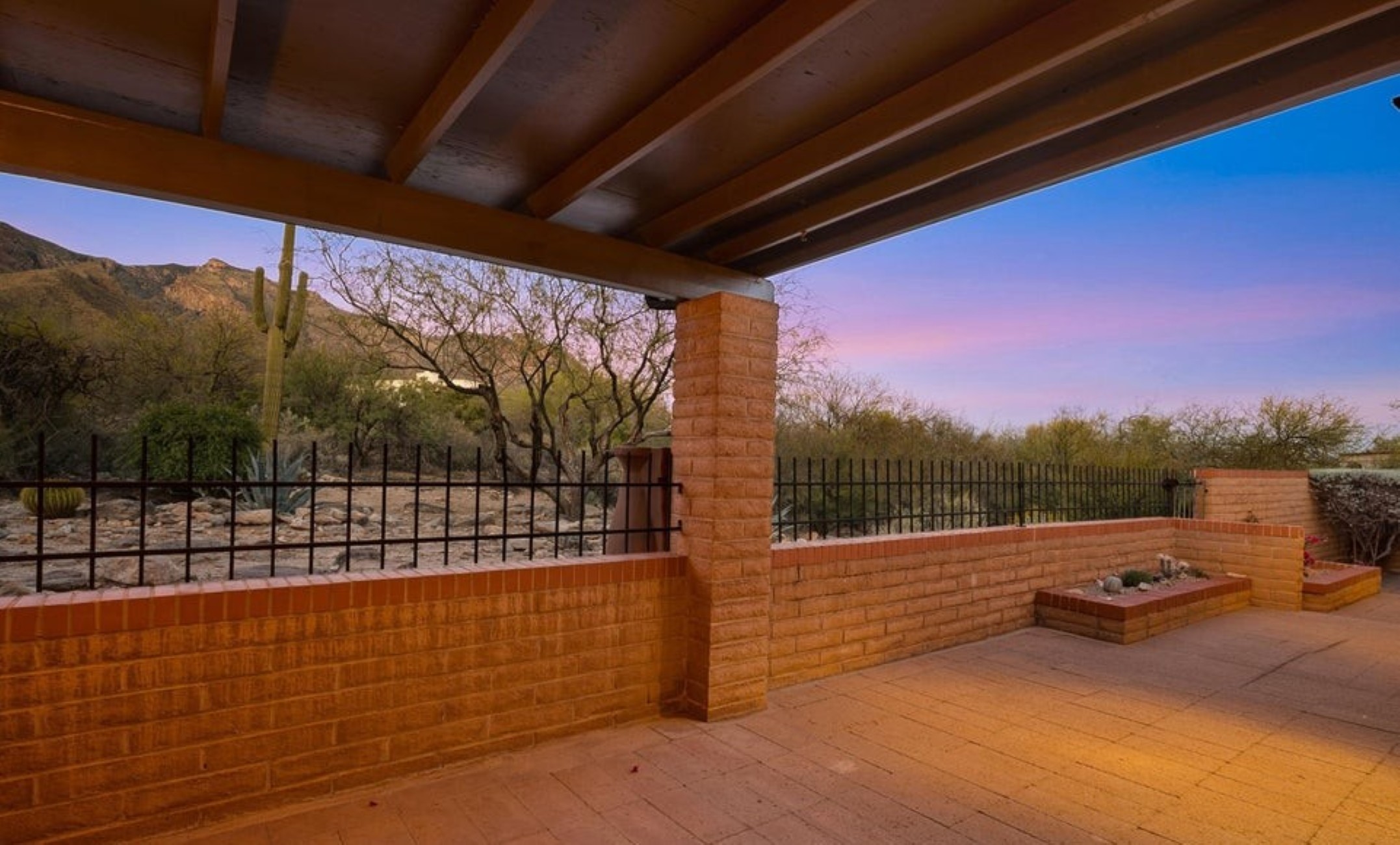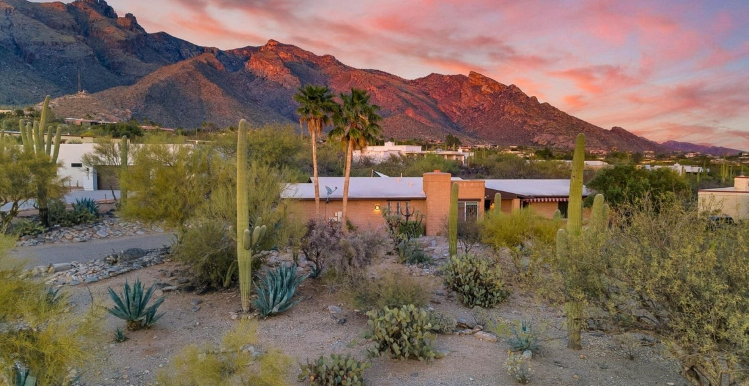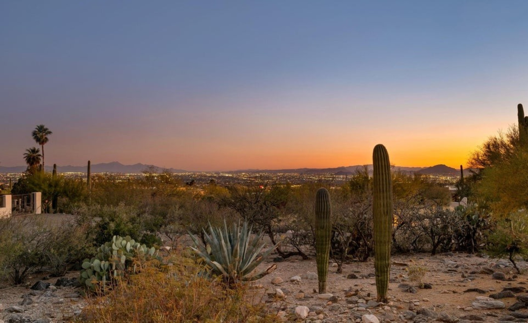 Set high in the Catalina Foothills near the crest of Campbell Avenue, just moments north of La Encantada, this thoughtfully expanded residence captures sweeping city lights and dramatic mountain views from an elevated, over ¾-acre homesite. With permitted additions enhancing both livability and flow, the home offers a rare combination of privacy, efficiency, and move-in-ready comfort, featuring a newer HVAC system, solar water heating, and a recently recoated roof. The updated kitchen is both functional and refined, appointed with rich cherry cabinetry with rollout shelving, granite countertops, and upgraded appliances including an induction cooktop. It opens seamlessly to a generous dining area and an expansive living room, where an electric fireplace creates a warm focal point against a backdrop of glittering Tucson city views. The primary suite is a true retreat, oriented to capture both Catalina Mountain and city vistas. The spa-inspired bath features dual vanities, a spacious walk-in closet, and a walk-in shower framed by picture windows that elevate everyday routines into a scenic experience. A well-positioned guest bedroom enjoys easy access to a full hall bath, while the privately situated third bedroom functions as a secondary suite, complete with its own ensuite bath, ample closet space, and direct access to a charming sunroom, ideal as a light-filled studio, lounge, or "catio," all with stunning mountain views. A pantry/laundry room just off the kitchen provides additional storage and utility, leading to a full-size two-car garage. Outdoors, natural desert landscaping in both the front and rear yards creates a low-maintenance environment that complements the surrounding Sonoran landscape. Ideally located near premier hiking trails, upscale shopping, and dining, this property offers the perfect balance of serenity and convenience, equally suited as a full-time residence or an elegant seasonal retreat.