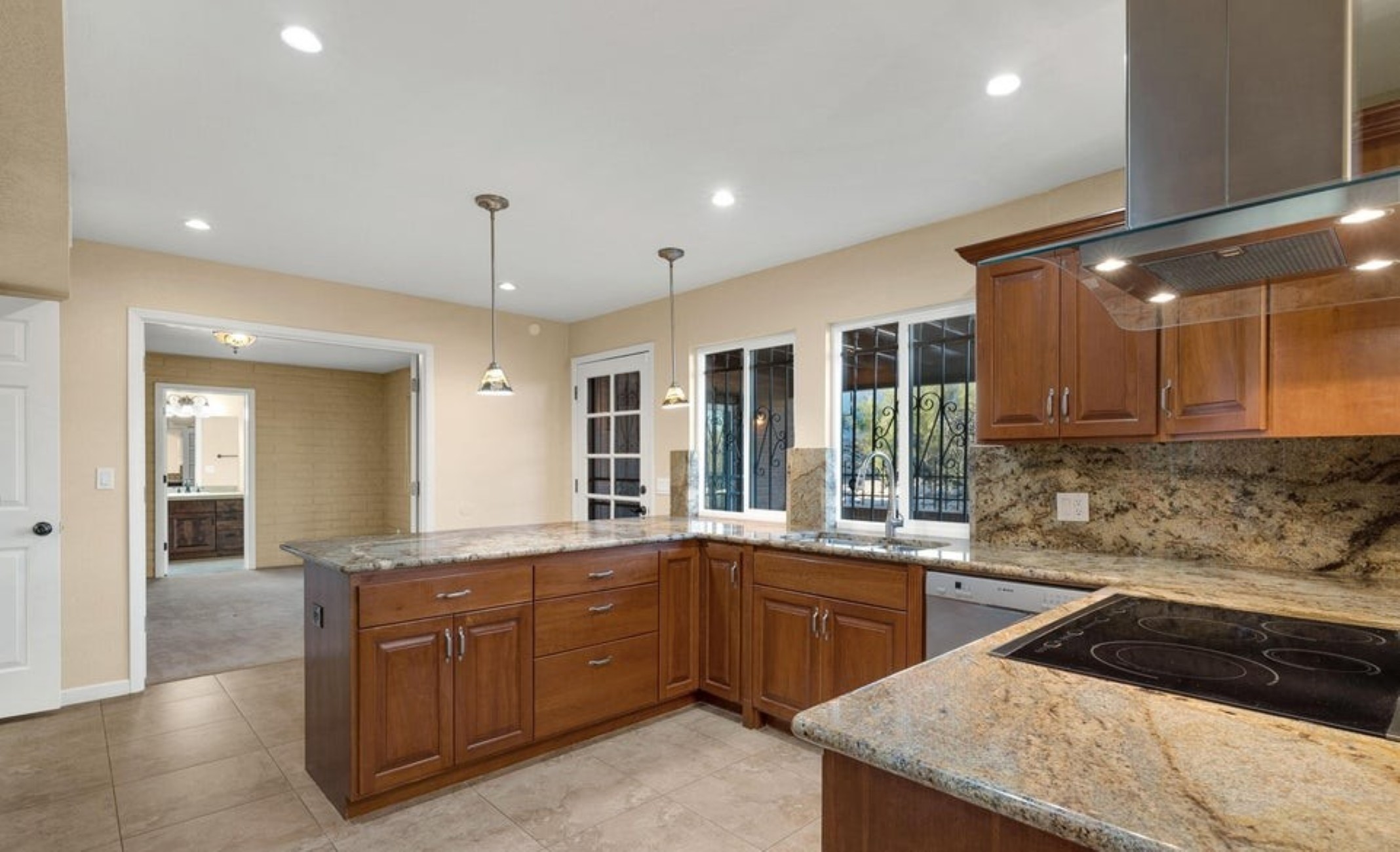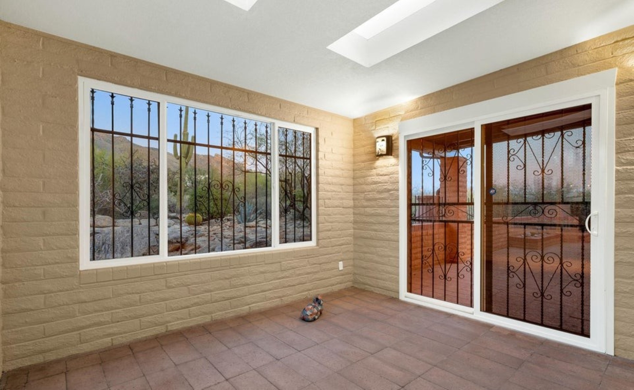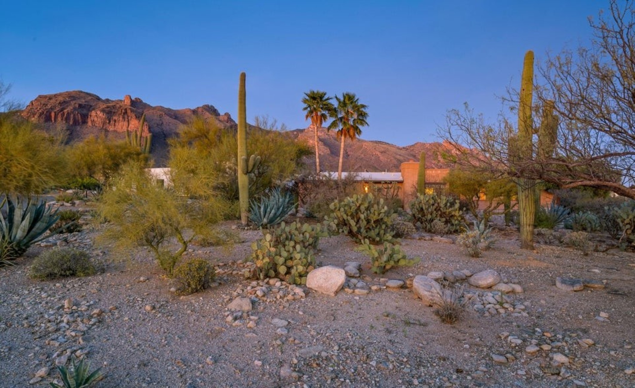 Set high in the Catalina Foothills near the crest of Campbell Avenue, just moments north of La Encantada, this thoughtfully expanded residence captures sweeping city lights and dramatic mountain views from an elevated, over ¾-acre homesite. With permitted additions enhancing both livability and flow, the home offers a rare combination of privacy, efficiency, and move-in-ready comfort, featuring a newer HVAC system, solar water heating, and a recently recoated roof. The updated kitchen is both functional and refined, appointed with rich cherry cabinetry with rollout shelving, granite countertops, and upgraded appliances including an induction cooktop. It opens seamlessly to a generous dining area and an expansive living room, where an electric fireplace creates a warm focal point against a backdrop of glittering Tucson city views. The primary suite is a true retreat, oriented to capture both Catalina Mountain and city vistas. The spa-inspired bath features dual vanities, a spacious walk-in closet, and a walk-in shower framed by picture windows that elevate everyday routines into a scenic experience. A well-positioned guest bedroom enjoys easy access to a full hall bath, while the privately situated third bedroom functions as a secondary suite, complete with its own ensuite bath, ample closet space, and direct access to a charming sunroom, ideal as a light-filled studio, lounge, or "catio," all with stunning mountain views. A pantry/laundry room just off the kitchen provides additional storage and utility, leading to a full-size two-car garage. Outdoors, natural desert landscaping in both the front and rear yards creates a low-maintenance environment that complements the surrounding Sonoran landscape. Ideally located near premier hiking trails, upscale shopping, and dining, this property offers the perfect balance of serenity and convenience, equally suited as a full-time residence or an elegant seasonal retreat.