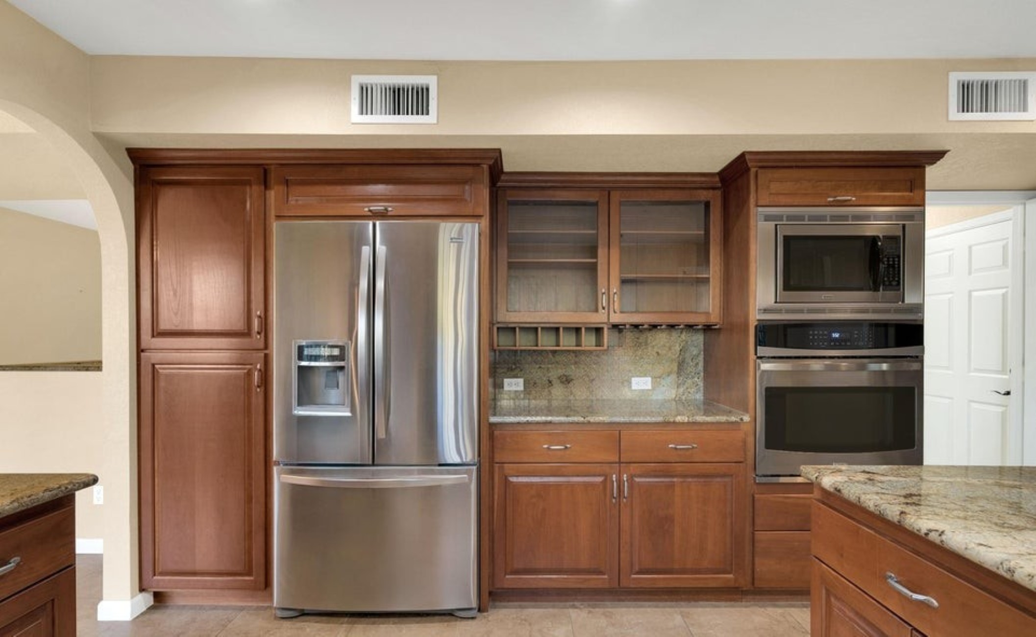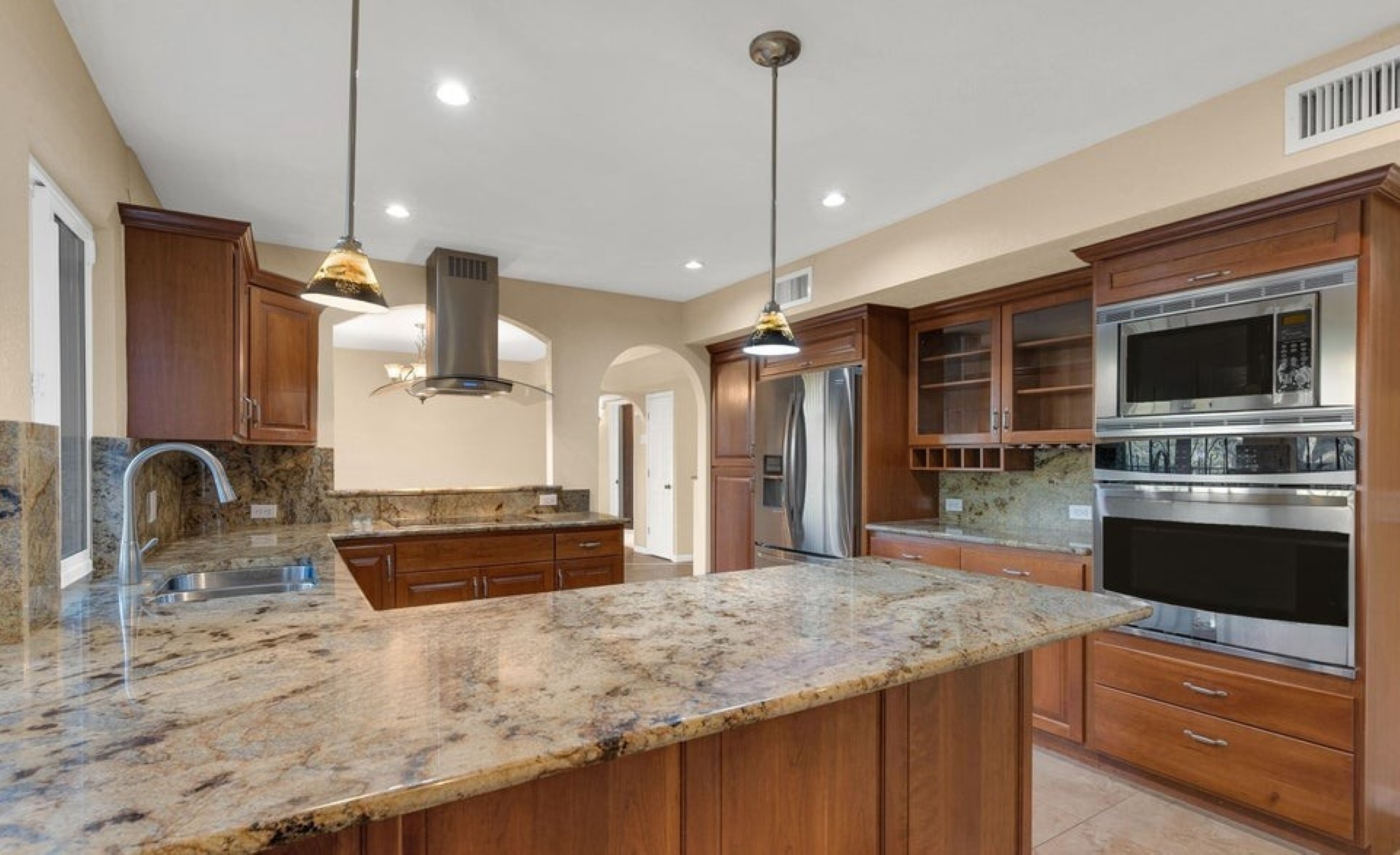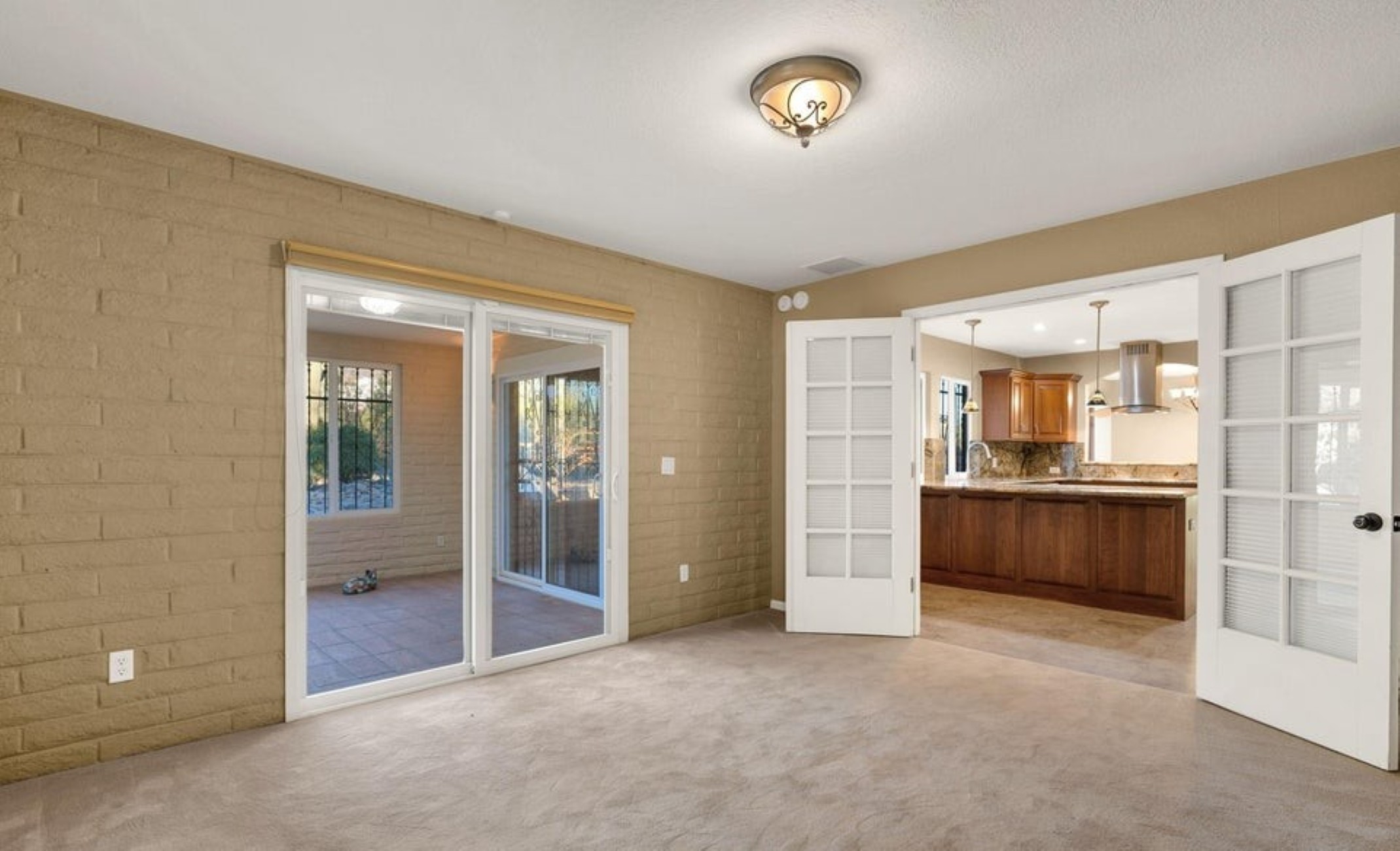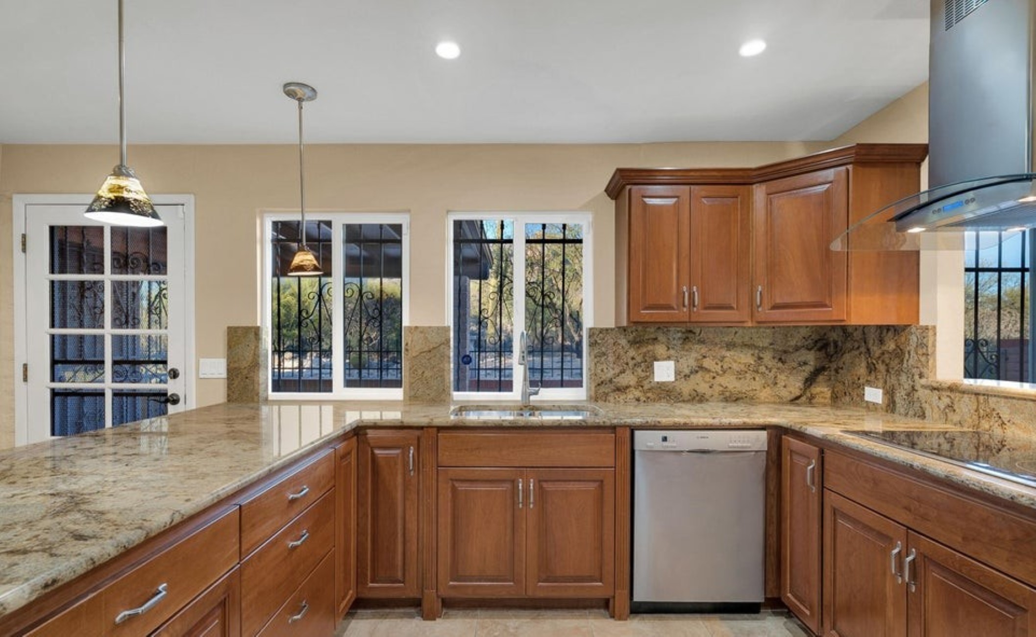 Set high in the Catalina Foothills near the crest of Campbell Avenue, just moments north of La Encantada, this thoughtfully expanded residence captures sweeping city lights and dramatic mountain views from an elevated, over ¾-acre homesite. With permitted additions enhancing both livability and flow, the home offers a rare combination of privacy, efficiency, and move-in-ready comfort, featuring a newer HVAC system, solar water heating, and a recently recoated roof. The updated kitchen is both functional and refined, appointed with rich cherry cabinetry with rollout shelving, granite countertops, and upgraded appliances including an induction cooktop. It opens seamlessly to a generous dining area and an expansive living room, where an electric fireplace creates a warm focal point against a backdrop of glittering Tucson city views. The primary suite is a true retreat, oriented to capture both Catalina Mountain and city vistas. The spa-inspired bath features dual vanities, a spacious walk-in closet, and a walk-in shower framed by picture windows that elevate everyday routines into a scenic experience. A well-positioned guest bedroom enjoys easy access to a full hall bath, while the privately situated third bedroom functions as a secondary suite, complete with its own ensuite bath, ample closet space, and direct access to a charming sunroom, ideal as a light-filled studio, lounge, or "catio," all with stunning mountain views. A pantry/laundry room just off the kitchen provides additional storage and utility, leading to a full-size two-car garage. Outdoors, natural desert landscaping in both the front and rear yards creates a low-maintenance environment that complements the surrounding Sonoran landscape. Ideally located near premier hiking trails, upscale shopping, and dining, this property offers the perfect balance of serenity and convenience, equally suited as a full-time residence or an elegant seasonal retreat.