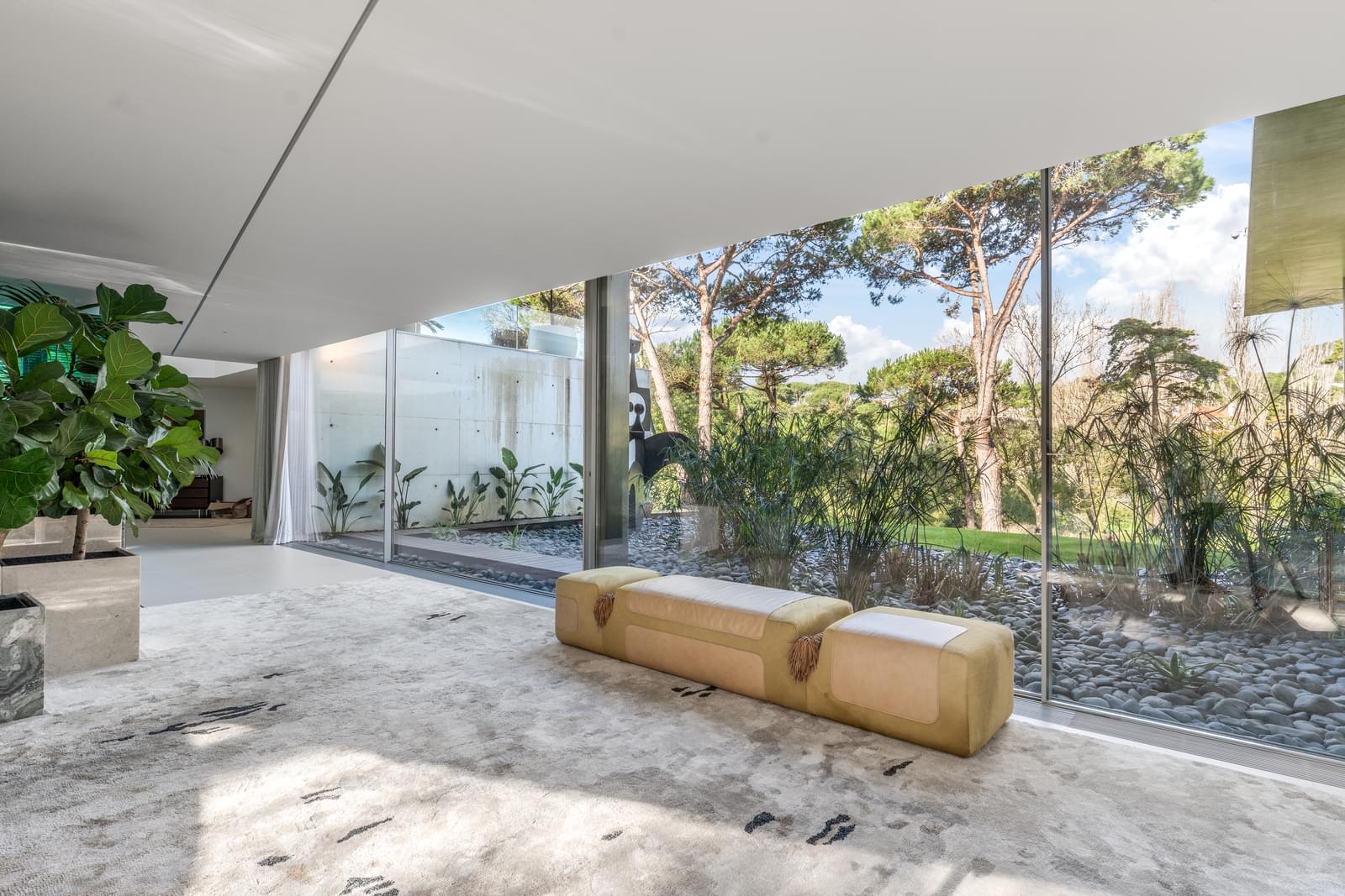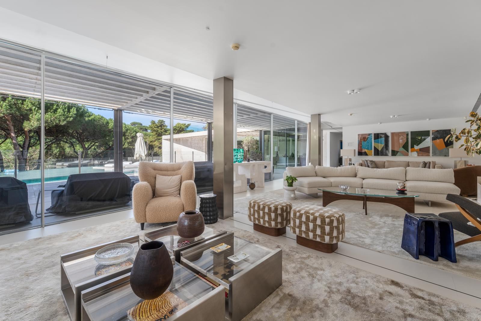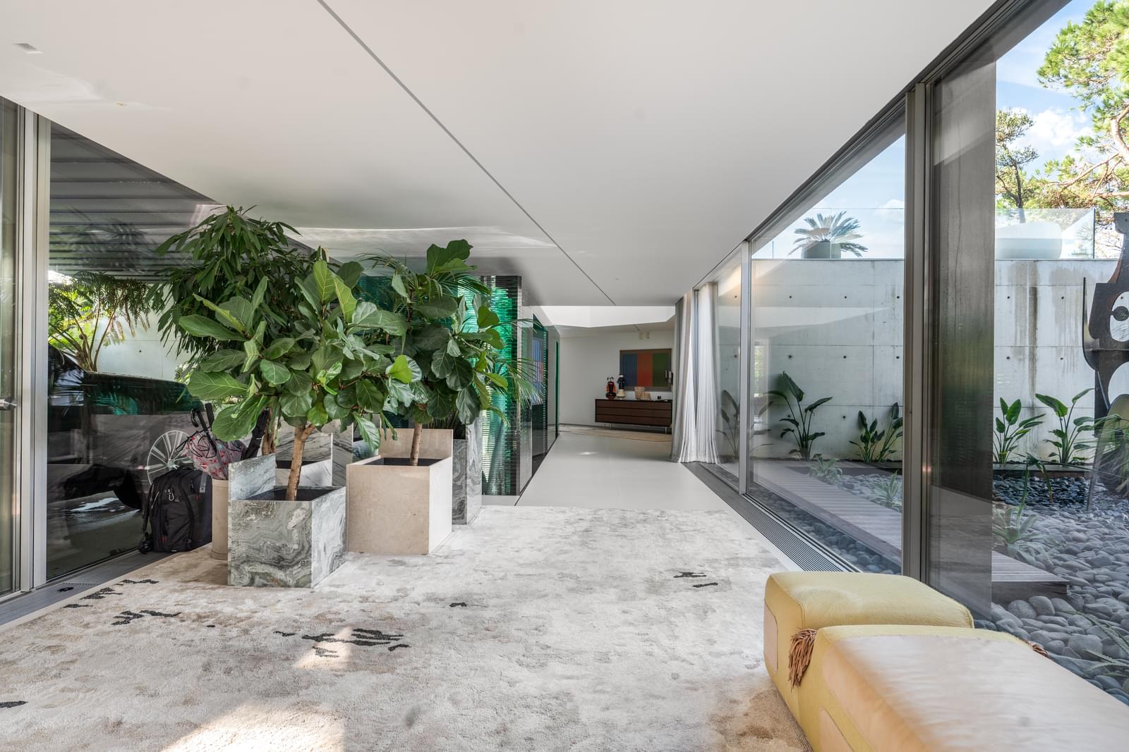 Contemporary villa, located in Quinta do Patino.The villa is inserted in a prestigious condominium, known for its security, discretion, privacy and luxury.It is inserted in a 4527 sqm lot, with a 1087 sqm construction gross floor area.With generous areas and plenty of brightness and privacy, it is distributed as follows:Ground floor: a 55 sqm wide entry hall, a 39 sqm office, a main big living room (77 sqm) with direct access to an ample terrace, a heated swimming pool and a garden, a 28 sqm dining room, a 40 sqm totally fitted kitchen (cooktop, oven, fridge, microwave, steam oven, greenhouse and ice machine)a 30 sqm TV room, with a mezzanine that accesses the winter gardenA 5 sqm social bathroom, a 4 sqm cloakroom area and an elevatorFirst floor:a 23 sqm wide entry halla 20 sqm closeta master suite, composed by a 30 sqm bedroom, a 30 sqm closet, a 20 sqm full private bathroom and with direct access to a terraceSuite 1, composed by an 18 sqm bedroom, an 11 sqm full private bathroom and a 12 sqm closetSuite 2, composed by an 18 sqm living room, an 18 sqm bedroom (with glass that can be converted into opaque glass) and an 8 sqm full private bathroom Suite 3, composed by an 8 sqm walking closet, a 22 sqm bedroom and a 7 sqm full private bathroomThe lower floor, with direct access to the garden, comprehends:a 30 sqm winter gardena 60 sqm games´room (with an outdoor lighting from the swimming pool) and with direct access to the gardena 4 sqm full private bathroom Two suites (25 sqm each)a 15 sqm pantry, with a fridge area and direct access to the kitchen an 18 sqm laundry area, equipped with a washing machine and tumble drier and a 29 sqm drying rack areaTwo storage areas (20 sqm each), completely equipped with wardrobes,Two storage areas (18 sqm + 16 sqm) plus a technical areaA staff´s apartment, composed by a living room, a Kitchenette, two bedrooms and a full private bathroom a 196 sqm garage, with parking space for ten carsIn the outside area of the villa there is an ample parking area, a wide garden, with different leisure areas, a vegetable garden, domestic pets and a heated swimming pool supported by changing rooms.In terms of finishes and equipment, the villa includes an elevator, radiant floor heating in all the rooms , an electric generator, a safe, domotics, air conditioning, double glazed windows, solar panels and an artesian borehole with a decalcifier.The condominium where this villa is inserted provides a concierge service with surveillance and 24 hours security, ample green areas, a lake, tennis courts, a gym, a swimming pool, a football pitch and a playground.It is located only a few minutes away from all sorts of local business, tennis courts, golf courses, beaches, close to the centre of Estoril and with easy accesses to the motorway to Lisbon (25 km).