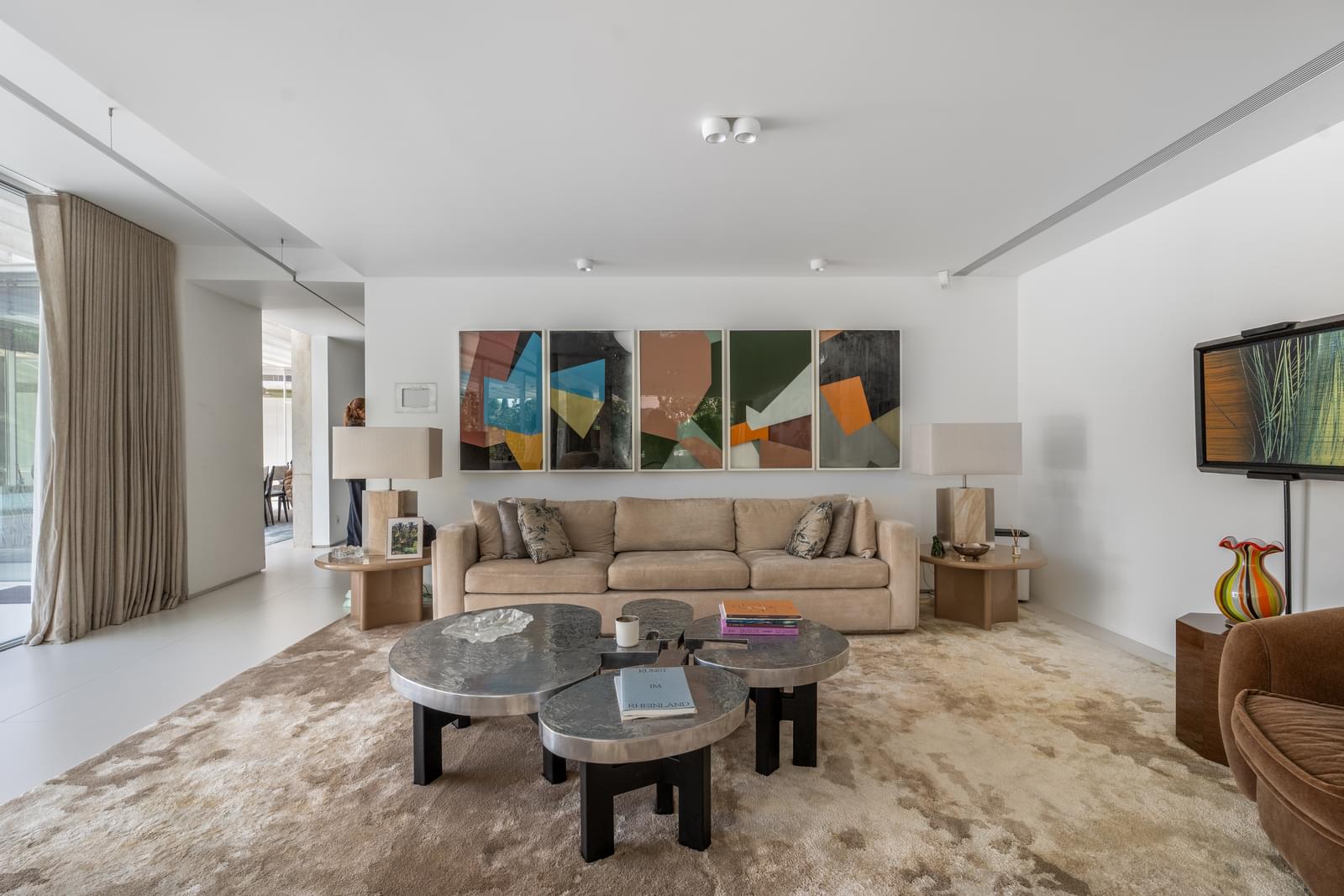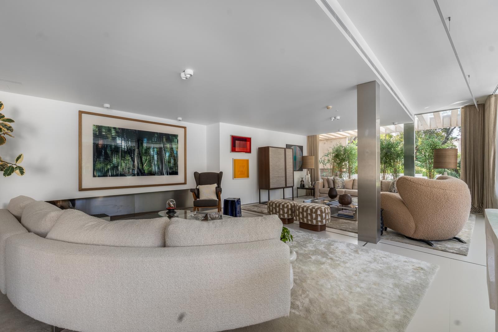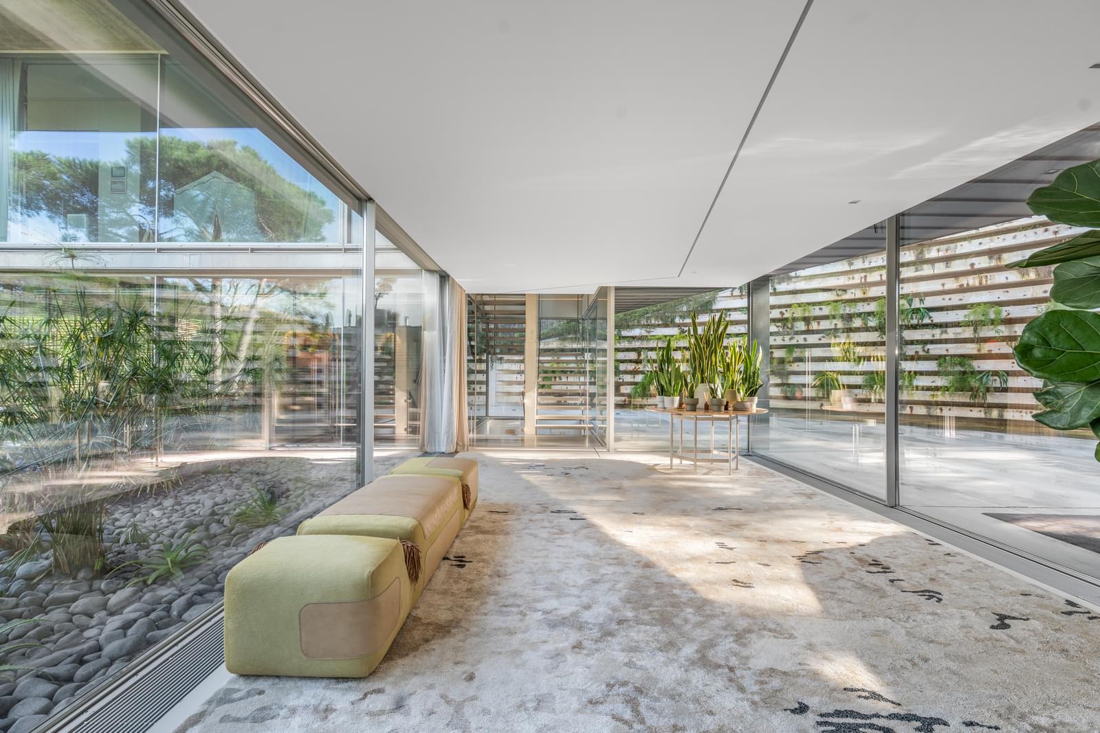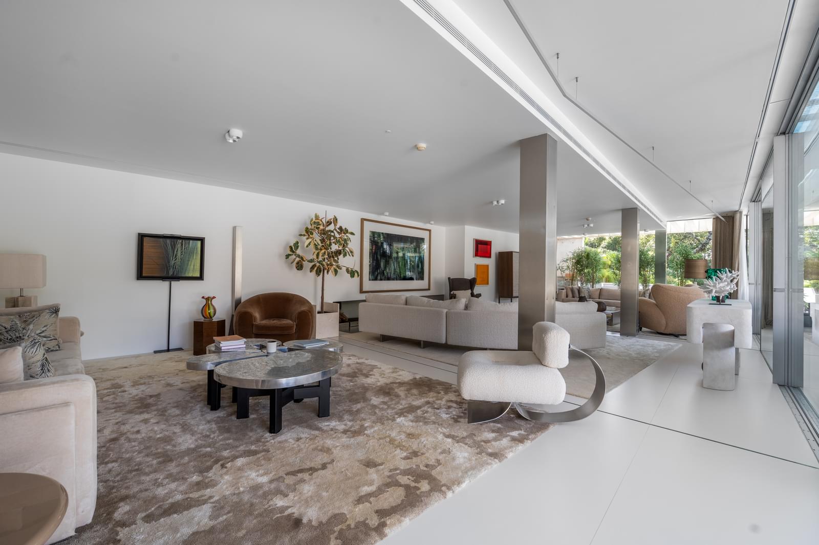 Contemporary villa, located in Quinta do Patino.The villa is inserted in a prestigious condominium, known for its security, discretion, privacy and luxury.It is inserted in a 4527 sqm lot, with a 1087 sqm construction gross floor area.With generous areas and plenty of brightness and privacy, it is distributed as follows:Ground floor: a 55 sqm wide entry hall, a 39 sqm office, a main big living room (77 sqm) with direct access to an ample terrace, a heated swimming pool and a garden, a 28 sqm dining room, a 40 sqm totally fitted kitchen (cooktop, oven, fridge, microwave, steam oven, greenhouse and ice machine)a 30 sqm TV room, with a mezzanine that accesses the winter gardenA 5 sqm social bathroom, a 4 sqm cloakroom area and an elevatorFirst floor:a 23 sqm wide entry halla 20 sqm closeta master suite, composed by a 30 sqm bedroom, a 30 sqm closet, a 20 sqm full private bathroom and with direct access to a terraceSuite 1, composed by an 18 sqm bedroom, an 11 sqm full private bathroom and a 12 sqm closetSuite 2, composed by an 18 sqm living room, an 18 sqm bedroom (with glass that can be converted into opaque glass) and an 8 sqm full private bathroom Suite 3, composed by an 8 sqm walking closet, a 22 sqm bedroom and a 7 sqm full private bathroomThe lower floor, with direct access to the garden, comprehends:a 30 sqm winter gardena 60 sqm games´room (with an outdoor lighting from the swimming pool) and with direct access to the gardena 4 sqm full private bathroom Two suites (25 sqm each)a 15 sqm pantry, with a fridge area and direct access to the kitchen an 18 sqm laundry area, equipped with a washing machine and tumble drier and a 29 sqm drying rack areaTwo storage areas (20 sqm each), completely equipped with wardrobes,Two storage areas (18 sqm + 16 sqm) plus a technical areaA staff´s apartment, composed by a living room, a Kitchenette, two bedrooms and a full private bathroom a 196 sqm garage, with parking space for ten carsIn the outside area of the villa there is an ample parking area, a wide garden, with different leisure areas, a vegetable garden, domestic pets and a heated swimming pool supported by changing rooms.In terms of finishes and equipment, the villa includes an elevator, radiant floor heating in all the rooms , an electric generator, a safe, domotics, air conditioning, double glazed windows, solar panels and an artesian borehole with a decalcifier.The condominium where this villa is inserted provides a concierge service with surveillance and 24 hours security, ample green areas, a lake, tennis courts, a gym, a swimming pool, a football pitch and a playground.It is located only a few minutes away from all sorts of local business, tennis courts, golf courses, beaches, close to the centre of Estoril and with easy accesses to the motorway to Lisbon (25 km).