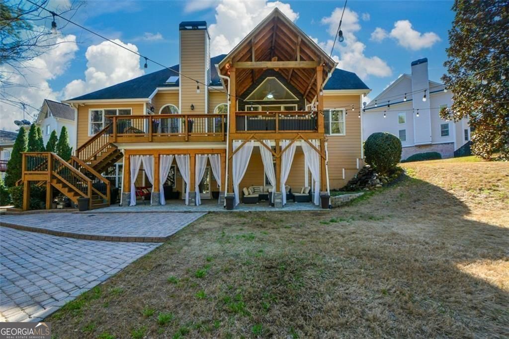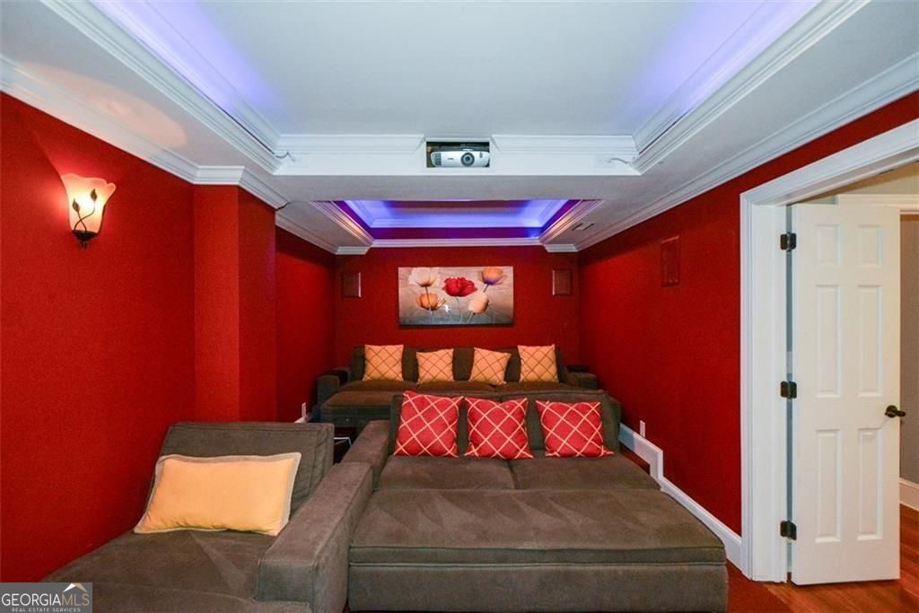 Three stories of refined living in Suwanee. Gracefully tucked away at the end of a double cul-de-sac, 5 bedrooms and 4.5 bathrooms home. Soaring 21 foot ceiling bright entry foyer swiftly introduce you to the dramatic entry of the home, setting a delightful, warm and inviting tone the minute you step in. Primary suite purposely positioned on the main level expanding from the front end of the home to all the way to the back with an exit door to the massive deck looking over a huge manicured backyard complemented by a fire pit, water falls, miniature golf, and multiple outdoor seating. Seamless transition from indoor to outdoor living perfectly blended by the aesthetically designed multi paneled floor to ceiling glass sliding door that leads you to the large added gablecovered deck elegantly made of cedar wood with generous seating, creating a warm, cabinlike ambiance surrounded by lush greenery and mature tall trees, perfect for relaxing or working while enjoying birdsong and the soothing sound of the waterfall. Double ceiling two-story family room with skylights that gives you a castle-feel. Hardwood floors throughout the main level. Gourmet kitchen anchored by a massive granite countertop suited for both everyday living and elegant entertaining, centers a full circle view of the expanded open concept of the whole main level, stainless steel appliances. Exquisite light fixtures throughout the house powered by a state of the art technology. Study room or office tucked away at the corner of the main level, lightfilled with windows on both sides and overlooking the backyard adding to your relaxed living. Custom closets in almost every room, and upgraded bathrooms throughout the whole house. The terrace level features close to 1800 square feet of finished space with a bedroom and a full bathroom, an expansive party-size bar, a huge theater room, multiple entertainment and gaming areas, and an added outdoor seating covered patio. Dedicated media room in terrace level equipped with a projector, 120" screen, and LED ambient ceiling lighting. The home sits on close to an acre of land that can accommodate an added pool. Close to countless parks, walking trails, and green spaces in the area. Minutes away from Suwanee Town Center Park with its events, dining, entertainment, and shopping activities. Suwanee was ranked #1 Best Place to Live in Georgia and #27 Best Place to Live in the United States by Fortune-2024. Swim and Tennis community in the sought after North Gwinnett HS district. Come and tour this home and feel its timeless luxury and the unforgettable welcoming first impression the minute you step in it.