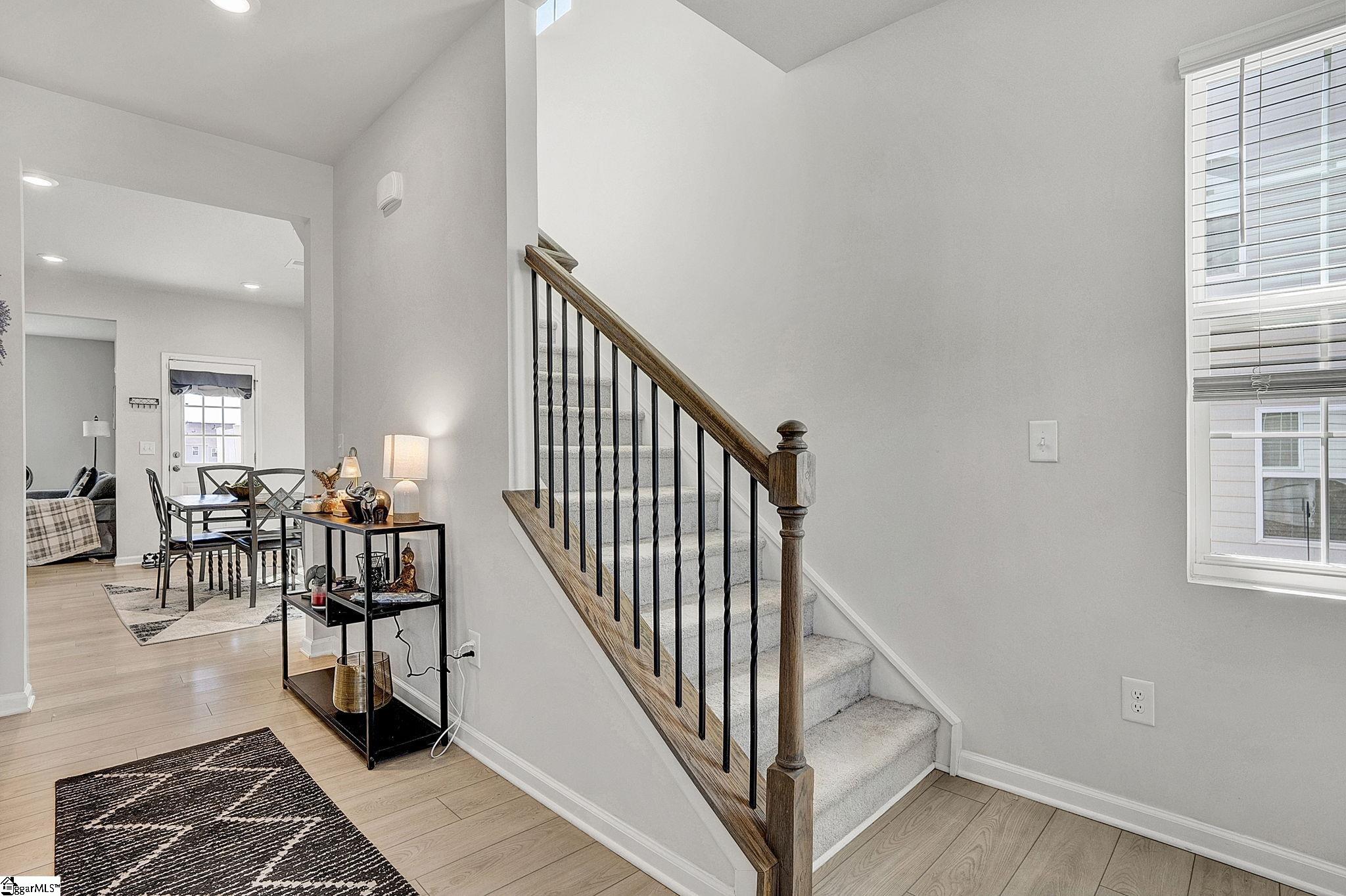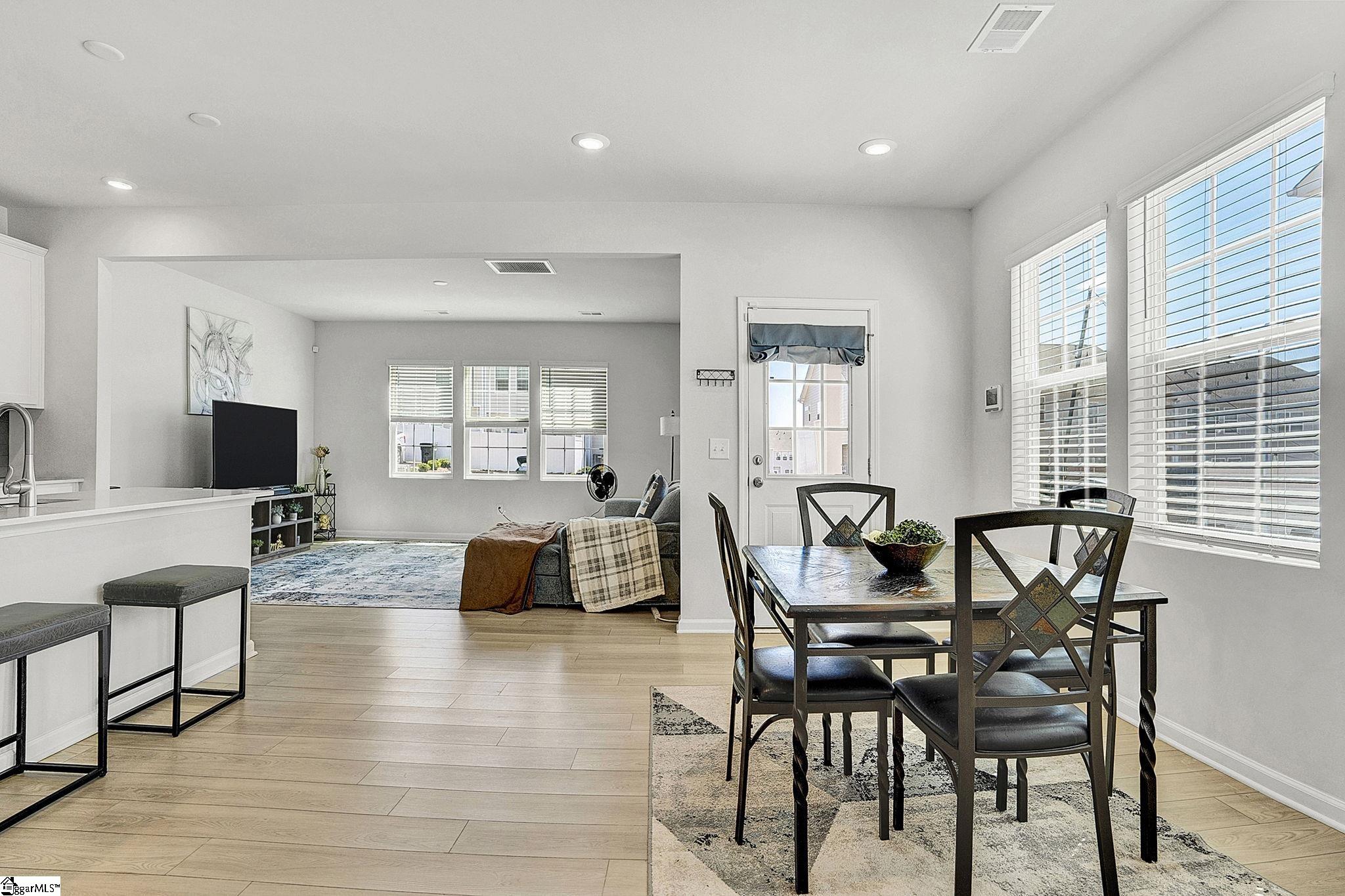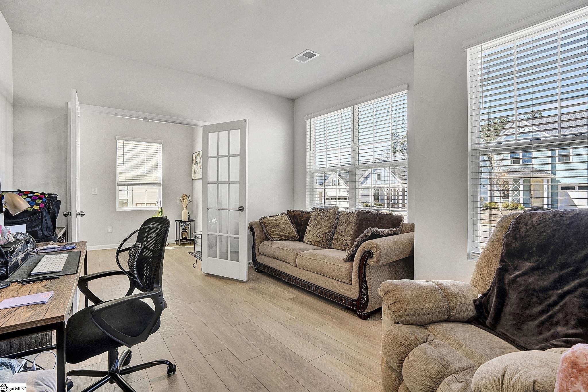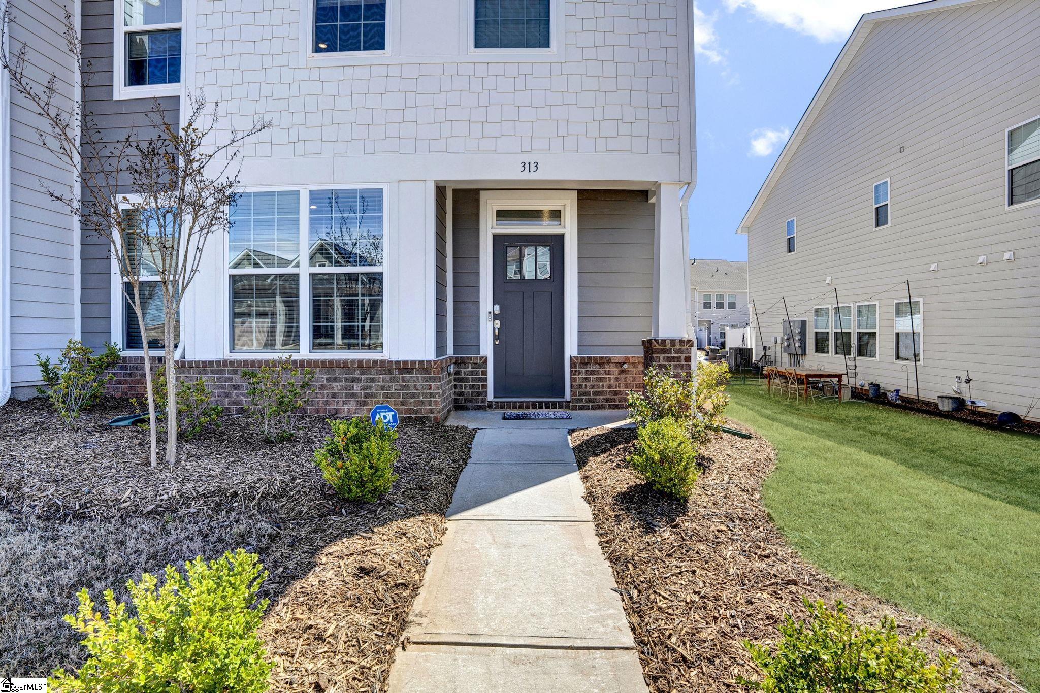 Maintenance free living meets modern style in one of Greer's most desirable communities. Welcome to 313 Novelty, a stunning Charleston style end-unit townhome offering a spacious floor plan just minutes from Downtown Greer and the Blue Ridge Mountains. Come inside and you're greeted by beautiful luxury vinyl flooring and an abundance of natural light. Just off the entryway, a dedicated office with French doors provides the perfect work from home setup. Continue into the open concept living space designed for both everyday living and effortless entertaining. The kitchen is the highlight of the home with gorgeous quartz countertops, stainless steel appliances including a gas range, a large center island, and a generous walk-in pantry. Seamlessly connected to the dining area and living room, this layout keeps everyone engaged and connected. Just beyond the living room, a covered back porch offers an outdoor space, complete with a partition for added privacy. Upstairs, a loft area creates the perfect secondary living space, media room, or play area. You'll also find three spacious bedrooms and two full bathrooms, including the primary suite with a walk-in shower, dual vanity, and an oversized walk-in closet. The conveniently located second-floor laundry room adds everyday ease. What truly sets 313 Novelty apart is its incredible community. O'Neal Village offers a lifestyle unlike any other, with resort-style amenities including a swimming pool, fitness center, community garden, dog park, playground, basketball court, open-air amphitheater, and more. Enjoy acres of thoughtfully designed green space, from scenic wetlands to recreational lawns and cozy gathering spots with a community fireplace - all just a short walk away. Don't forget convenient morning coffee runs at Barista Alley or an afternoon happy hour with neighbors at House 509 Bistro - both located within O'neal Village. A new home with zero exterior maintenance means you have more time to enjoy what matters. This isn't just a house - it's a lifestyle.