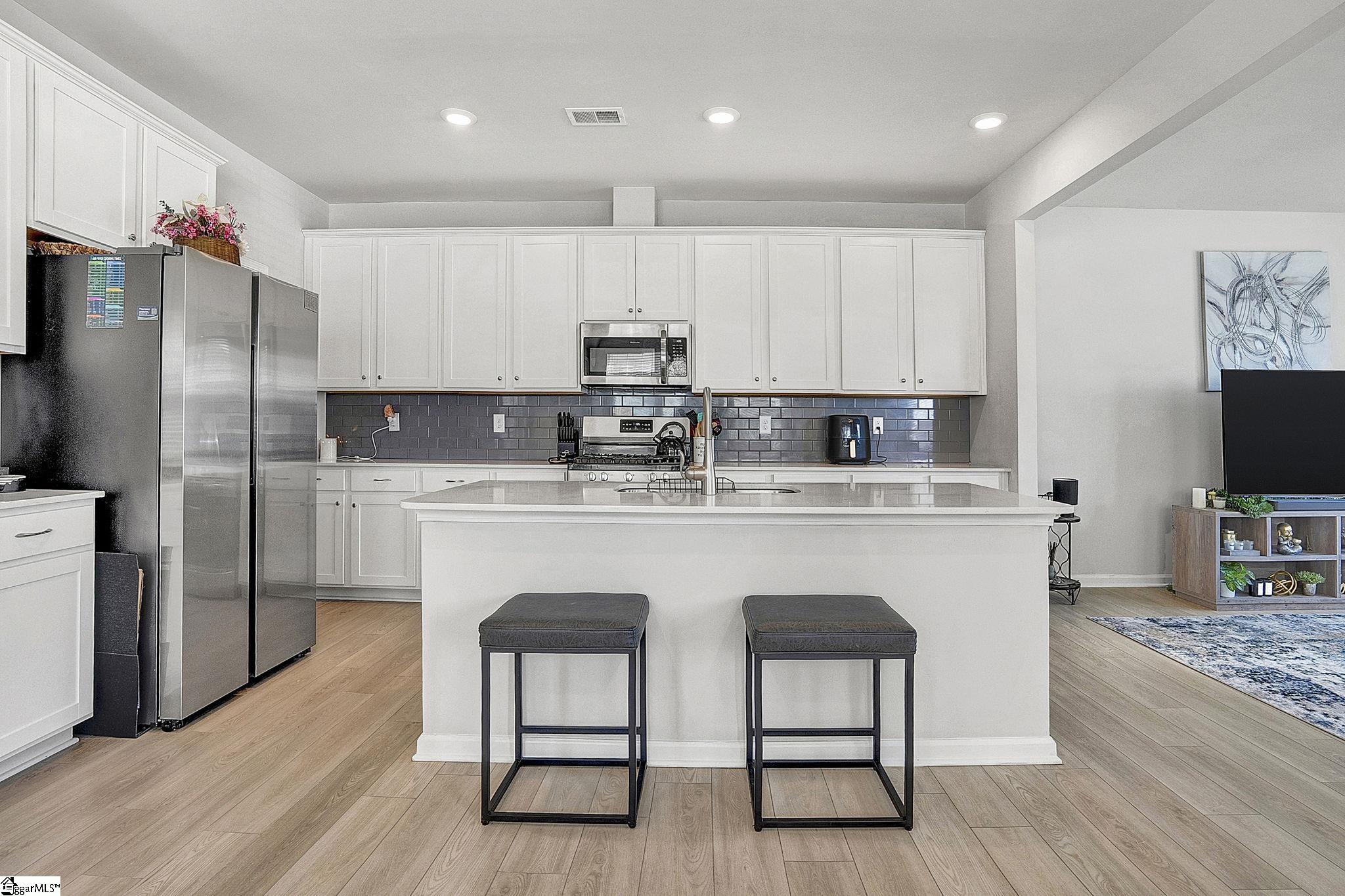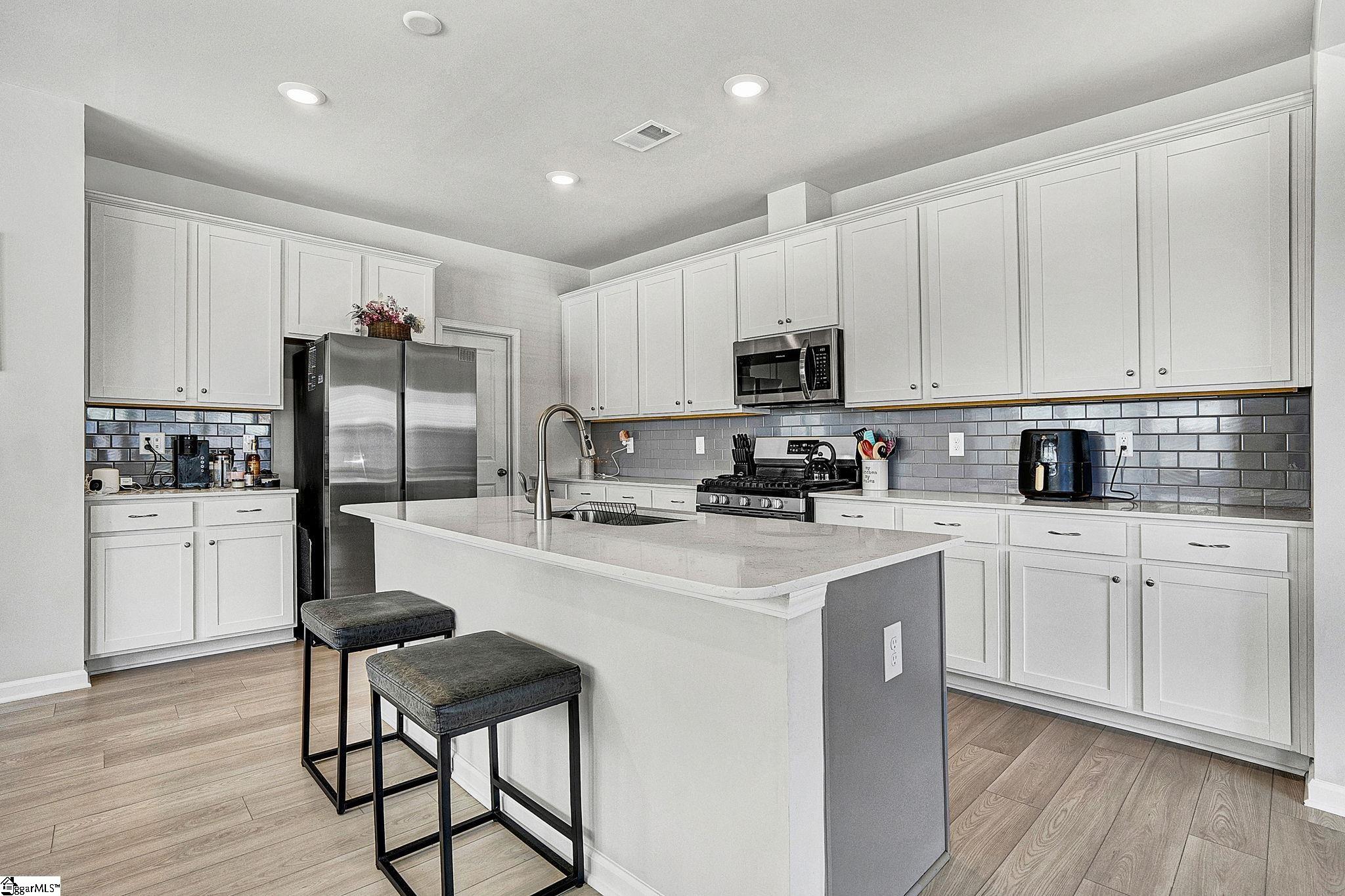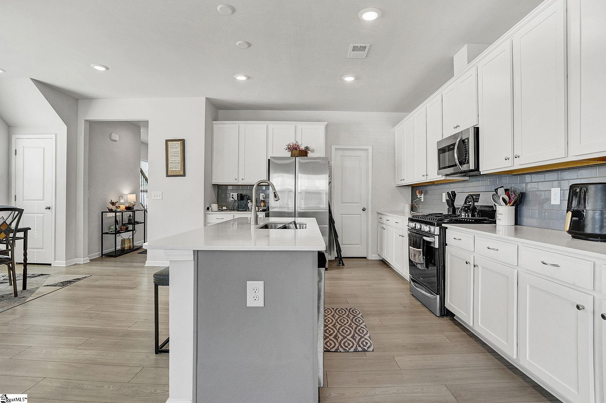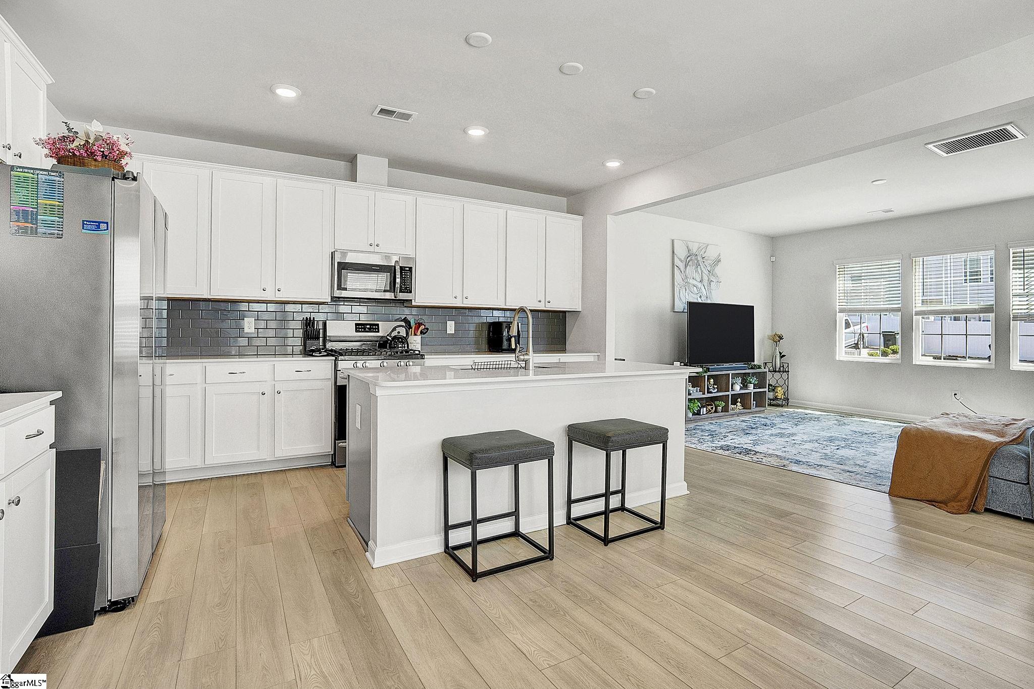 Maintenance free living meets modern style in one of Greer's most desirable communities. Welcome to 313 Novelty, a stunning Charleston style end-unit townhome offering a spacious floor plan just minutes from Downtown Greer and the Blue Ridge Mountains. Come inside and you're greeted by beautiful luxury vinyl flooring and an abundance of natural light. Just off the entryway, a dedicated office with French doors provides the perfect work from home setup. Continue into the open concept living space designed for both everyday living and effortless entertaining. The kitchen is the highlight of the home with gorgeous quartz countertops, stainless steel appliances including a gas range, a large center island, and a generous walk-in pantry. Seamlessly connected to the dining area and living room, this layout keeps everyone engaged and connected. Just beyond the living room, a covered back porch offers an outdoor space, complete with a partition for added privacy. Upstairs, a loft area creates the perfect secondary living space, media room, or play area. You'll also find three spacious bedrooms and two full bathrooms, including the primary suite with a walk-in shower, dual vanity, and an oversized walk-in closet. The conveniently located second-floor laundry room adds everyday ease. What truly sets 313 Novelty apart is its incredible community. O'Neal Village offers a lifestyle unlike any other, with resort-style amenities including a swimming pool, fitness center, community garden, dog park, playground, basketball court, open-air amphitheater, and more. Enjoy acres of thoughtfully designed green space, from scenic wetlands to recreational lawns and cozy gathering spots with a community fireplace - all just a short walk away. Don't forget convenient morning coffee runs at Barista Alley or an afternoon happy hour with neighbors at House 509 Bistro - both located within O'neal Village. A new home with zero exterior maintenance means you have more time to enjoy what matters. This isn't just a house - it's a lifestyle.