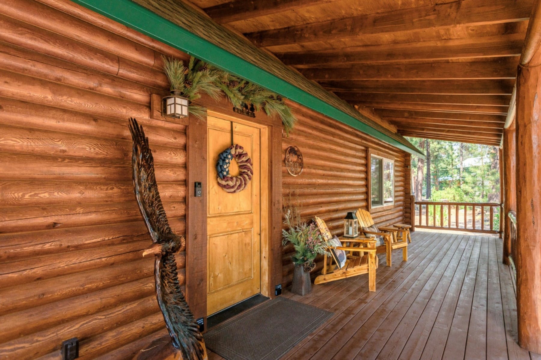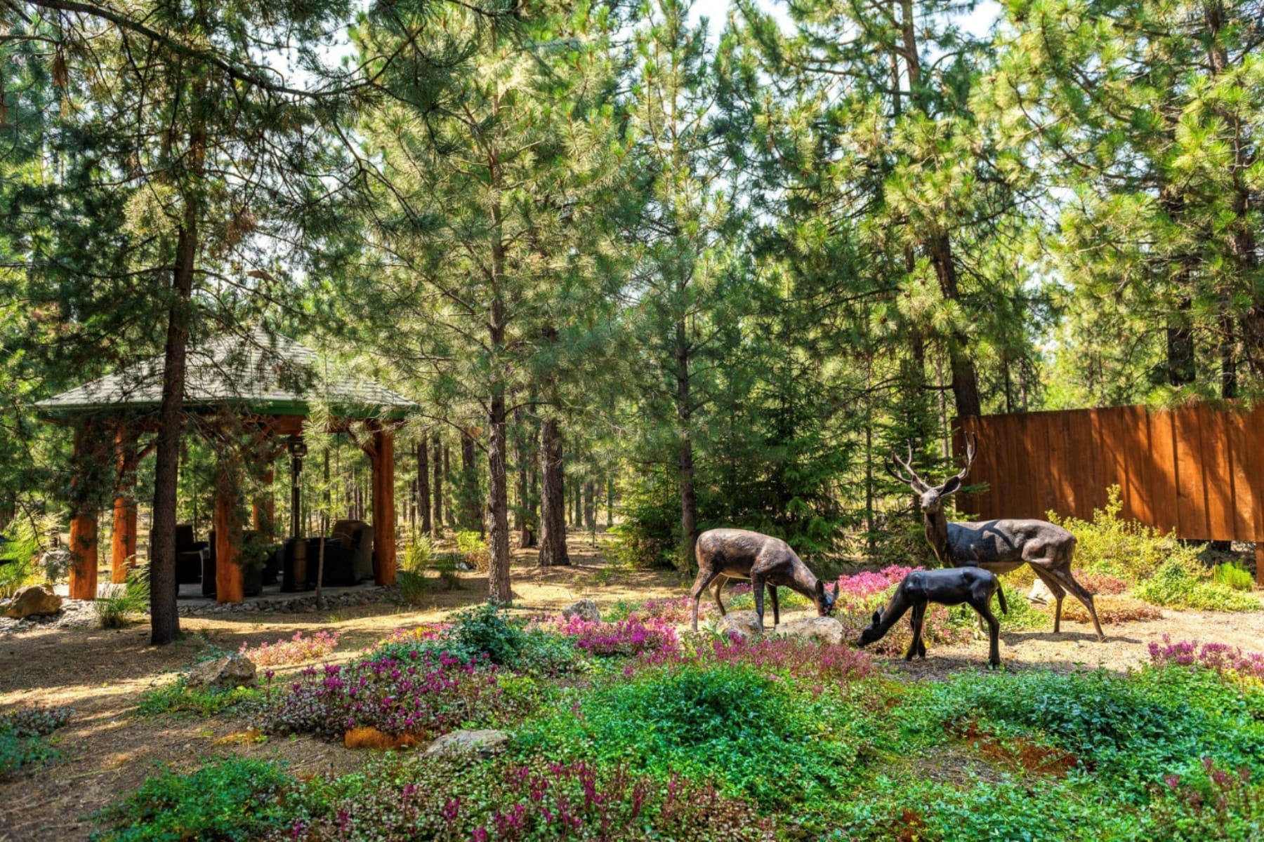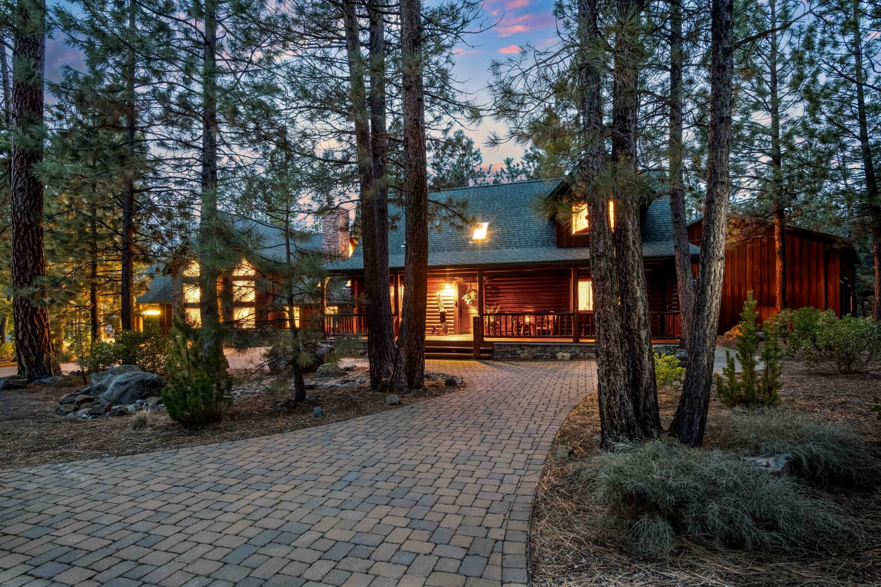 Bordered by National Forest with privacy and direct access to the Deschutes River and nearby trail systems, this exceptional Central Oregon retreat offers rare seclusion near Pringle Falls just outside Bend. Designed for both everyday living and entertaining, the expansive 5,590 square foot home blends natural materials, vaulted ceilings, exposed beams, and stone accents that reflect the surrounding landscape. The main level primary suite offers comfort and convenience, while a private upper level primary suite with fireplace creates a peaceful escape. Flexible living spaces include a home office or den, loft areas, exercise room, and a generous media or game room. Outdoor spaces invite year round enjoyment with paver patios, covered deck with fireplace, hot tub, sauna, firepit gazebo, and sports court. Nearly 3,000 square feet of garage and shop space, including RV storage, provides room for all your Central Oregon adventures near the Deschutes River and endless recreation.