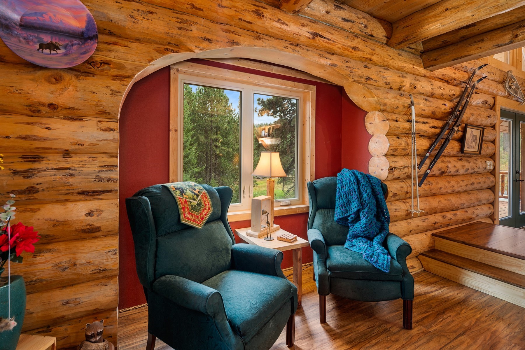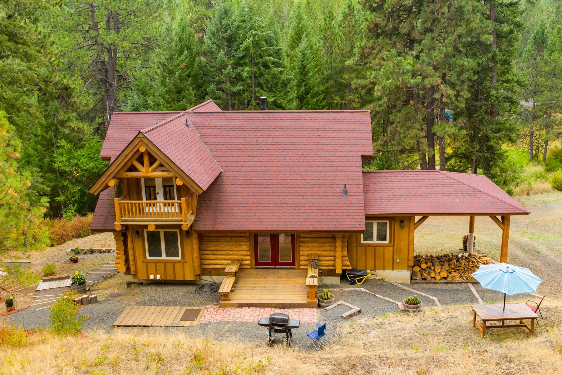 Marvel at this expertly crafted log home nestled in the trees on its own 16.9 acre property. This is the property that dreams are made of. Enter your keycode to open the automatic gate leading to the driveway for this secluded paradise. 3 bedrooms & 2 1/2 baths, all bathed in warm wood. Arched finishes & expansion beam construction call out the expert craftsmanship that went into this build. Seamlessly finished and detailed to create an overall impression of rugged splendor. Large kitchen, dining and living area under a vaulted ceiling to the second story loft with balconies both front and back. Huge main floor deck & a walkout basement with copper stained cement floor that gives a fluidity to the overall design. Ideally located a short 1 1/2 mile from Spokane Point boat launch onto Coeur d'Alene lake. Near a great event distillery and not too far from the city of Coeur d'Alene. Great for short term rental income or enjoy it yourself on a full time basis. No HOA. 320 acres of tribal land across the road. Newly added shop pad ready for you to have your custom shop build.