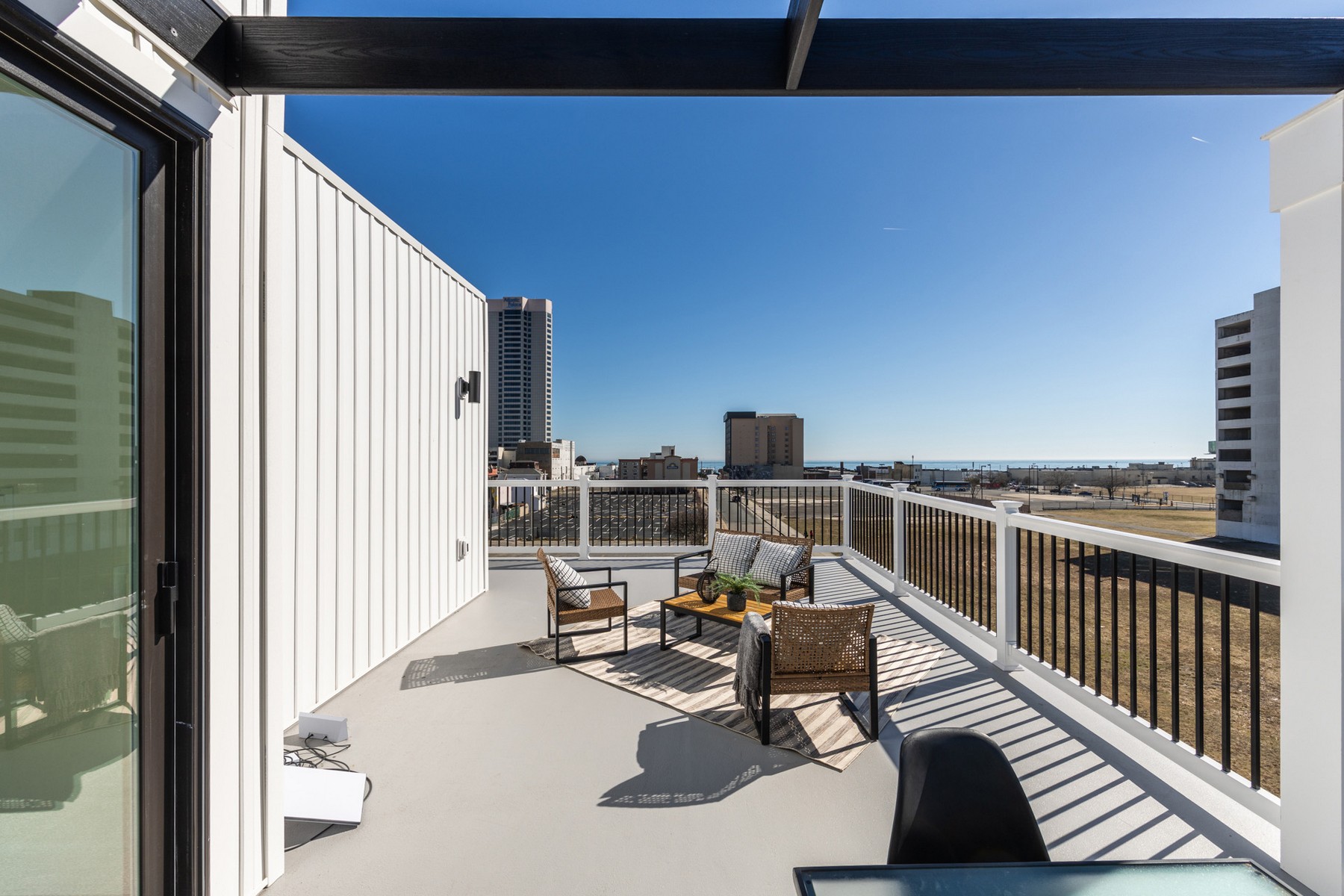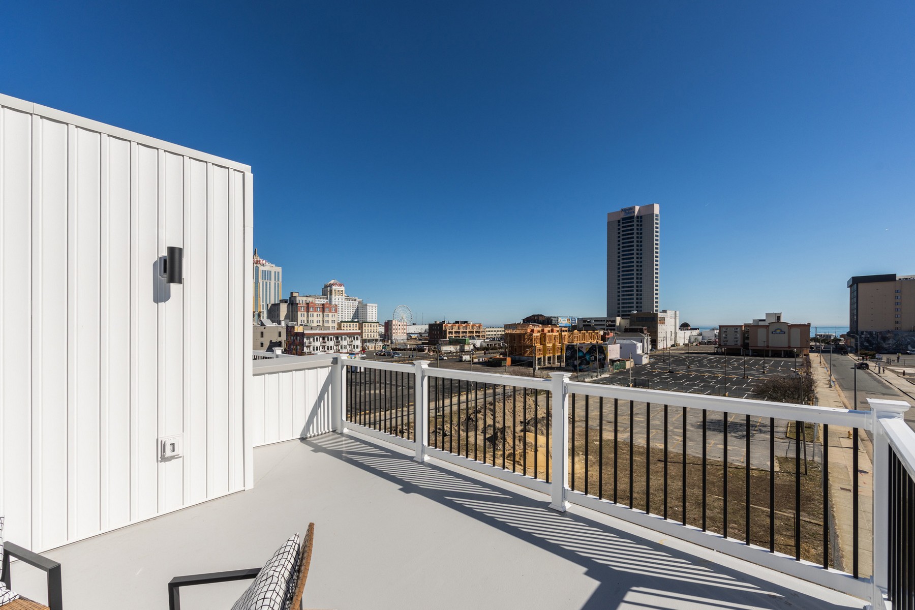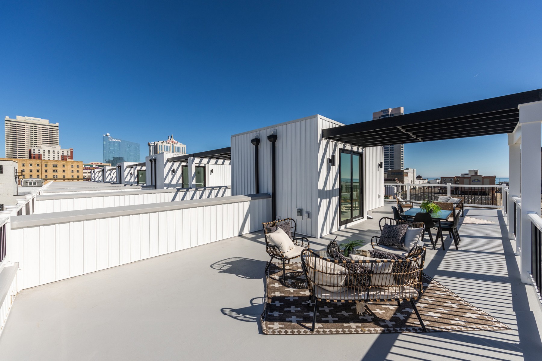 Located on the desirable beach block just off the iconic Atlantic City Boardwalk, The Residence at Orange Loop offers modern coastal living in the heart of the vibrant Orange Loop district. Designed with high-end finishes throughout, this home provides an exceptional long-term rental opportunity in one of AC’s fastest-growing neighborhoods. This spacious home features three private ensuite bedrooms, ideal for comfortable everyday living. The interior includes luxury vinyl plank flooring, refined trim work, a generous walk-in pantry, and a large laundry room—offering convenience and functionality rarely found in rental properties. The main floor presents a beautiful great room with a chef’s kitchen featuring stainless steel appliances, quartz countertops, a waterfall center island, and pantry. The open living and dining area also includes a balcony and powder room. An oversized private garage provides parking for vehicles, with additional space for storage, bikes, or beach gear. A standout feature is the private rooftop terrace, offering sweeping ocean views, a sleek pergola, and a wet bar—an ideal setting for entertaining or unwinding outdoors. Situated within the dynamic Orange Loop district, this home delivers an unbeatable combination of coastal access and urban energy, with restaurants, coffee shops, entertainment venues, and the beach all within a short distance.