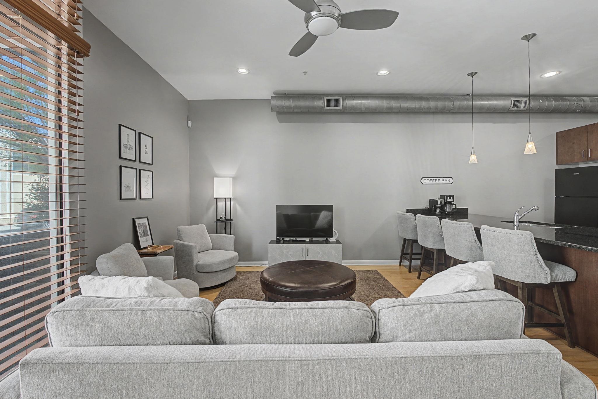 Stylish condo in the vibrant Marshall Arts District, just blocks from the UT Medical District, Redbirds Stadium, and all the dining, entertainment, and nightlife of downtown Memphis. This unit features high ceilings and an open kitchen/den floor plan, perfect for modern living. Enjoy both a front and rear porch for outdoor space. The kitchen offers stainless appliances, a massive breakfast bar, and flows into a living area with hardwood floors and a soft contemporary flair. Custom closet shelving adds great storage. Refrigerator, washer, and dryer all remain. Gated parking includes 1 assigned covered space and 1 unassigned uncovered space. A full storage unit transfers with the sale. Walk or bike to nearby breweries, coffee shops, parks, and live music venues - embrace an active, connected urban lifestyle in the heart of the city! Warm, inviting interiors with abundant natural light create the perfect space to relax or entertain, and the private, closed bedroom offers a tranquil retreat.