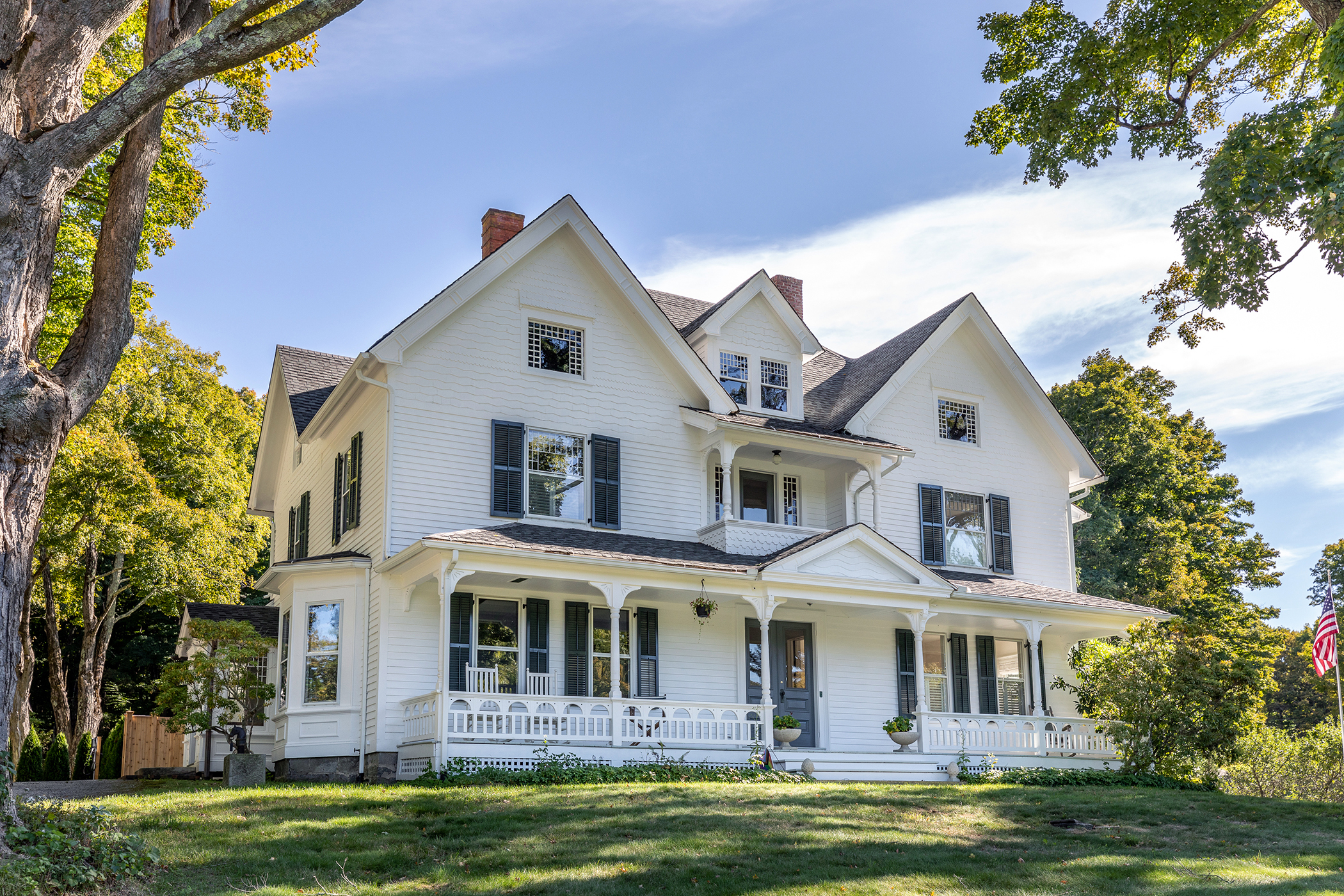 This historic Victorian home in the New Preston section of Washington is now available to rent after a tasteful top to bottom renovation, and the addition of a heated saltwater pool and hot tub. The main level of the home is highlighted by the expansive kitchen with soapstone counters, a butler's pantry, and French doors leading to a rear patio area. The remainder of the first floor features a living room, spacious great room, dining room, and an office with a full bath that could be used as a 5th bedroom. Upstairs are 4 bedrooms, each named after prior owners who have called "The Humphrey's House" home over the past 127 years, including a nephew of Mark Twain. The bright and sunny primary bedroom has a stylish walk in closet, and an en-suite bathroom with a steam shower and radiant heat flooring. A brand new bathroom in the second en-suite bedroom features the same top of the line upgrades. Two additional cozy bedrooms sit across the hall, with a third second level bath serving the two rooms. Well known British designer Graham Robert Moore has transformed this Victorian gem into a marvelous display of the modern day aesthetic without abandoning the history of the home. The 40 x 18 heated saltwater pool features an electric cover and 8 person attached hot tub. This gorgeous house is just a short stroll to swimming and boating at Lake Waramaug, shopping in the New Preston town center, 30 minutes to Metro North trains and 90 minutes from Manhattan!