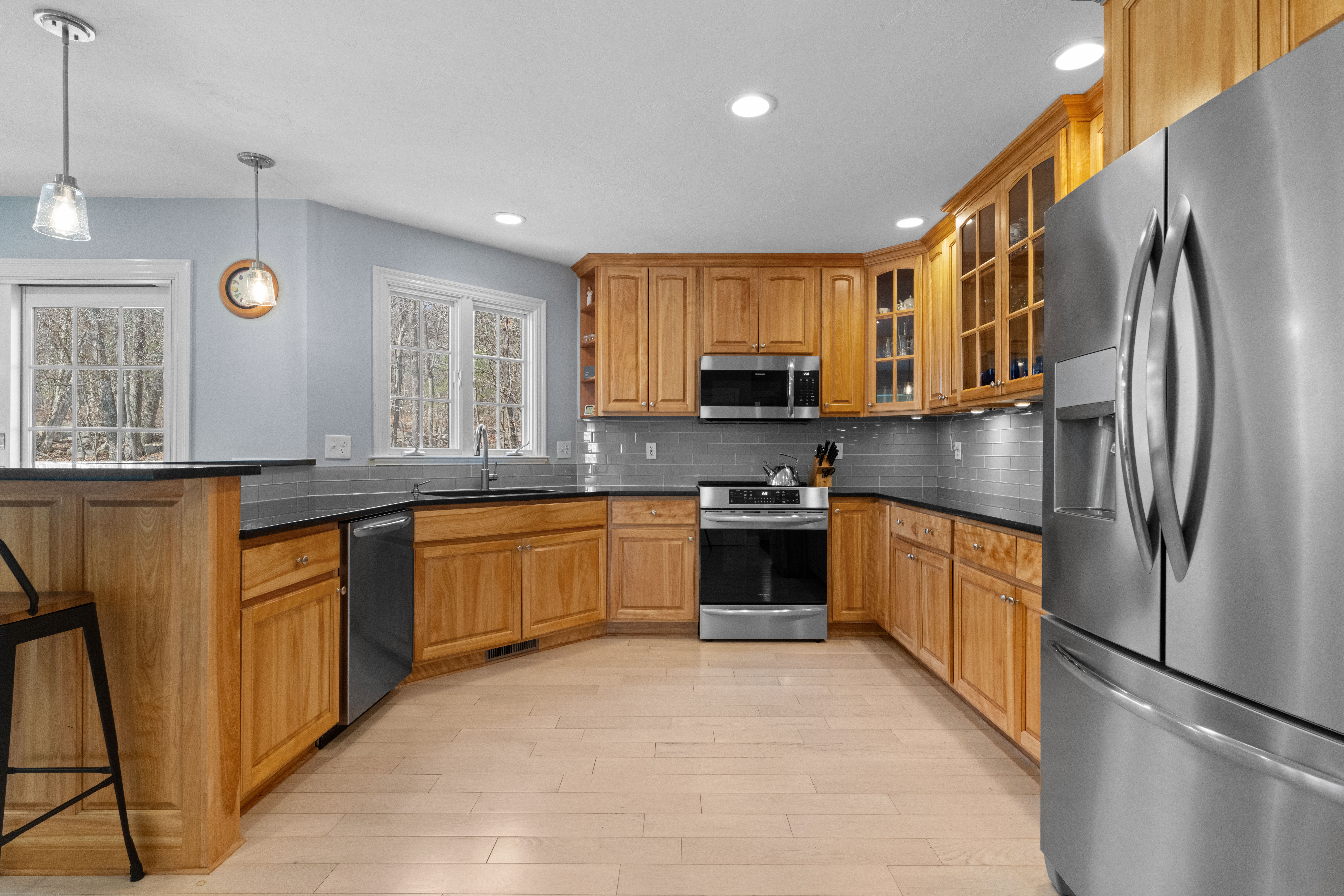 Set in Southborough’s sought-after Stockwell Farms neighborhood, this custom-styled Colonial offers a distinctive layout rarely found in the area. The sunken family room with fireplace creates a warm, inviting gathering space, while the updated kitchen features new appliances and striking slate rectangular offset flooring that blends style with function. Upstairs, brand-new wall-to-wall carpeting adds comfort throughout. The spacious primary suite is complemented by a rare bonus room—an ideal flex space for a private retreat, gym, studio, or home office. With four bedrooms, two and a half baths, and 3,193 square feet of thoughtfully designed living space on .86 acres, this home offers comfort and character in a neighborhood setting. Convenient to the Southborough MBTA commuter rail station, Route 9, I-495, and the Mass Pike (I-90), with outdoor recreation nearby at Hopkinton State Park.
