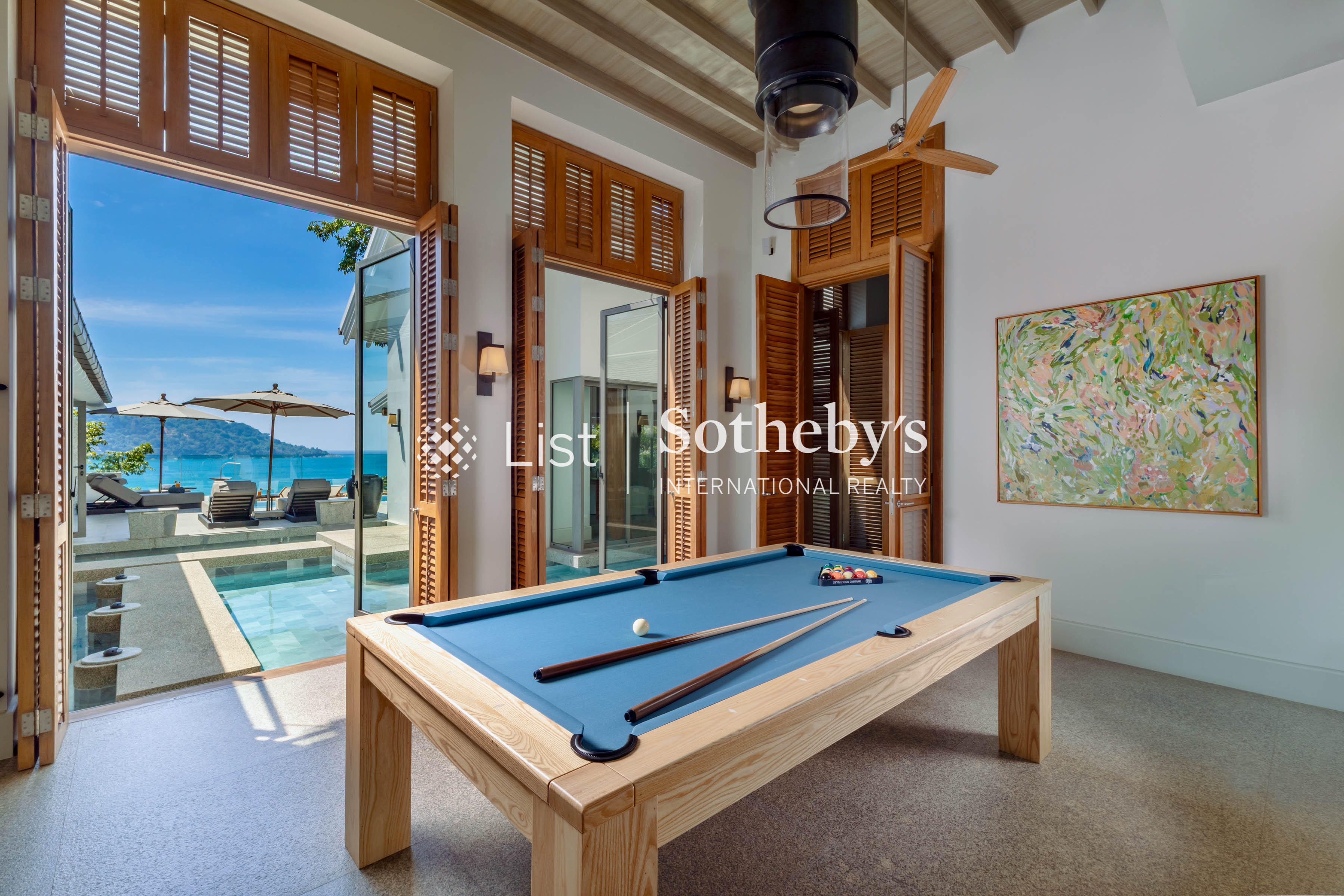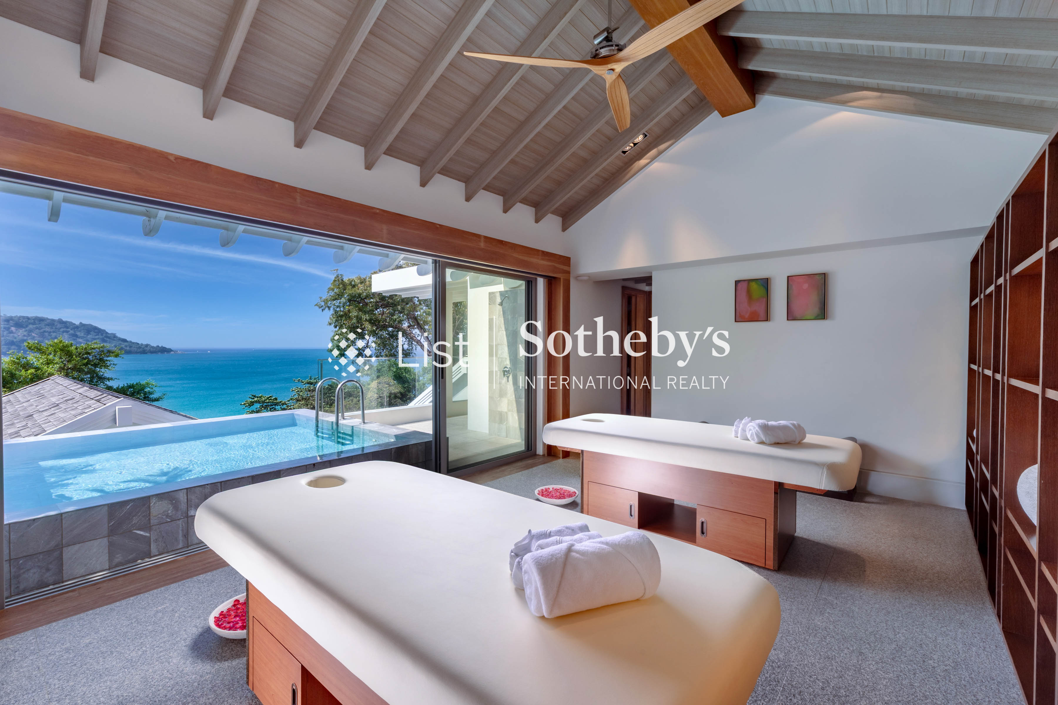 s design is a seamless blend of teakwood, marble, and granite, creating an atmosphere of elegance and comfort. The open-plan living room and grand dining area, with seating for 14, overlook the pool and ocean, while a fully equipped kitchen is ready for your private chef to prepare delicious meals. For wellness and leisure, Villa Amankara boasts a state-of-the-art gym, a private spa with a plunge pool, and a game room with a billiards table. Each of the six luxurious bedrooms offers plush bedding, en suite bathrooms, and sophisticated décor, with the master suite featuring a 65-inch Smart TV and customizable sleep options. A dedicated team of 5 staff members—including housekeepers, security, a villa manager, and a private chef—ensure exceptional service, while the Guest Experience team arranges personalized activities for a truly memorable stay. At Villa Amankara, elegance, comfort, and world-class service come together in one of Phuket’ s most coveted locations.