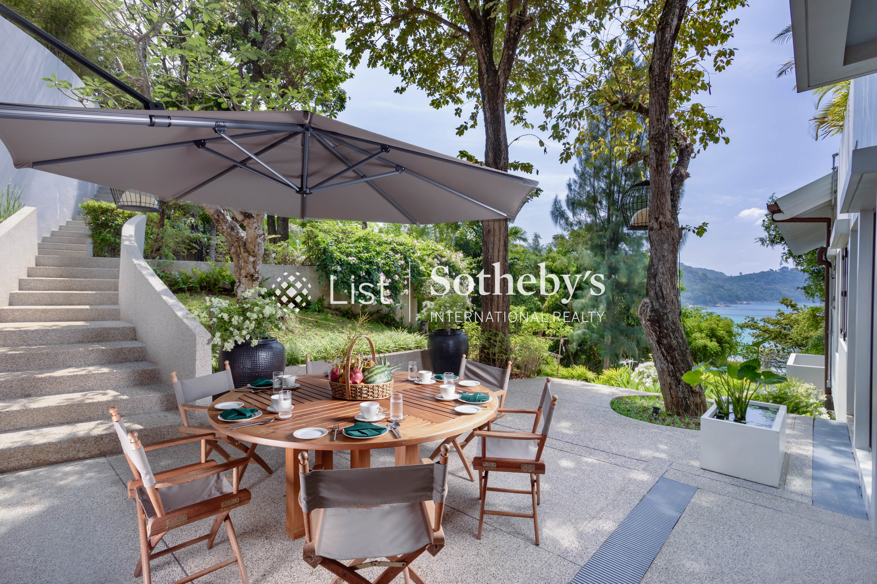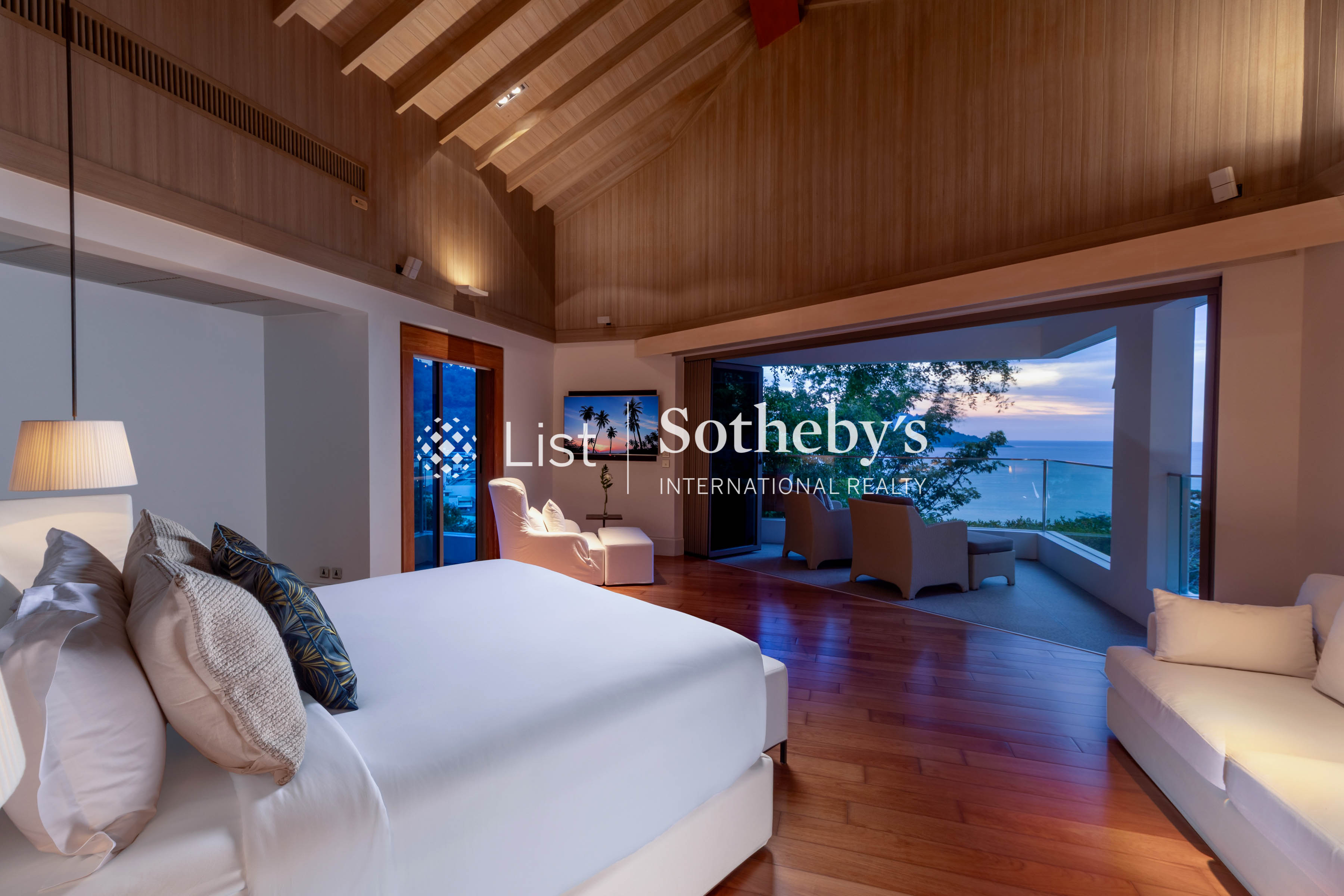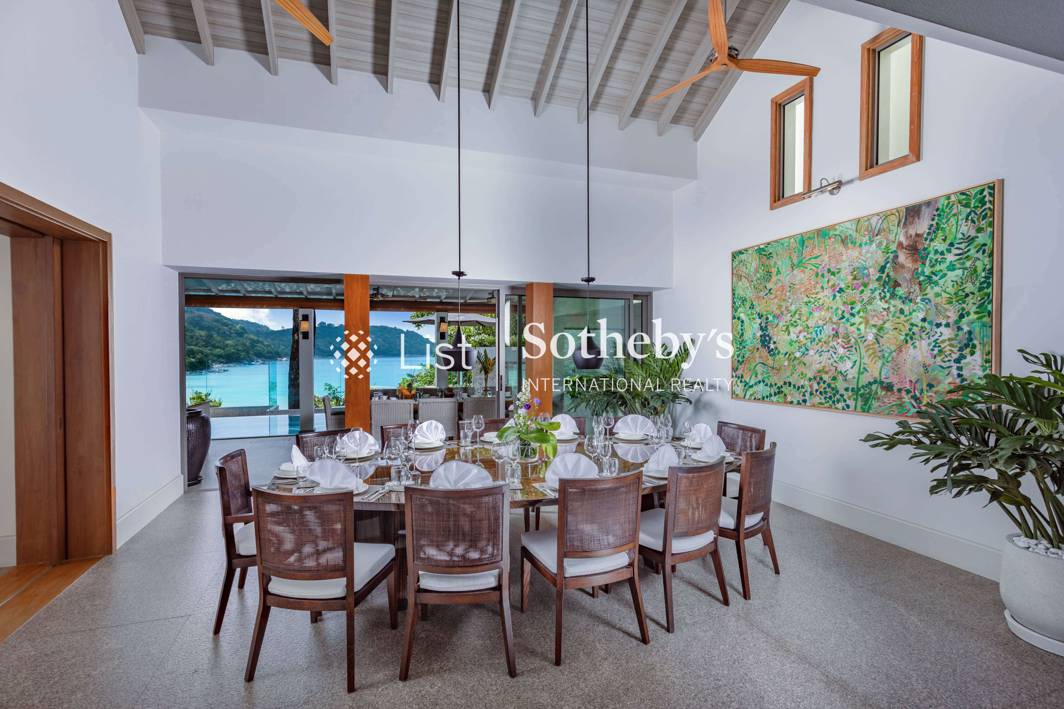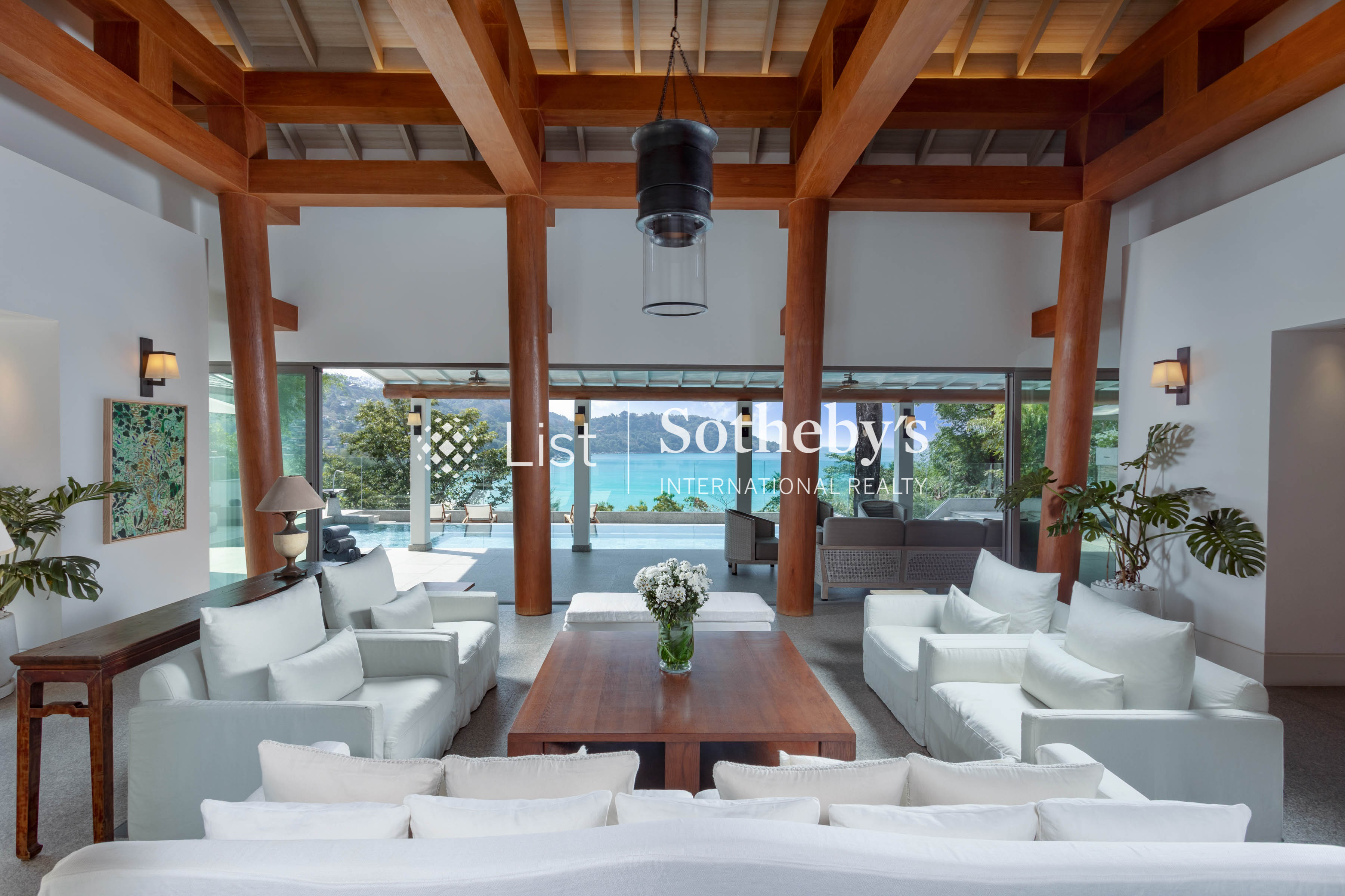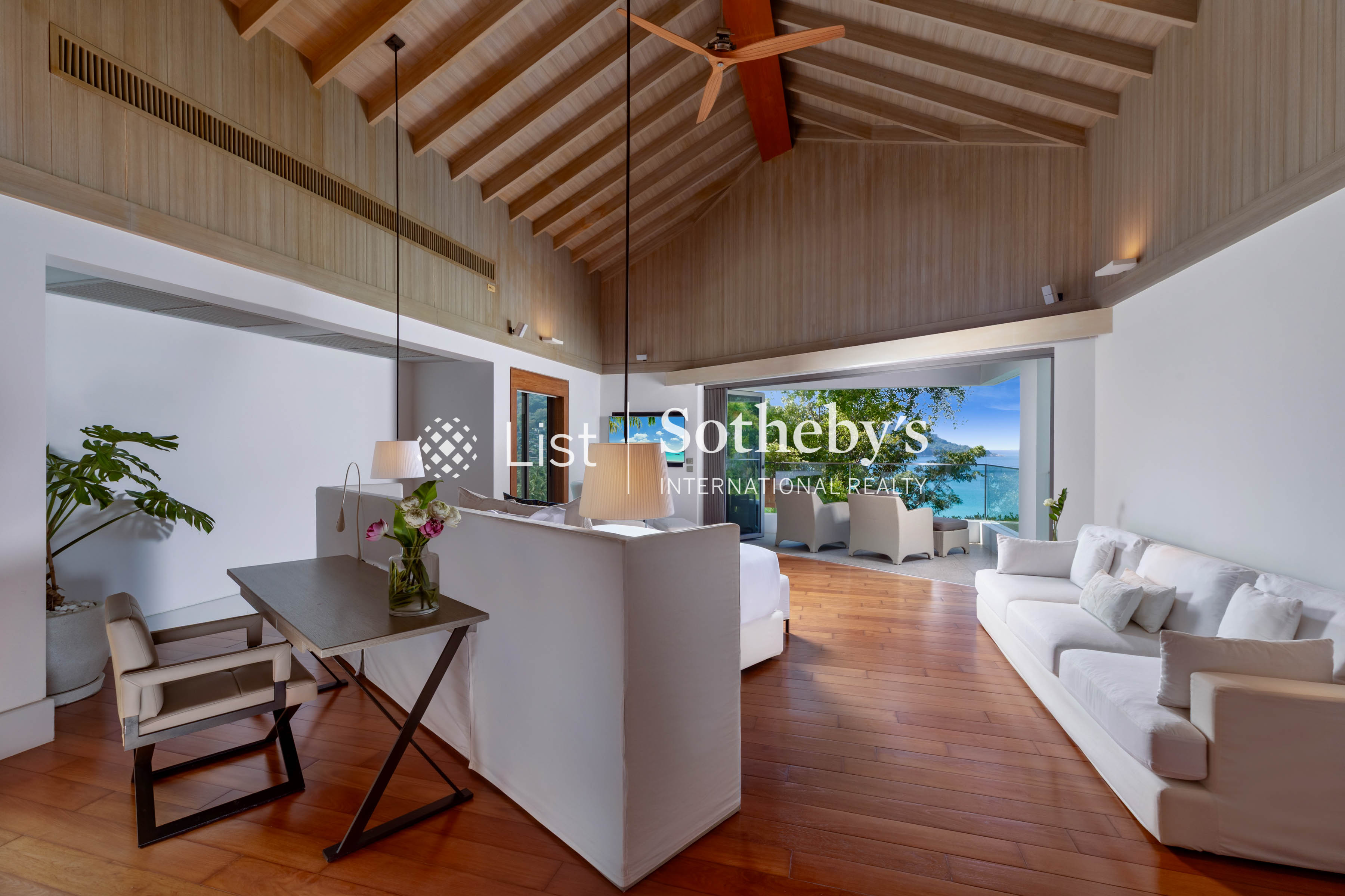 s pool, a spacious deck with plush seating, and a private garden area. These inviting spaces are perfect for alfresco dining, sunset cocktails, or simply enjoying panoramic ocean vistas. Inside, the villa