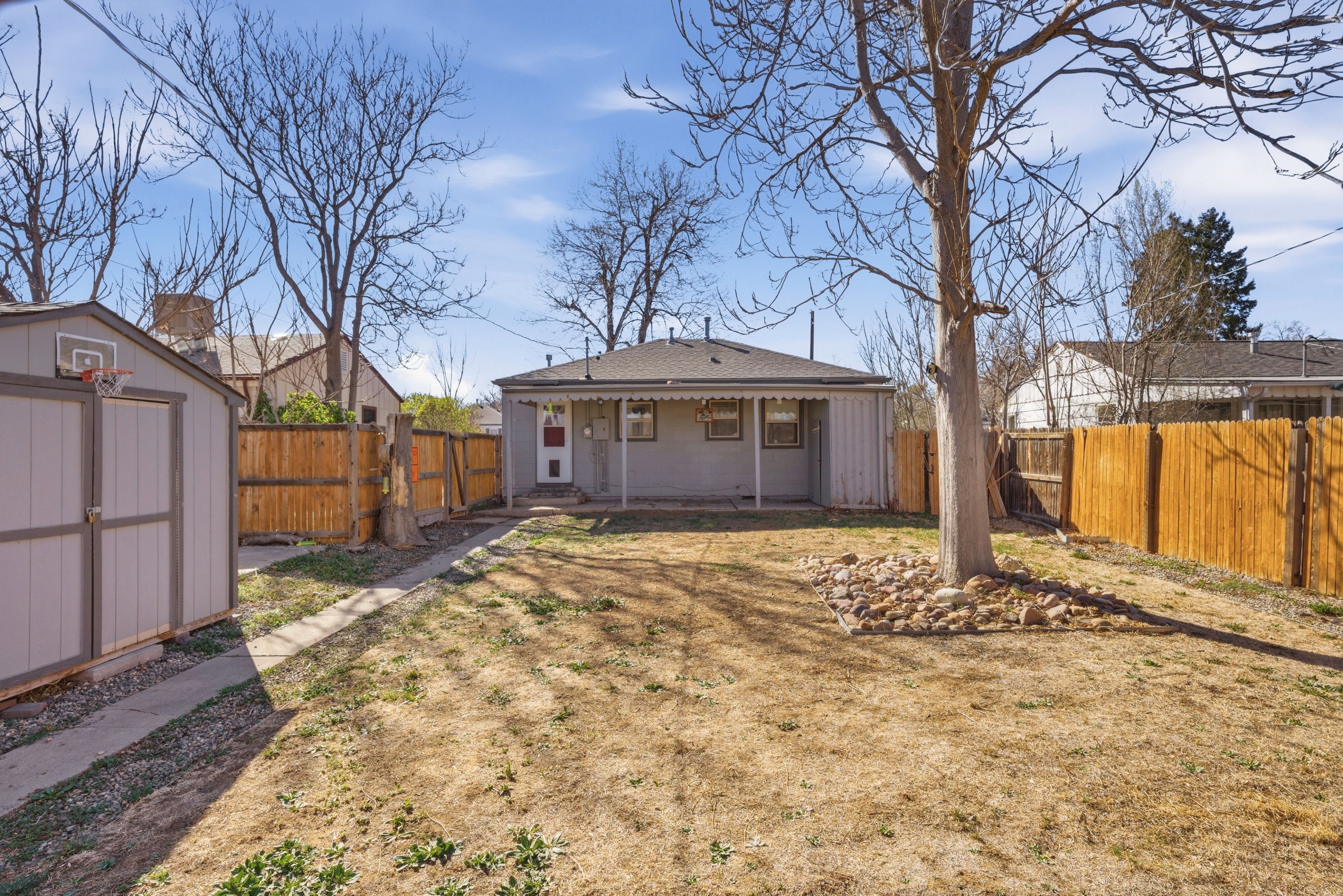 Welcome to this irresistibly charming Denver gem, perfectly situated near the vibrant shops and dining along Colfax, the popular Stanley Marketplace, and an abundance of nearby parks. This thoughtfully designed ranch-style home offers the ease of single-level living paired with an inviting, cozy atmosphere that truly feels like home. Step inside to find beautiful hardwood floors that flow throughout the living spaces, creating warmth and continuity. Natural light fills the home, enhancing its bright and airy feel. The well-appointed layout features two comfortable bedrooms and a tastefully updated full bathroom, offering both style and functionality. The kitchen and living areas are perfectly scaled for easy living, while a stackable washer and dryer add everyday convenience without sacrificing space. Every inch of this home has been maximized for comfort and usability. Step outside to enjoy a covered back patio—ideal for morning coffee, evening relaxation, or entertaining guests. The spacious, fully usable yard offers endless possibilities for gardening, pets, or outdoor gatherings. Adding to your peace of mind, many of the major components have been replaced in the last few years including a newer roof, newly added central air, newer hot water heater and more! Whether you're a first-time buyer, downsizing, or seeking a low-maintenance lifestyle in a prime location, this property delivers charm, efficiency, and unbeatable access to some of Denver’s most beloved amenities. Don’t miss the opportunity to own this adorable and well-located home that blends character, convenience, and value.