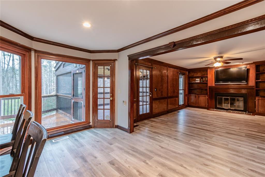Timeless Elegance & Modern Comfort in Premier Rivermist Swim & Tennis - Brookwood Schools! Experience exceptional pride of ownership in Lilburn's sought-after Rivermist Swim & Tennis Club! This meticulously maintained 4-bedroom, 2.5-bath traditional home (3,824 sq ft) sits on a serene 0.77-acre cul-de-sac lot, blending classic craftsmanship with recent updates for true move-in-ready living. Inside, exquisite carved wood millwork, trim, and accents add timeless warmth and sophistication throughout - perfectly complemented by fresh paint, new LVP flooring on the main level (2/2026), and new carpet upstairs (2/2026). The open kitchen features custom quartz Silestone counters, stainless steel appliances, ample workspace, and a breakfast area, flowing seamlessly into the family room. Step out to a custom deck (2020) spanning the back, including a large screened porch, plus a stone patio with swing overlooking a waterfall view and fully fenced backyard - ideal for play, pets, or relaxation. A storage shed adds convenience. Upstairs, the master suite boasts a large walk-in closet and spa-like bath (2018) with shower tower, seamless glass, and skylight. The secondary bath was remodeled in 2024 with walk-in shower. Three additional bedrooms offer walk-in closets (one with built-in desk/shelves), plus a bonus room with cabinets, utility sink, laundry, and storage. The finished basement provides extra space: dedicated office, large rec room, and unfinished workshop with workbenches/storage. Walk out to the lower patio for easy indoor-outdoor flow. Recent upgrades include: new architectural shingle roof & gutters (12/2025), double-pane windows (2017), septic pumped/inspected/upgraded (12/2025) with new leach field (2017), HVAC maintenance plan, and new attic stairs. Rivermist offers a junior Olympic pool, tennis/pickleball courts, clubhouse, social events, security patrols, and a vibrant neighborhood feel - all in the top-rated Brookwood School Cluster. Convenient to shopping, dining, parks, and highways. This rare mix of classic elegance, modern updates, and resort amenities won't last - schedule your showing today!