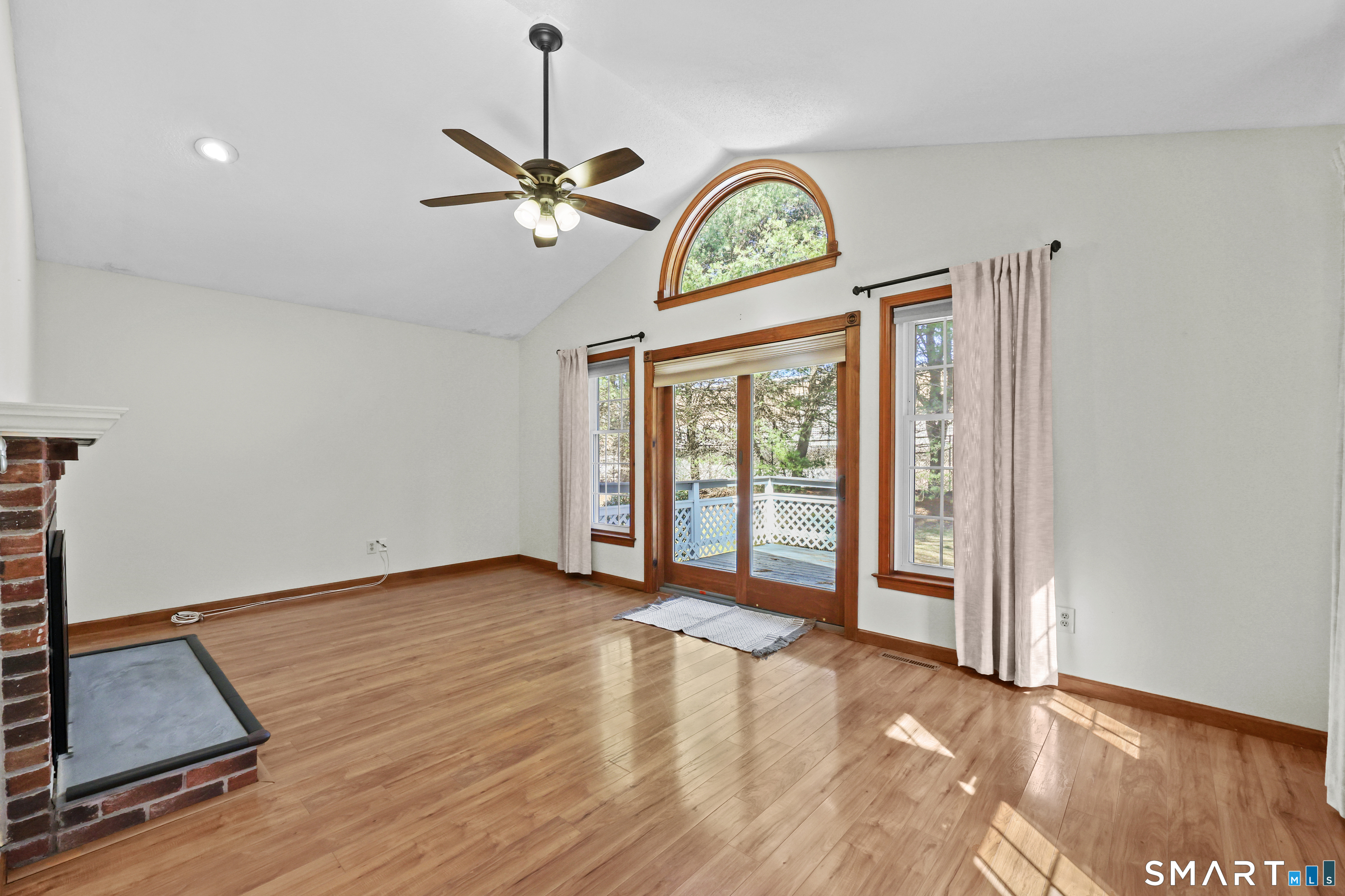 Move right in to this completely updated 2-bedroom, 2-bath ranch-style end unit at Farmington Meadow Estates, which offers the ease of single-level living with exceptional room to grow. The sun-filled main floor features an open-concept layout with large windows, a cozy fireplace, and direct access to a private deck, creating an inviting space for everyday living and entertaining. The beautifully renovated kitchen showcases granite countertops, stainless steel appliances, and an excellent workspace that flows seamlessly into the dining area, creating a modern feel. Both bathrooms have been beautifully remodeled with modern finishes. The first-floor primary suite provides comfort with its own full bath and walk-in closet. Practical details include a fully unfinished basement that can be finished, efficient gas heat, an attached 1-car garage, and additional parking spaces, offering plenty of room for guests. A true standout is the expansive 2nd level, already equipped with rough plumbing (with a tub installed), 3 skylights, and electrical in place for 2 additional bedrooms, a full bathroom, and a sitting or loft area-offering incredible potential for customization and future expansion. With over 2,500 square feet of total space-including the unfinished second floor-this home combines the low-maintenance ease of condo living with the size, flexibility, and possibilities typically found in a single-family home. Come make this your home!