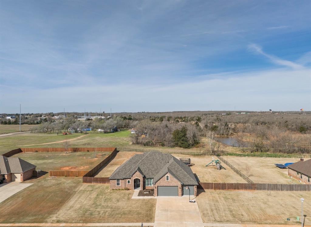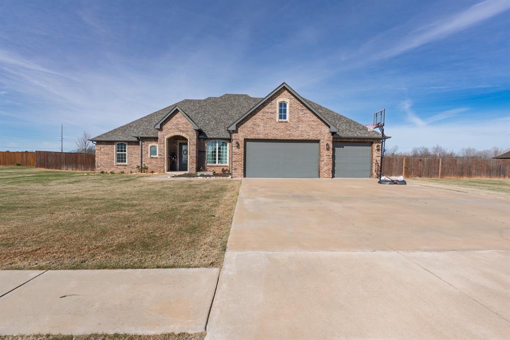 Beautifully maintained home in the highly sought-after Dale School District, conveniently located just seconds from I-40 for an easy commute to both Shawnee and Oklahoma City. Situated on approximately 3/4 of an acre in Meadowridge Addition, this property offers the perfect blend of space, comfort, and accessibility - just minutes from Shawnee Twin Lakes. This versatile floor plan features 4 bedrooms with the option for a 5th bedroom or formal dining room, along with 3 full bathrooms, a spacious 3-car attached garage with in-ground storm cellar in garage. The open-concept design creates a warm and inviting atmosphere, highlighted by soaring ceilings, gas fireplace, a soft, modern color palette, gas fireplace, fully fenced back yard and Jack and Jill set up between two of the guest rooms. The kitchen is a standout, designed with both function and style in mind. It boasts a large center island, floor-to-ceiling cabinetry, and granite countertops - ideal for cooking, gathering, and entertaining. Additional features include spray foam insulation for energy efficiency, a tankless hot water heater, a sprinkler system, over-sized laundry with sink and upgraded exterior lighting complete with a permanent holiday lighting package. The fenced backyard provides privacy and space to enjoy the outdoors, while the recently replaced roof and gutters add peace of mind. Homes in this area are in high demand - don't miss your opportunity to make this one yours.