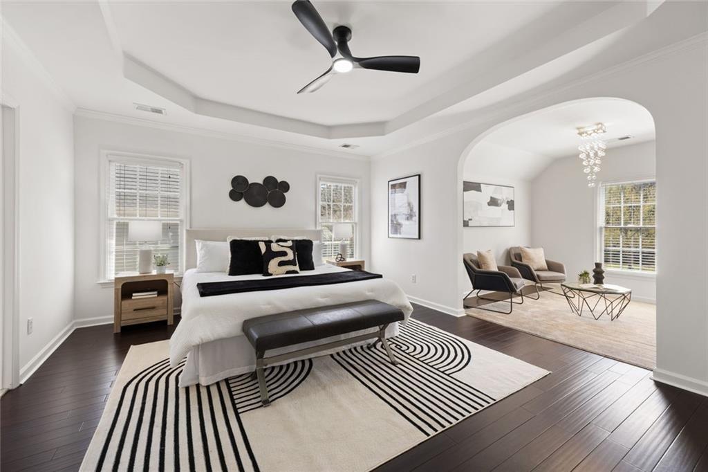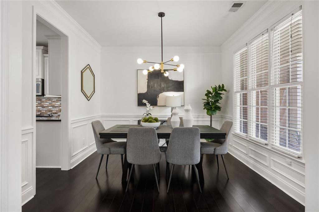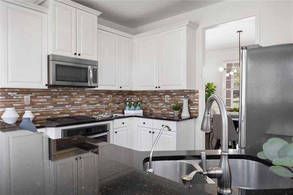 Welcome home! A charming front porch sets the tone for this beautifully designed contemporary home where light, space, and comfort come together effortlessly. Step inside to a stunning two-story foyer open to an expansive great room framed by a wall of windows, exquisite crown molding, and a warm gas fireplace - the kind of space that instantly feels like the heart of the home. The kitchen is made for real living. Crisp white cabinetry. Stainless steel appliances. Granite countertops. Generous storage and a sunny breakfast room that's perfect for morning coffee or casual dinners with friends. Just off the main living space, a separate dining room is ready for intimate dinner parties - or easily transforms into the perfect home office or bonus room. A main-level guest suite with full bath offers comfort and convenience for visitors--or a great bonus room/office as well. Upstairs, the oversized primary suite feels like a private retreat. Trey ceilings add architectural interest while a separate sitting area creates the perfect place to unwind. The spa-like bath features double vanities, a soaking tub, and a frameless glass shower, plus a large walk-in closet designed to keep everything beautifully organized. Two additional bedrooms and a conveniently located laundry room complete the upper level. Outside, the backyard invites you to relax and stay awhile. A spacious patio with pergola overlooks a landscaped, fully fenced yard - ideal for entertaining, gardening, or quiet evenings under the stars. All of this sits on a quiet street in Barrett Knoll, a welcoming community with a neighborhood pool, playground, and sidewalks perfect for evening strolls. And the location? Hard to beat. Just minutes to Kennesaw Mountain hiking trails, Marietta Square, Marietta Country Club, Kennesaw State University, I-75, I-575, Mt. Paran Christian School, and endless shopping and dining. Luxury. Comfort. Convenience. A modern design esthetic--all in one exceptional home.