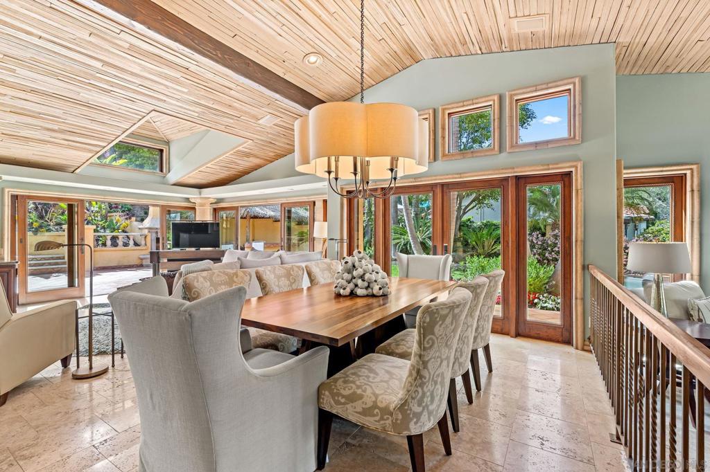 Private Resort-Style Single-Level Estate on Nearly One Acre with Detached Casita/ADU A rare opportunity to own a private, resort-style estate set on nearly one acre of beautifully manicured, park-like grounds, complete with a detached ADU/casita ideal for guests or extended family. The property offers an extraordinary sense of serenity and space, with meandering garden pathways, lush landscaping, and dramatic cascading waterfall features - all centered around a magnificent Torrey Pine that creates a truly breathtaking natural setting. Designed for effortless indoor-outdoor living, the bright and open floor plan features expansive patio doors that seamlessly connect the main living areas to the spectacular backyard retreat. The beautifully upgraded kitchen showcases high-end stainless steel appliances, abundant cabinetry, generous eat-in counter seating, and a built-in breakfast area for casual dining. The adjacent family room provides a welcoming gathering space and opens fully to the backyard, allowing the home to flow naturally into the outdoor living areas. The luxurious primary suite serves as a private sanctuary, featuring a spa-inspired bath, oversized walk-in closet, cozy fireplace, and spacious sitting area. Each bedroom is designed as an ensuite retreat, offering comfort and privacy for family and guests. Distinctive architectural elements add warmth and character throughout, including a striking ceiling crafted from reclaimed wine vineyard stakes. Outdoor living is equally impressive, with expansive patios featuring two fireplaces, an outdoor bar area, and a tranquil spa nestled beside a cascading waterfall - creating the perfect setting for both entertaining and peaceful relaxation. The detached ADU offers exceptional versatility, with its own dedicated parking and private patio. The space includes a kitchen, den, full bedroom and bath, and vaulted ceilings, providing the feel of a private luxury casita. Additional highlights include a three-car attached garage and thoughtfully designed spaces that blend elegance, comfort, and natural beauty.