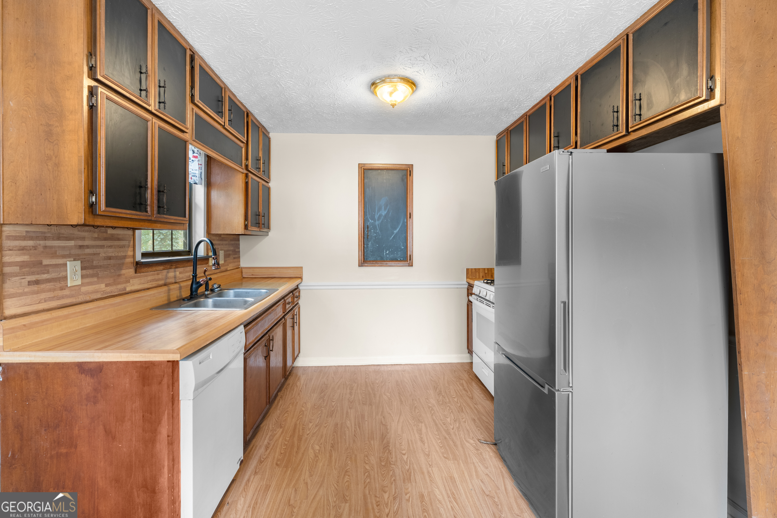 Move-in ready ranch with basement and 2 car garage on 1/2 acre in established Stockbridge neighborhood, with NO HOA. This beautiful maintained 4-bedroom, 3 full bath ranch home offers space, comfort and recent updates in a well-established Stockbridge community. Situated on a 1/2-acre lot. This home combines privacy with convenience and is ready for its next owner. From an inviting covered porch, step into a warm family room highlighted with a stunning stone front fireplace. A windowed dining area opens into the cozy kitchen area and joined with a laundry area. The main level features 3 bedrooms and 2 full bathrooms within 1457 square feet of living space.The interior has just been freshly painted, and the owner has installed brand new flooring throughout most of the home, giving the property a clean updated feel. The finished 1 bedroom and 1 bathroom in the basement adds 304 square feet of additional living space, making it ideal for guests, extended family, a home office or a private retreat. The basement level also provides access to a 2-car garage and additional storage space. With its classic wood exterior, mature lot, cozy fireplace and flexible living space, this home offers both charm and functionality. For added peace of mind, the seller is providing a 12-month home warranty. Don't miss this move-in ready home with room to grow. Schedule your showing today!