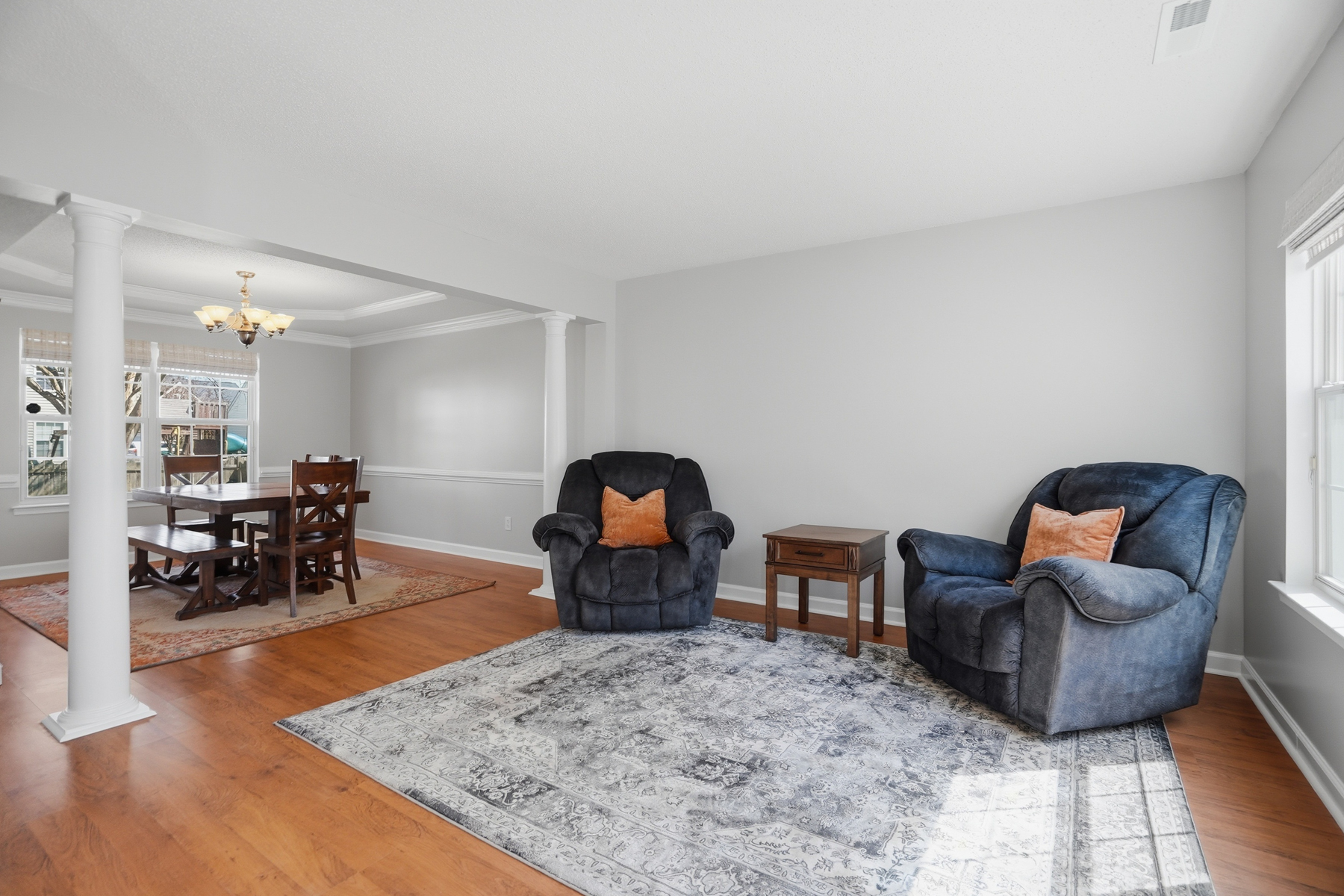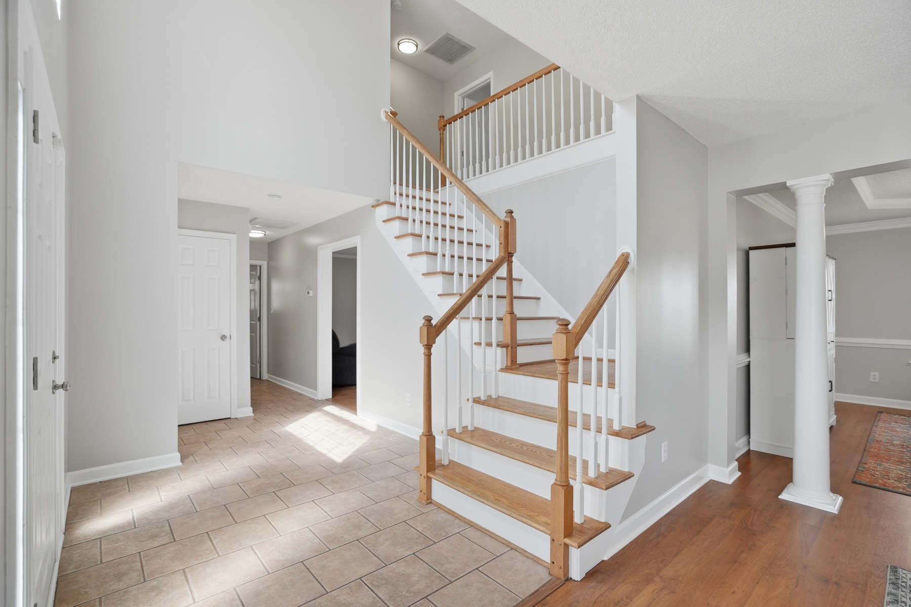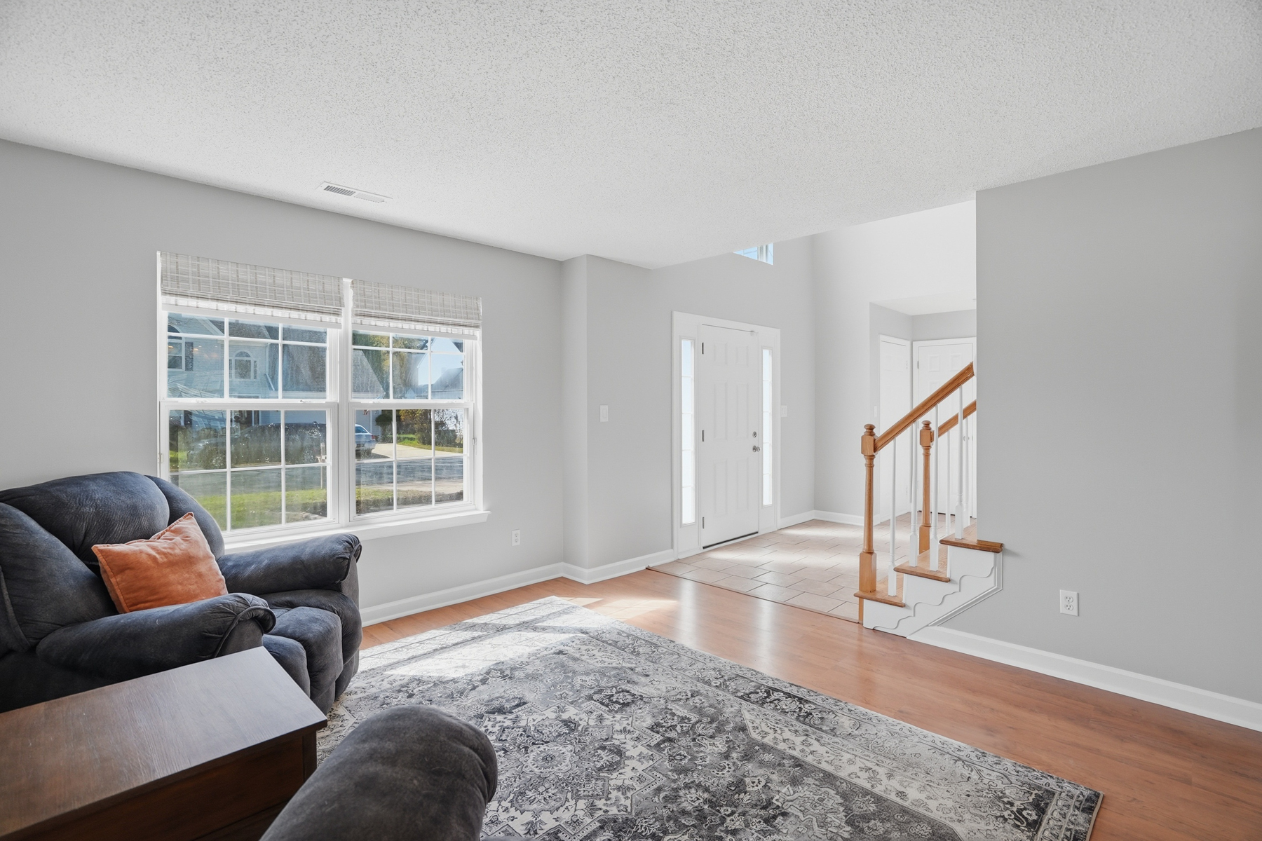 Exceptional home on a tree-lined culdesac in the Bristol Shores community of Burbage Grant! With Fresh interior paint & LVP flooring throughout, this nearly 2600sf, No-Carpet home boasts a perfect design of 4 Bedrooms and 2.5 Baths!! Bright & airy 1st Level boasts flowing wood & tile flooring throughout Foyer, Powder room, Laundry, Front sitting room, Formal Dining Room & Family Room that opens to Eat-in Kitchen! Sprawling wooden staircase leads to 2nd Level with a desirable oversized Primary en-suite with Vaulted ceilings, Bonus Room perfect for an Office-Gym-Craftroom option, Dual sinks vanity, soaking tub, tiled shower & spacious walk in closet! Down the hall are 3 Bedrooms & Guest Bath! Privacy fenced in backyard with stamped patio! Roof 2017, HVAC 2021 & Kitchen Appliances 2022! Other Burbage Grant community amenities include access to clubhouse, pool, playgrounds & tennis courts!