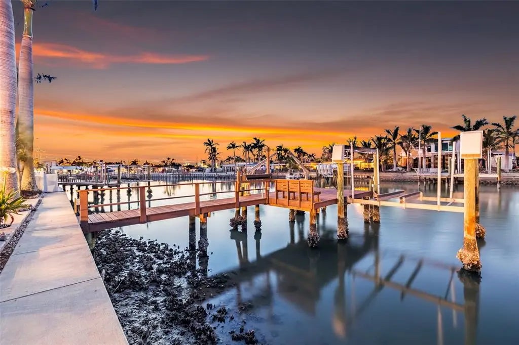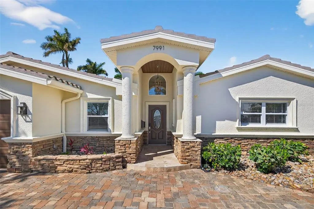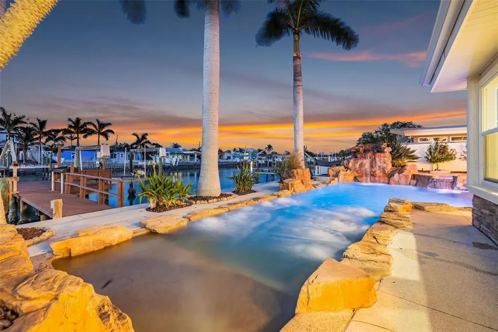 Inside, a bright, open-concept floor plan showcases impeccable design and attention to detail throughout. This 4-bedroom, 2-bath home has been completely reimagined with all-new walls, outlets, luxury vinyl and tile flooring. The living area offers a stylish wine bar with built in wine refrigerator, perfect for entertaining! The chef's kitchen is both functional and beautiful, featuring brand-new appliances, a double oven, and solid wood cabinetry, and stunning quartz countertops with a full backsplash. Thoughtfully curated upgrades continue throughout the home, including designer lighting, fully renovated bathrooms with modern vanities and finishes, and a sun-filled bonus room with all-new hurricane impact windows and sliders-ideal for a game room, lounge, or quiet retreat. A spacious pantry/mudroom offers an abundance of storage, complemented by a large, functional laundry room. The primary suite is a true retreat, complete with a custom walk-in closet, dual vanities, and private slider access to the outdoor living space. Step outside to your own backyard oasis featuring a saltwater pool and spa, perfect for enjoying Florida's year-round sunshine. For boating enthusiasts, this property is a dream come true with a private dock, davits, and a 10,000 lb boat lift-providing effortless access to open water and nearby destinations like John's Pass and St. Pete Beach. Spend your days cruising to waterfront restaurants, anchoring at the sandbar, or enjoying sunset walks along the Gulf's white-sand beaches. With Treasure Island and St. Pete Beach just moments away, this home offers the perfect blend of relaxed beach living and upscale coastal comfort-your everyday escape in paradise.