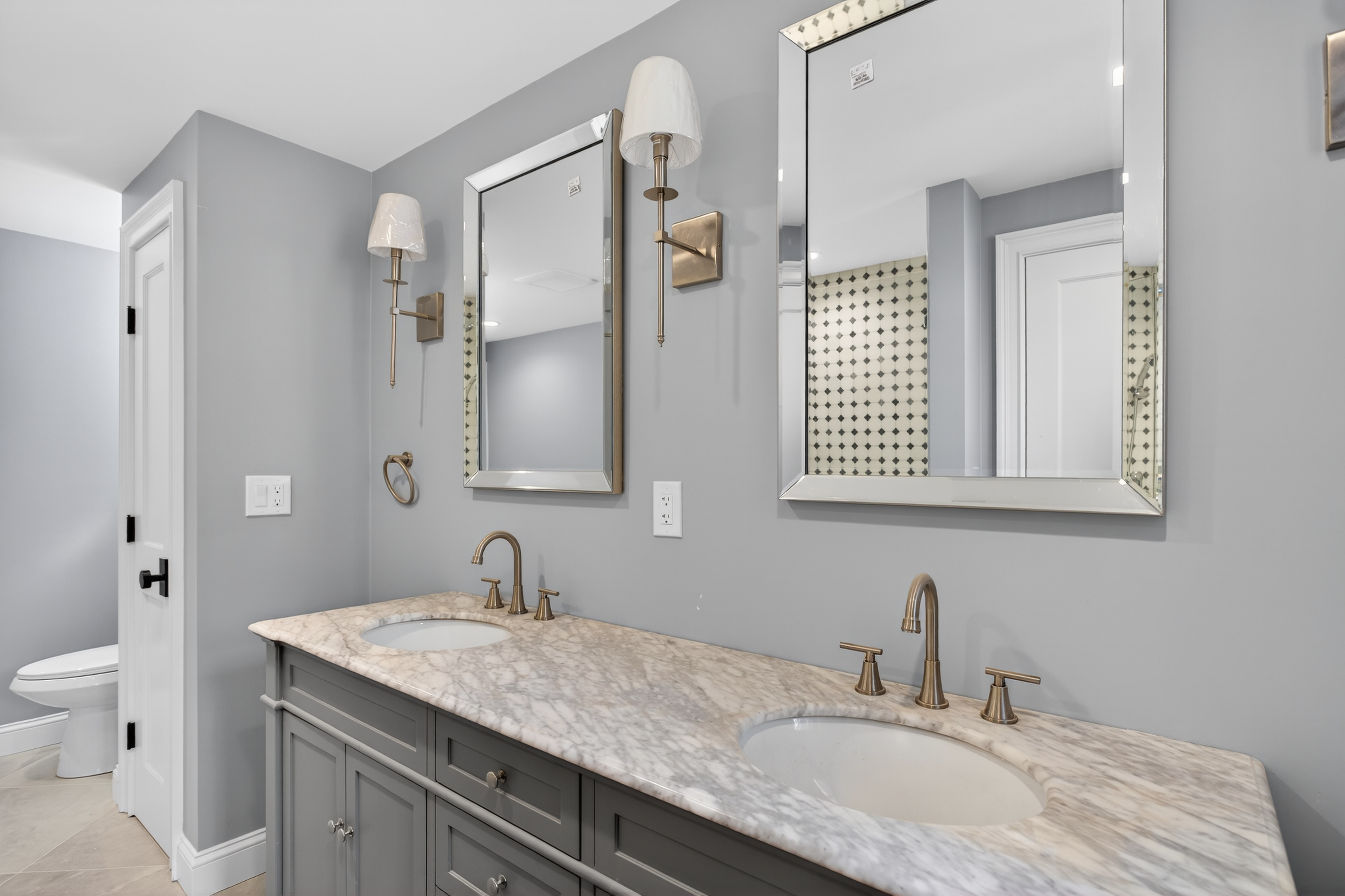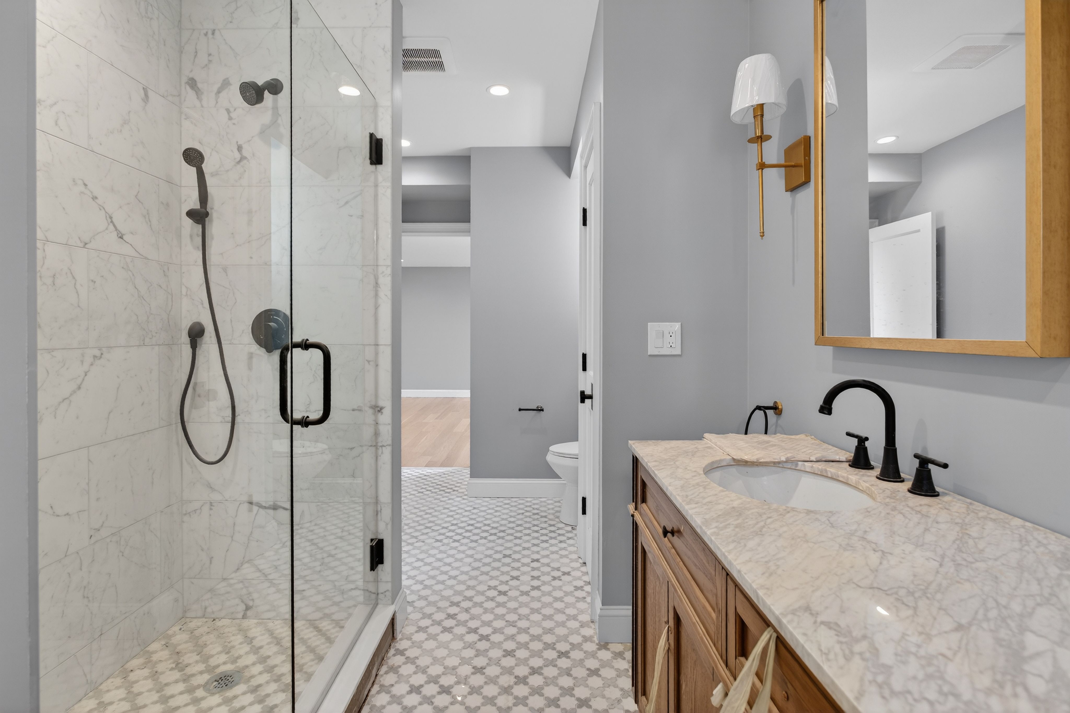 Rarely available! Free-standing single family home totally rebuilt from the foundation up. 2 car tandem parking driveway with custom pavers. Sweeping, open living/dining and entertaining space on the first floor. Stunning kitchen with large breakfast peninsula and abundant cabinetry plus a half bathroom and al fresco Courtyard right off the living room. The second floor offers 2 generous bedrooms and a custom Jack & Jill double vanity bathroom with a tub with laundry on this level. The third floor offers 2 more expansive bedrooms and another custom Jack & Jill bathroom with a double vanity and a shower. The top level features a small den, a half bathroom, and direct access to an impressively large skyline roof deck with endless captivating views! Many amenities throughout, including oversized designer closets and storage! Windows on all sides! The sun moves from east to west across the entire right south-facing side of the home. Impeccable finishes and details everywhere!