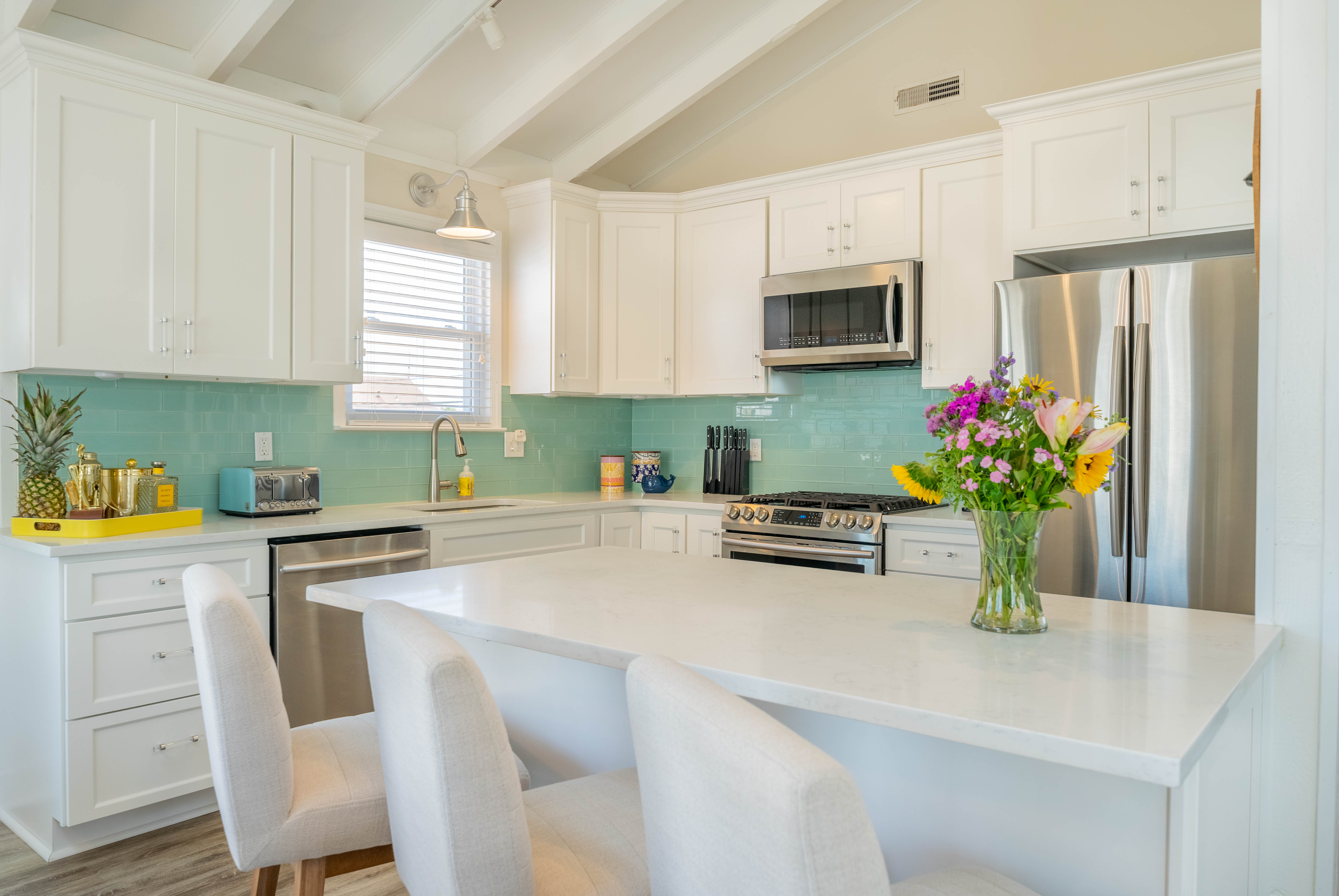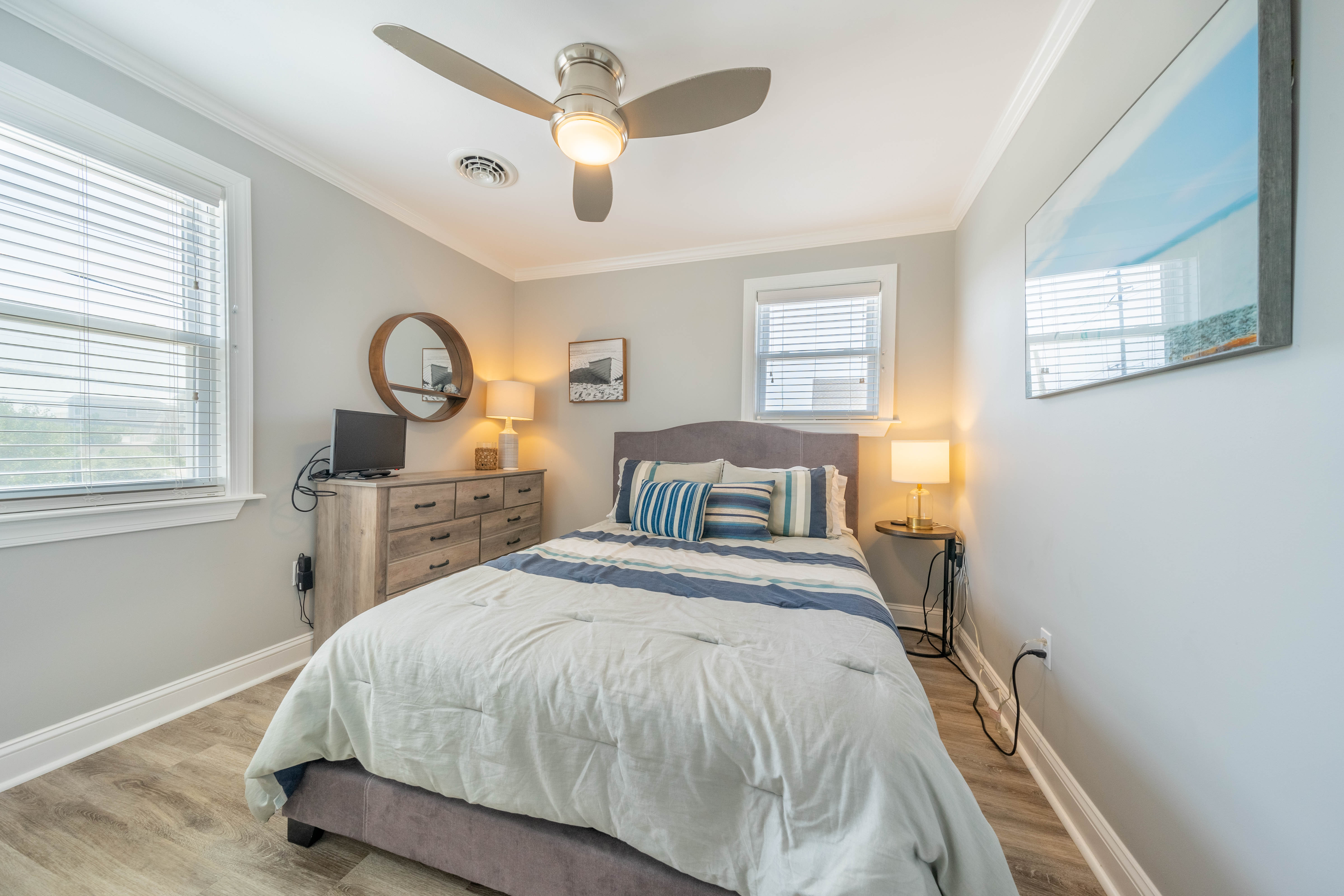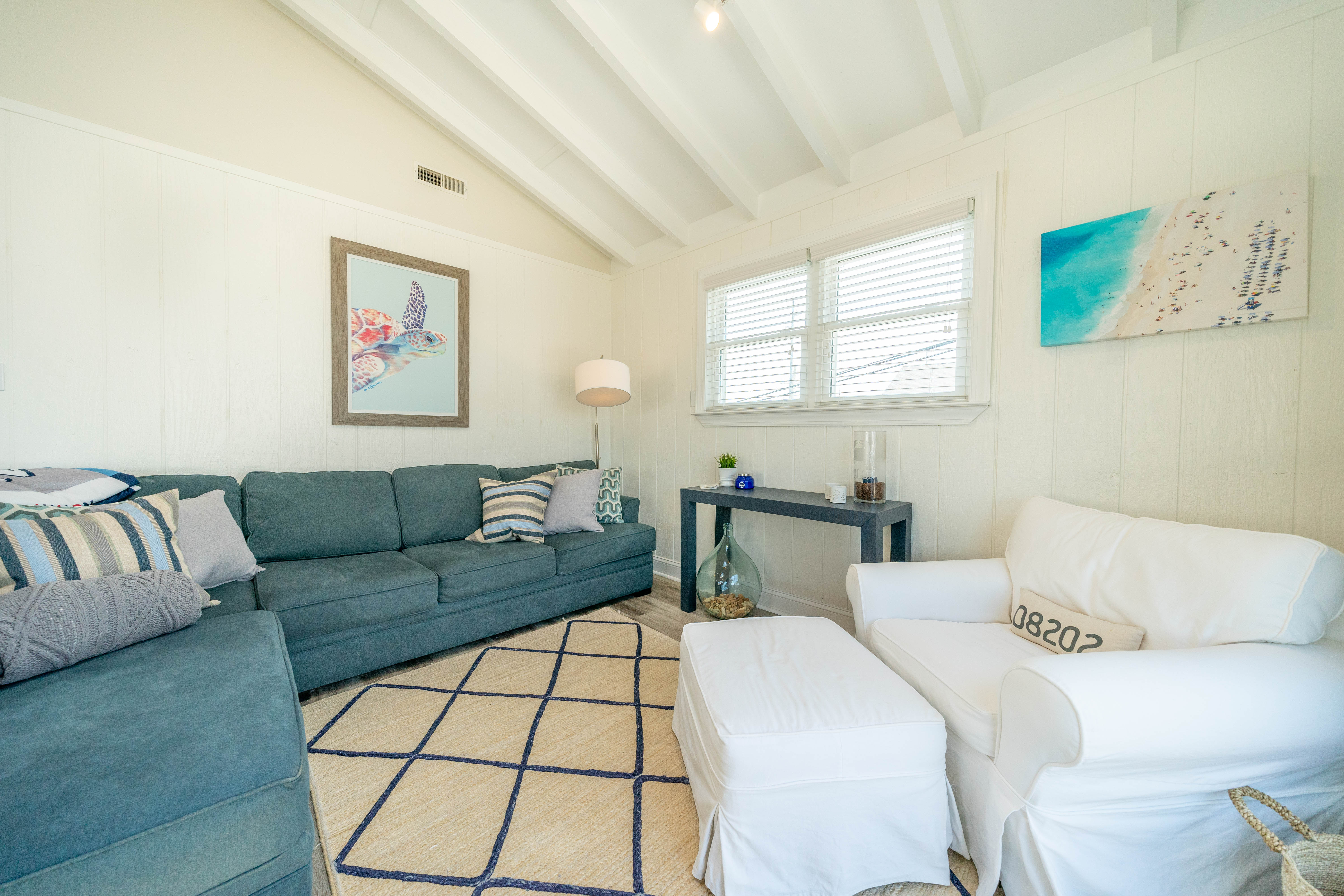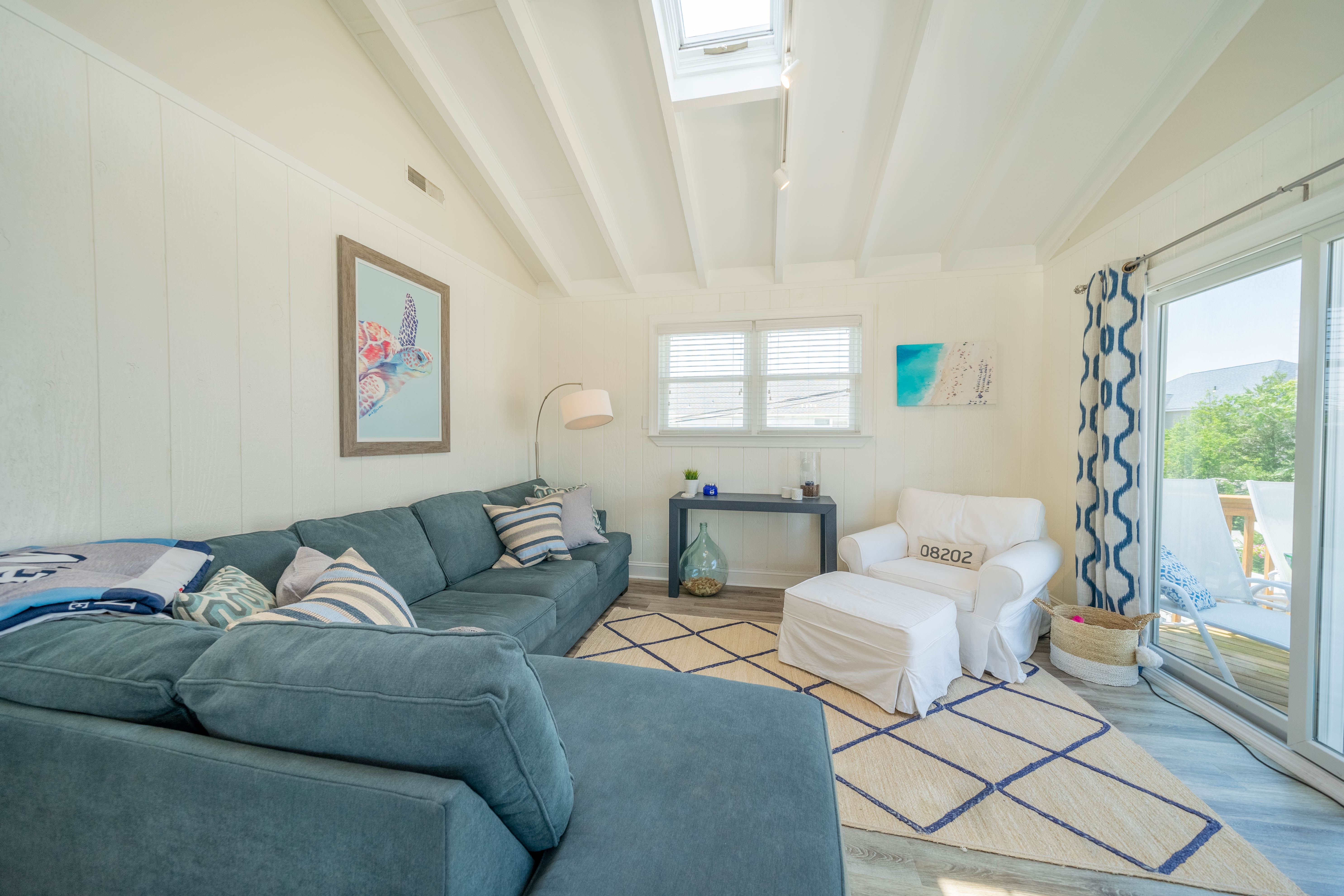 A beautiful wide beach awaits just 2 blocks away from this completely renovated 2nd floor unit. 3 bedrooms, 1.5 baths with an abundance of natural light, and the unique open feel only possible with an oversized corner lot. The wrap around deck is perfect for outdoor dining and lounging. The interior is move in ready with durable wood look laminate flooring, soft close kitchen cabinetry, quartz countertops, stainless appliances (including a bonus beverage refrigerator), glass subway tile backsplash, and modern light fixtures. To be sold mostly furnished, minus list of exclusions in associated docs. The location offers easy access to recreation facilities, as well as downtown shops and restaurants.Property has been occupied as a summer residence, and is available for immediate enjoyment!