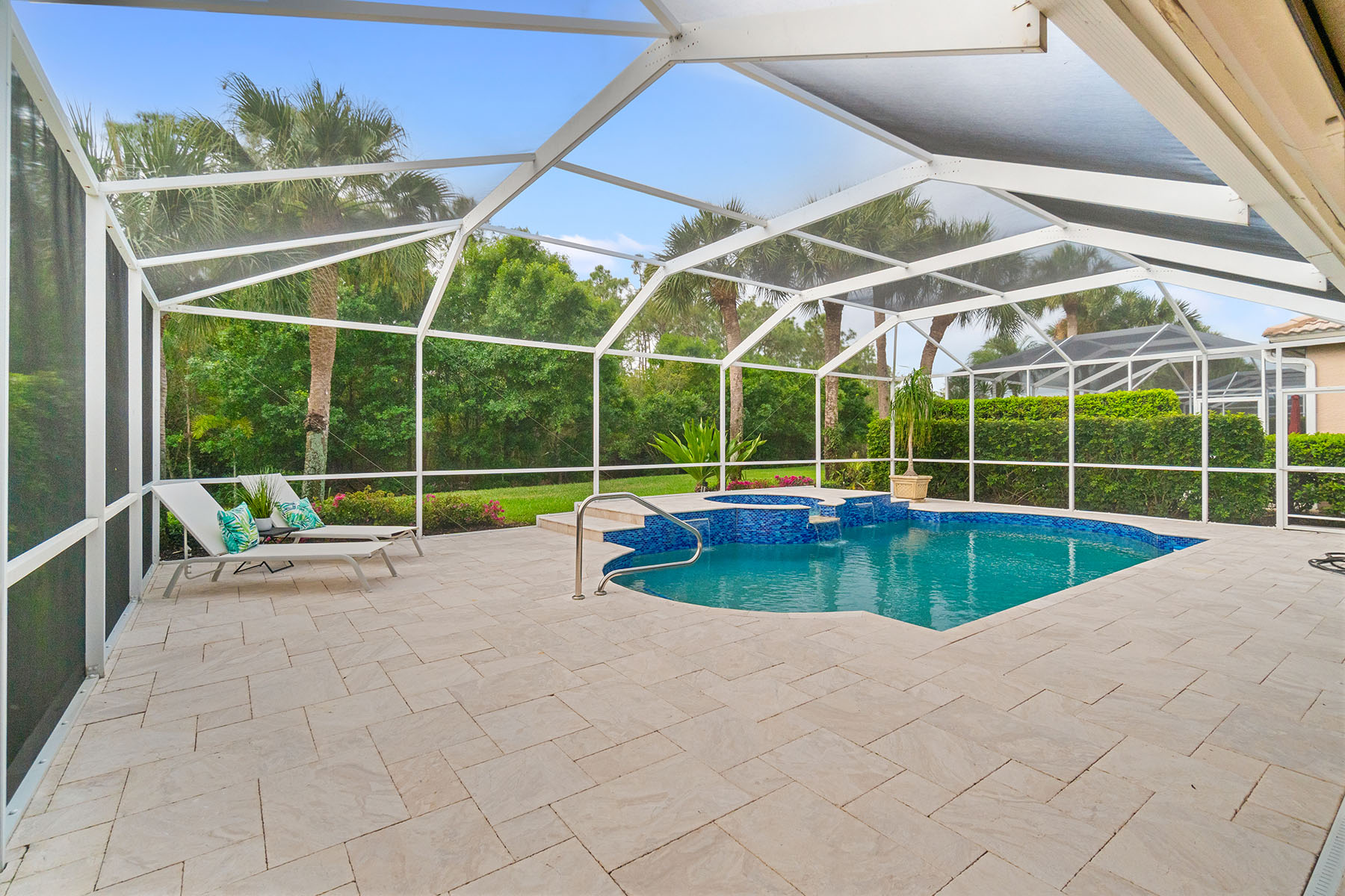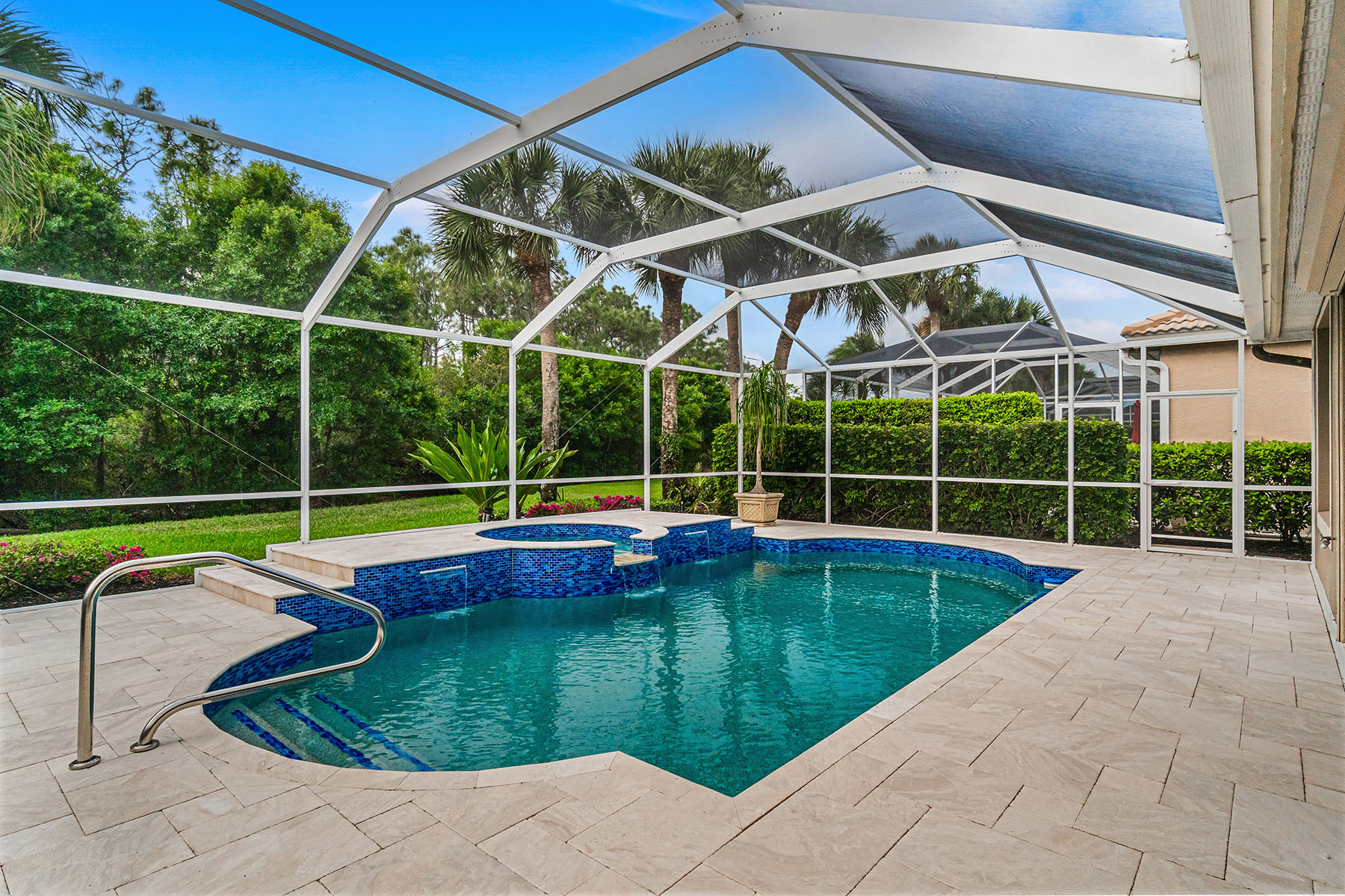 Sun-drenched southern exposure, a stunning updated pool and tranquil, private preserve views set the stage for an exceptional Florida lifestyle. Positioned to capture natural light all day, this impeccably maintained residence offers a desirable layout designed for comfort and effortless entertaining. Go outside to a beautifully upgraded pool area overlooking private, wooded preserve views, creating a peaceful retreat with no rear neighbors. Inside, soaring volume ceilings and a neutral color palette enhance the light and airy feel, while spacious living areas flow seamlessly throughout. A versatile loft/den provides flexibility for a home office, media space or additional lounge. A new roof (2025) and electric hurricane screens on the lanai enhance value and peace of mind, complemented by an attached two-car garage, a spacious laundry room with built-in cabinetry and a utility sink, and thoughtful details throughout that showcase pride of ownership. A rare opportunity to enjoy light-filled living, privacy and a thoughtfully designed layout in a beautifully maintained property. Shadow Wood Country Club members enjoy access to 54 holes of championship golf, two clubhouses, nine Har-Tru tennis courts, bocce, fire pits and fine dining. The golf-in-waiting membership category is available with golf opportunities in season. The exciting new Lifestyle Amenity Center will feature two resort-style pools, lap lanes, a kids' pool, a poolside restaurant and bar, six indoor pickleball courts, a racquet pro shop, and a grab-and-go café. Optional Commons Club membership enhances the lifestyle even further with a private beach club, fitness center, full-service spa, pickleball and exclusive dining options. Live the Southwest Florida dream with stunning views, spacious living and world-class amenities right at your doorstep. Incredible value so don't miss this opportunity.