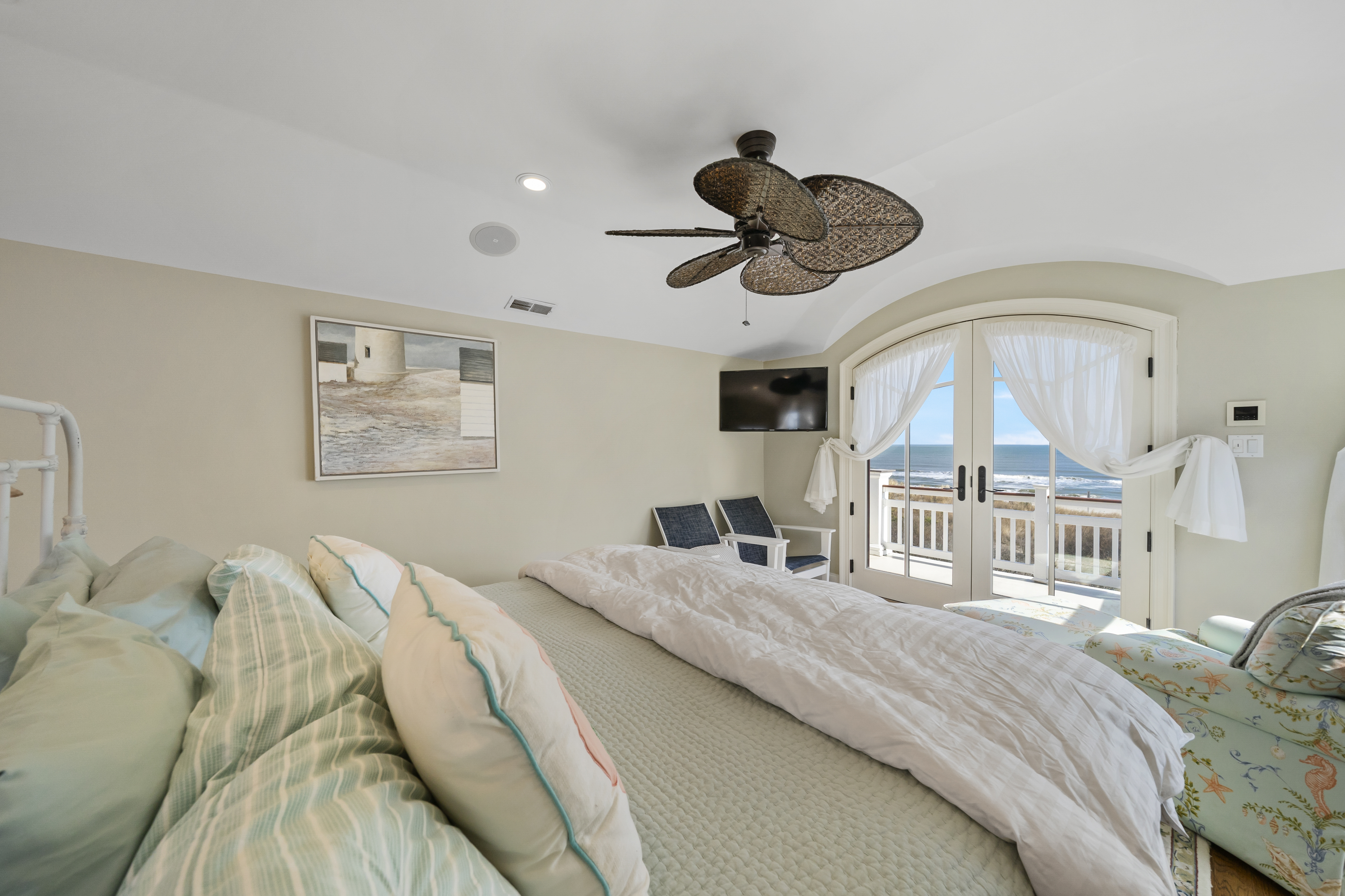 Masterfully envisioned by architect Blaine Steinman and precision-built by W.J. Hand Builders, this custom three-story residence is a triumph of "Natural Modern" design. The home seamlessly integrates clean architectural lines with the soulful, traditional elements of Carolina coastal style, creating a timeless aesthetic defined by organic materials and regional charm. Spanning 4,096 square feet of meticulously crafted living space, the floor plan is designed for both grand entertaining and quiet retreat, featuring five spacious bedroom suites and two additional powder rooms. The first floor serves as a functional coastal hub with an ocean-side family room and a dedicated indoor shower room, complemented by a detached one-car garage. Elevating the concept of luxury, the entire third floor is dedicated to a spectacular primary sanctuary, complete with a private home office, a spa-caliber bath, and an exclusive oceanfront deck. This is a rare opportunity to own a landmark home where sophisticated design meets the serenity of the sea. Showing by appointment only; 23-hour advance notice is required and the listing agent must accompany.