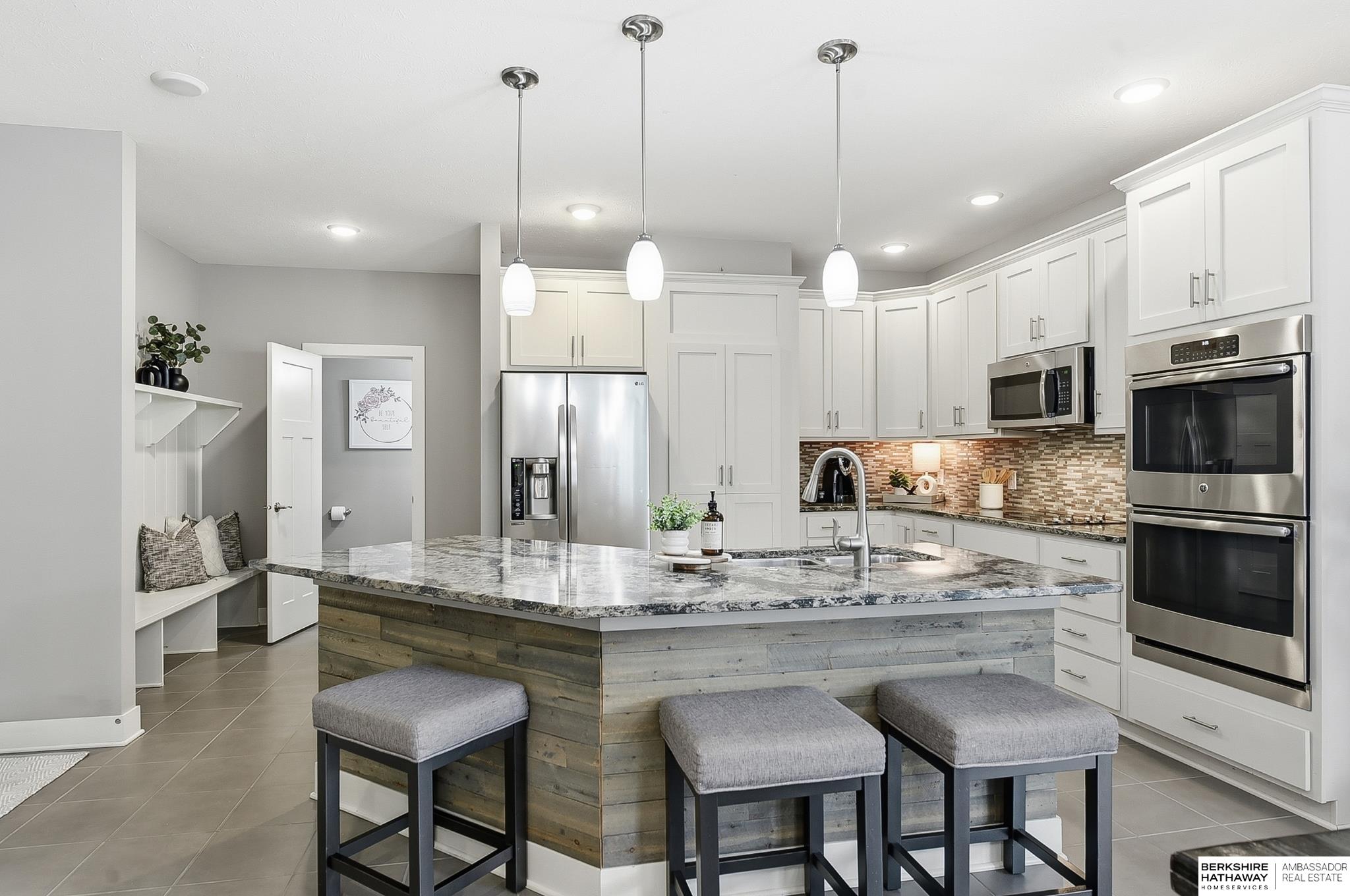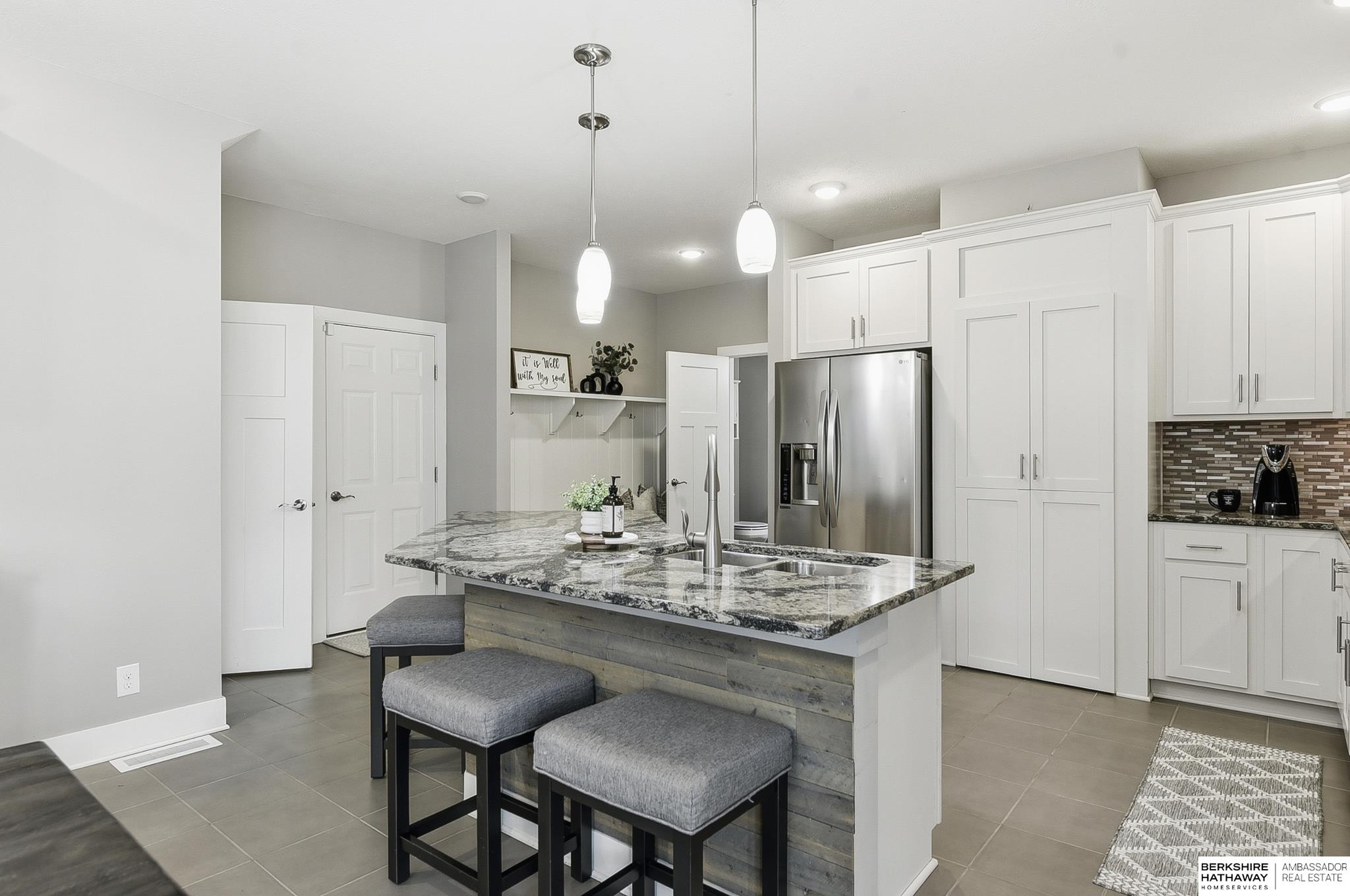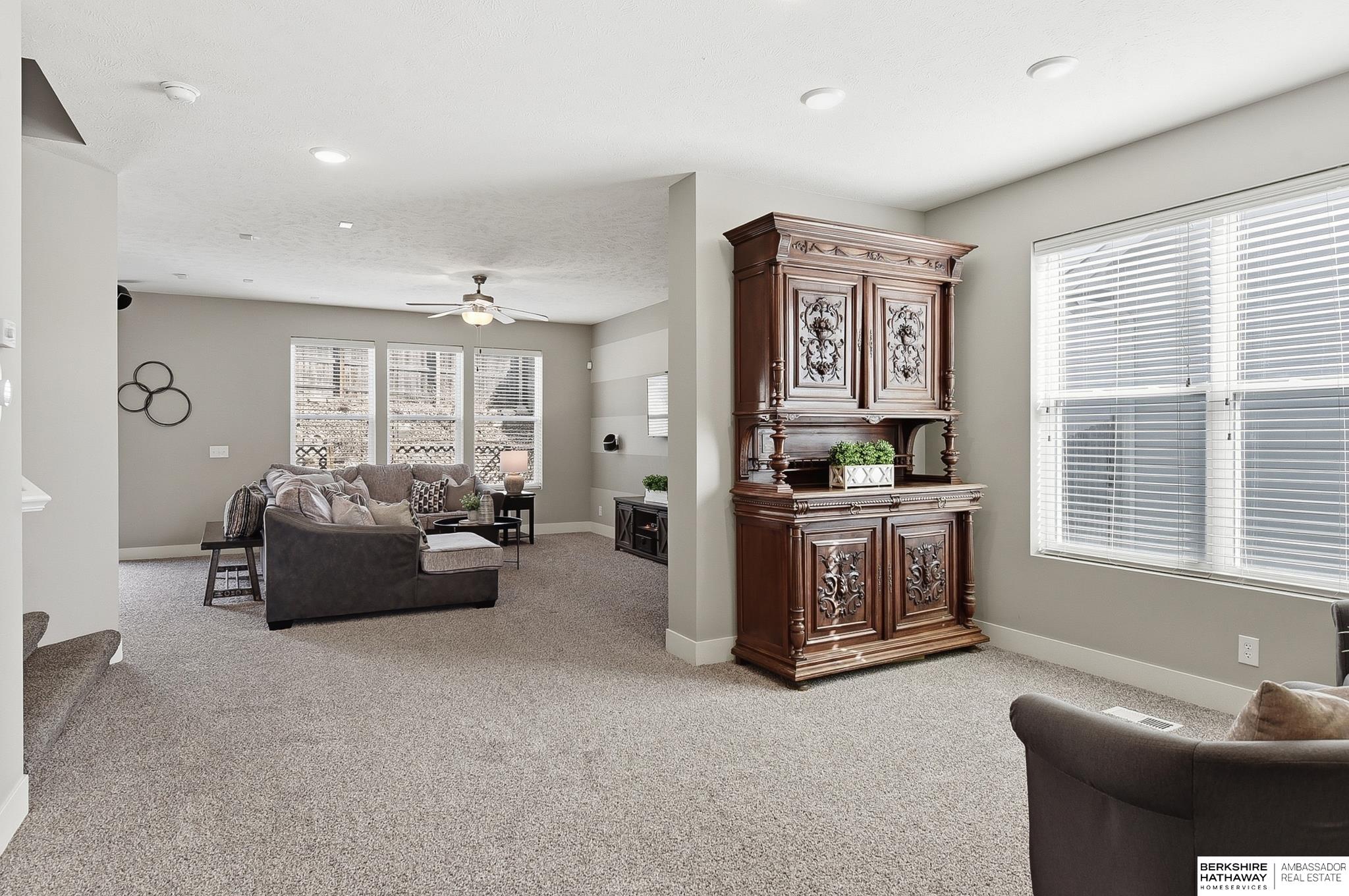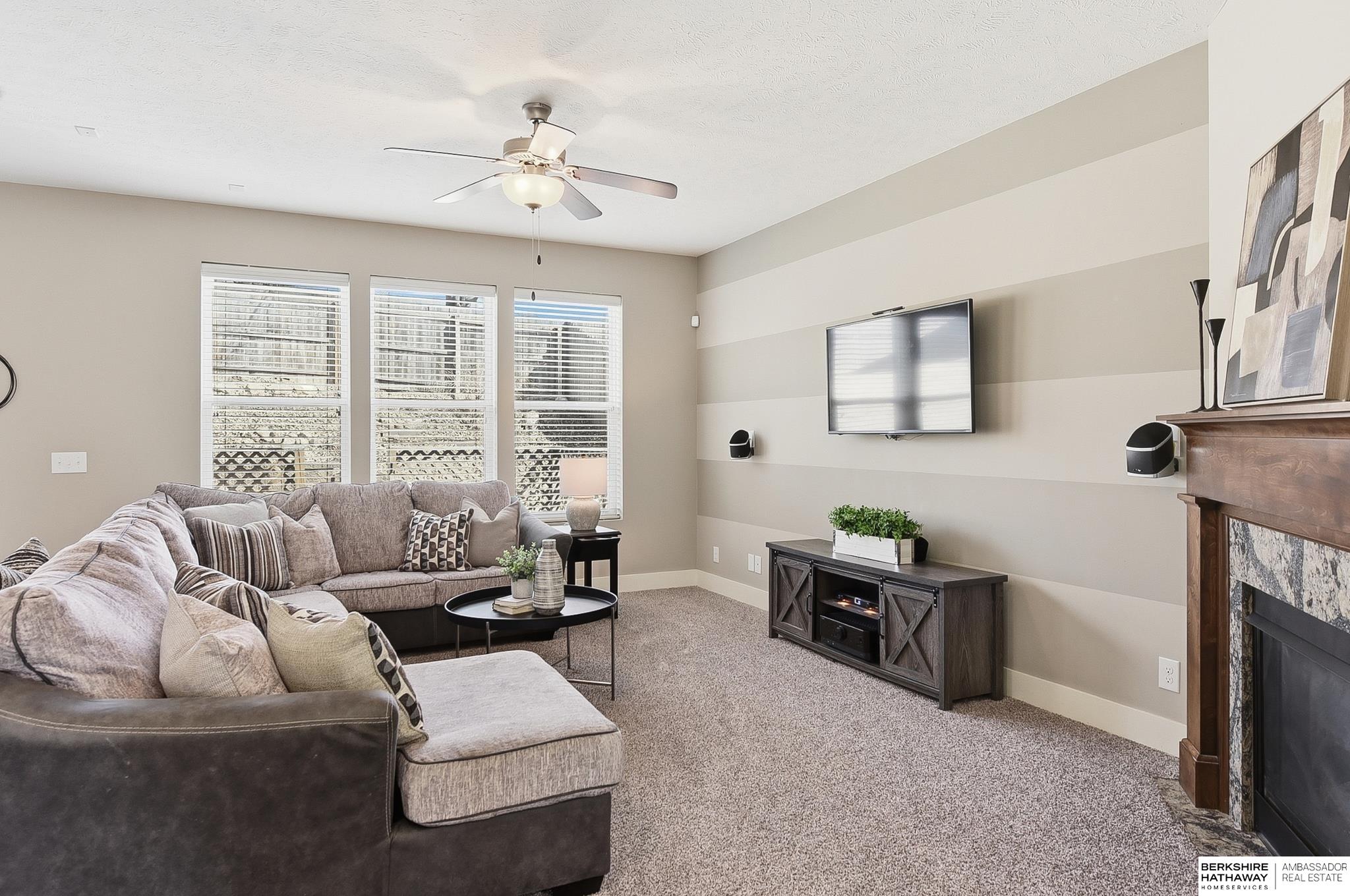 Open House Sunday March 22nd 1-3pm. Yep, it's Awesome...If you are looking for spaces for everyone, you have definitely found the one! Over 4000 finished square feet of Amazing in this light & bright 4/4/3 landscaped, fully fenced West facing 2 story in Millard Schools. Oversized bedrooms all have direct bath access & large walk-in closets. Primary suite w/ double doors, sitting area, raised ceiling, 2x sinks & xl shower. Stunning Kit. boasting double ovens, massive pantry, roomy island, white painted cabinetry, quartz counters, buffet area & drop zone. Open main floorplan is full of light w/ spacious family room, fireplace, formal dining/flex room & dedicated office complete w/ french doors. Over 1000 sqft finished lower level has rough in for bath & space for a 5th bed if needed. 2nd floor laundry is massive! Deck spans almost the length of the back of the house. Some fresh paint & new carpet. Whitehawk has parks, a beautiful lake and walking paths. Don't let this one slip away!