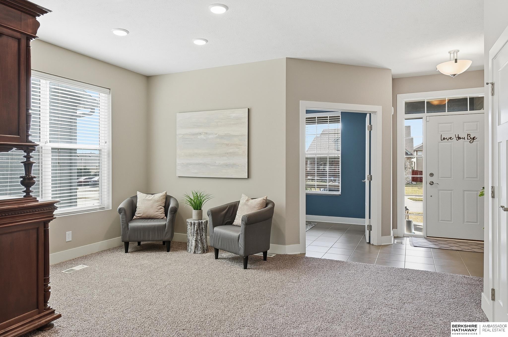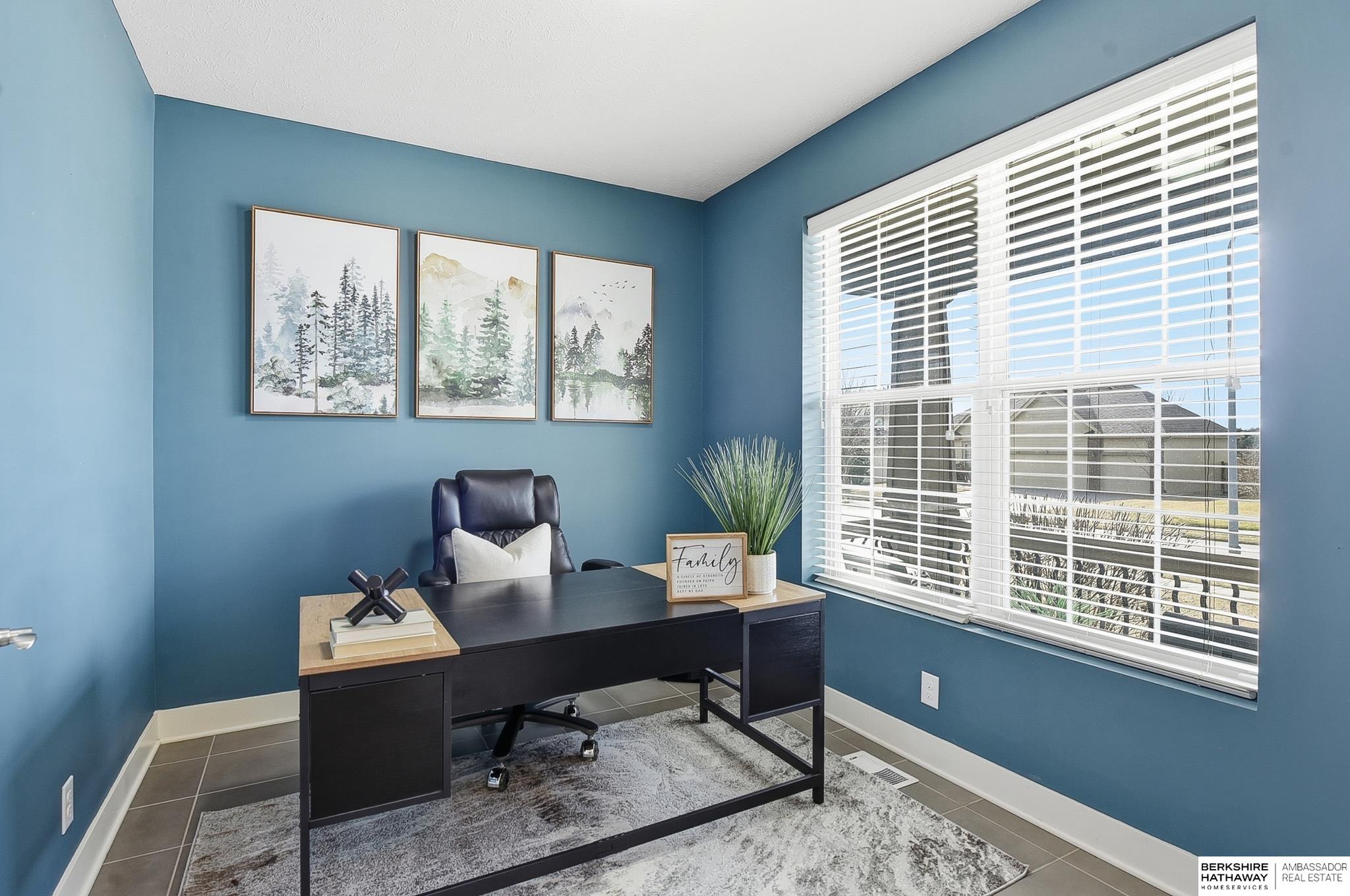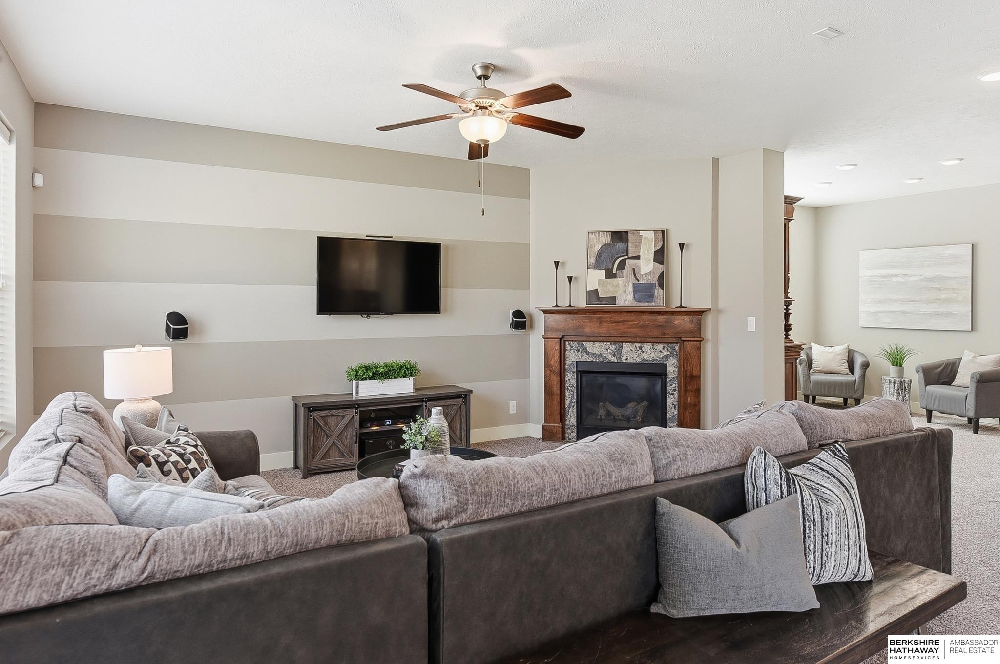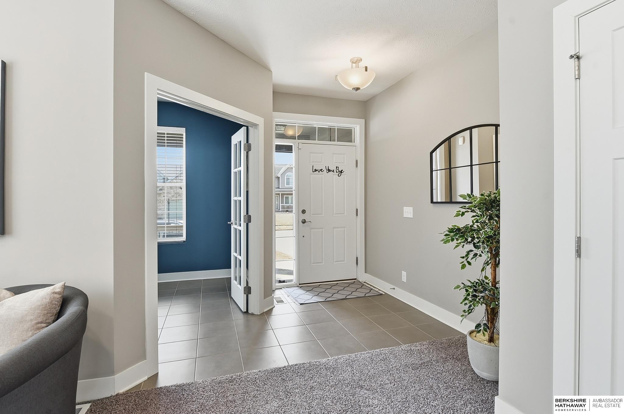 Open House Sunday March 22nd 1-3pm. Yep, it's Awesome...If you are looking for spaces for everyone, you have definitely found the one! Over 4000 finished square feet of Amazing in this light & bright 4/4/3 landscaped, fully fenced West facing 2 story in Millard Schools. Oversized bedrooms all have direct bath access & large walk-in closets. Primary suite w/ double doors, sitting area, raised ceiling, 2x sinks & xl shower. Stunning Kit. boasting double ovens, massive pantry, roomy island, white painted cabinetry, quartz counters, buffet area & drop zone. Open main floorplan is full of light w/ spacious family room, fireplace, formal dining/flex room & dedicated office complete w/ french doors. Over 1000 sqft finished lower level has rough in for bath & space for a 5th bed if needed. 2nd floor laundry is massive! Deck spans almost the length of the back of the house. Some fresh paint & new carpet. Whitehawk has parks, a beautiful lake and walking paths. Don't let this one slip away!