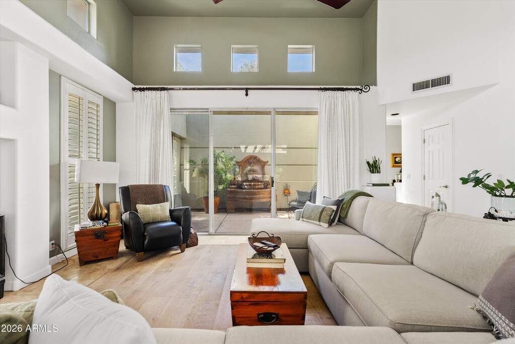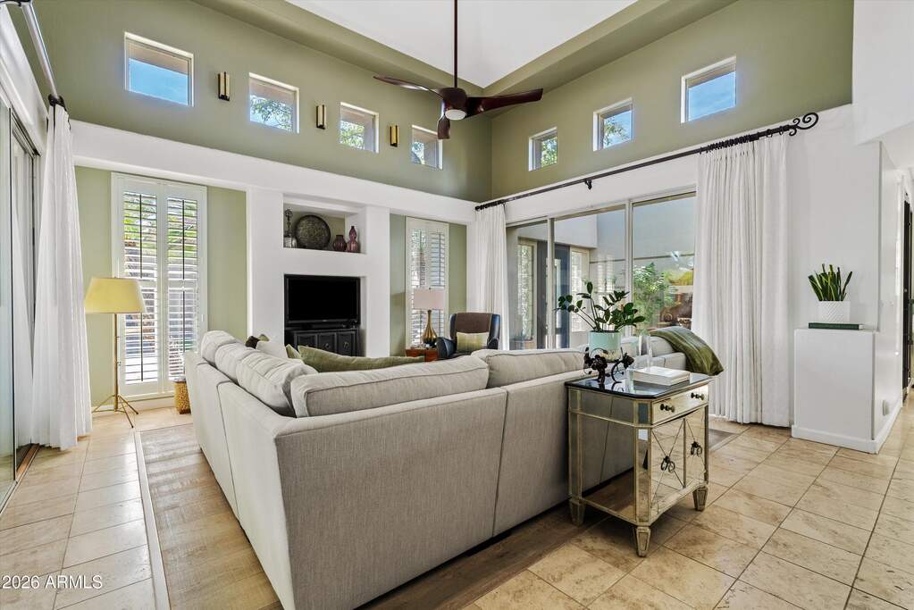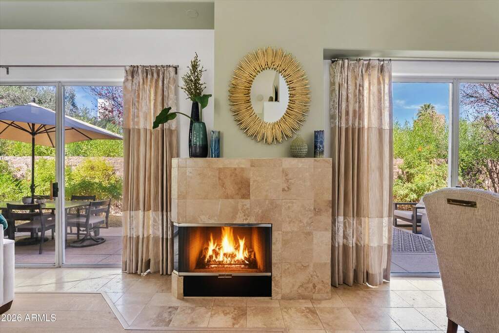 Beautifully designed custom 4 bed + loft | 4 bath North Central residence ideally located just steps from the iconic Murphy Bridle Path. This elegant home showcases timeless finishes and thoughtful detail throughout, including stunning travertine marble flooring in the entry, kitchen, dining area, laundry room, and bathrooms, along with matching travertine bathroom countertops. The spacious living room is centered around a striking gas fireplace, creating a warm and inviting atmosphere, while high-end custom drapery, plantation shutters, and vaulted ceilings enhance the home's bright and open feel. The gourmet kitchen is a chef's dream, featuring granite countertops, a gas range, Sub-Zero refrigerator, tall white cabinetry, a built-in desk, and a charming breakfast nook. This residence offers exceptional indoor-outdoor living with multiple inviting spaces, including a private courtyard with a serene fountain, as well as additional fountains at the front entry, front patio, and back patio--adding to the home's tranquil ambiance. Lush common area grass borders the property, creating a peaceful and picturesque setting, all while situated on a secluded street. A truly distinctive property offering character, comfort, and an unbeatable North Central location near the Bridle Path and some of Phoenix's most beloved local hot spots.