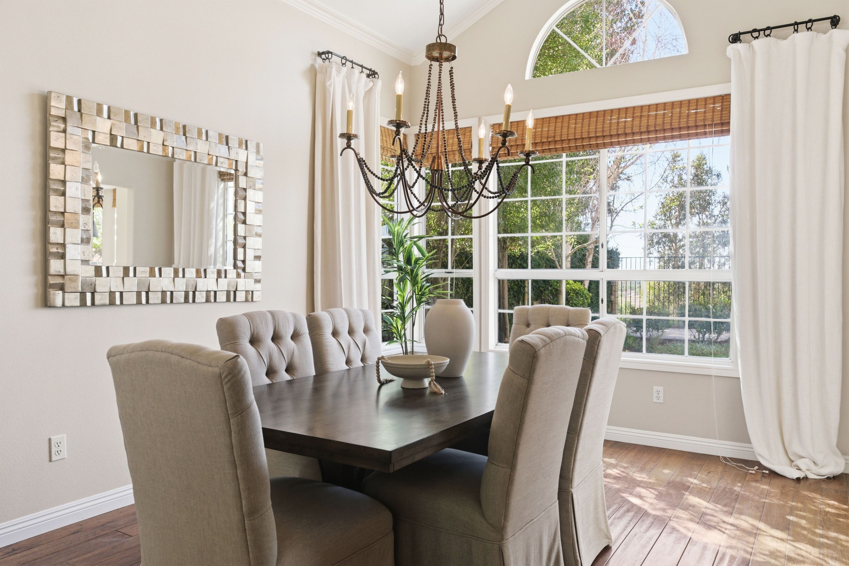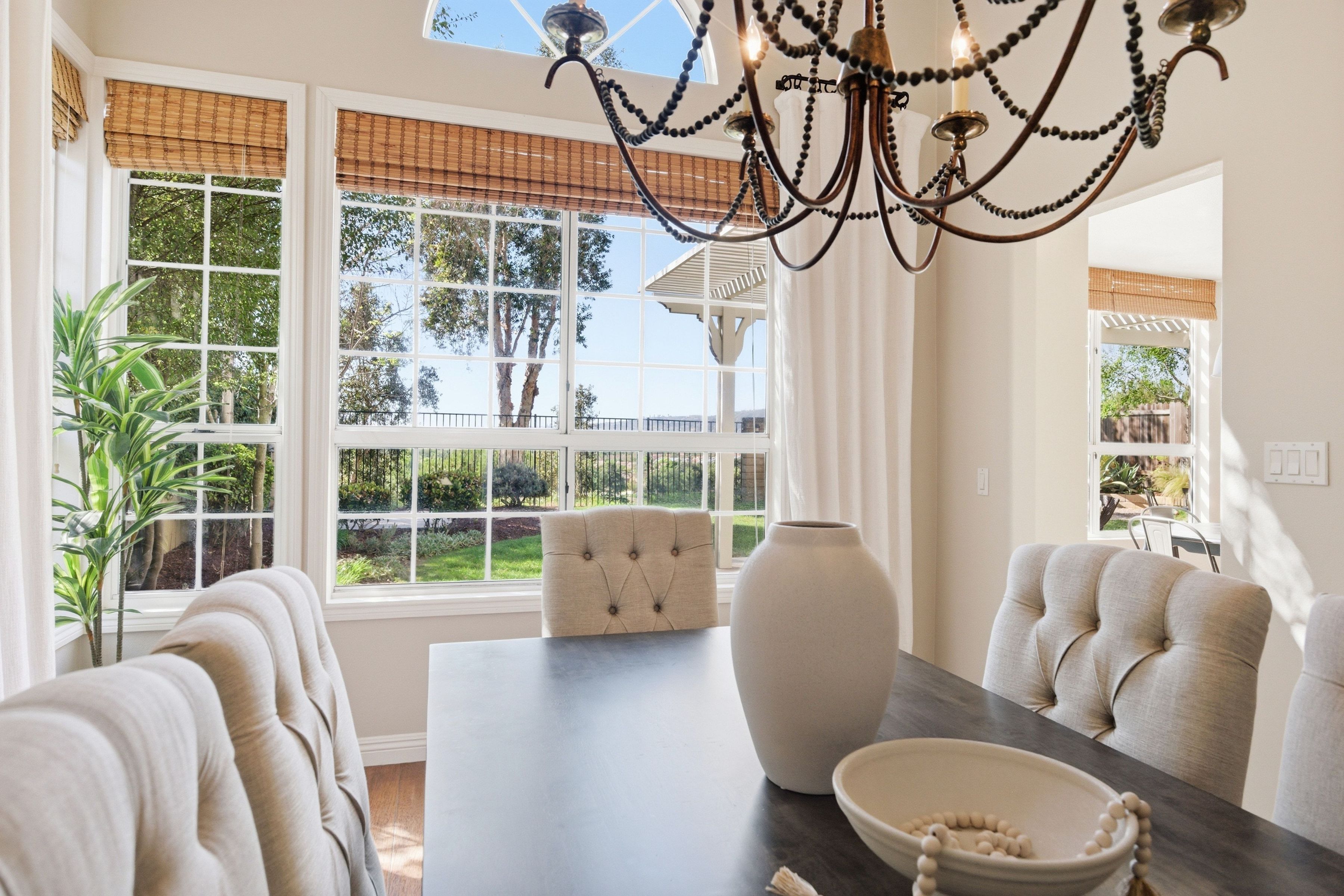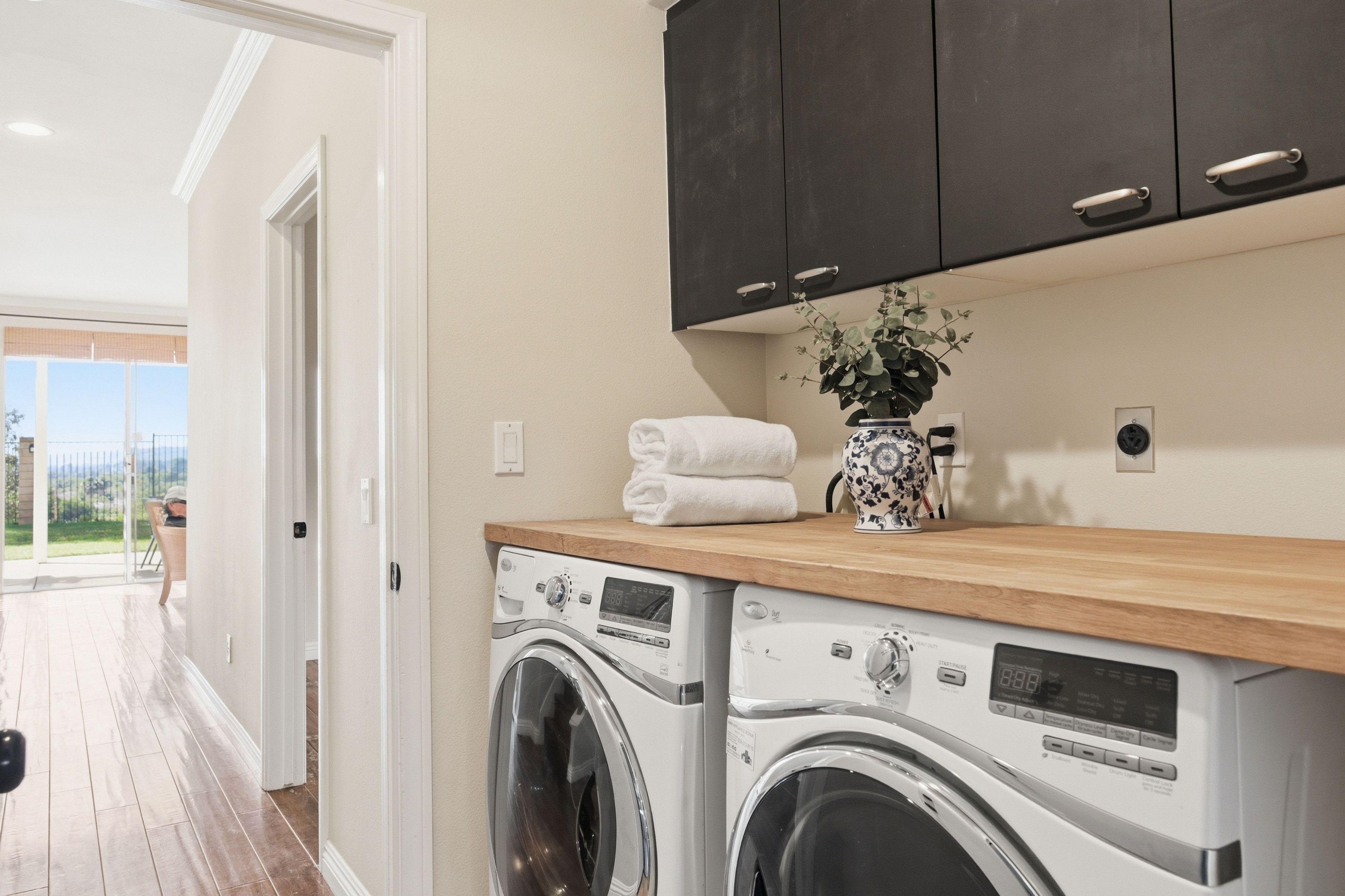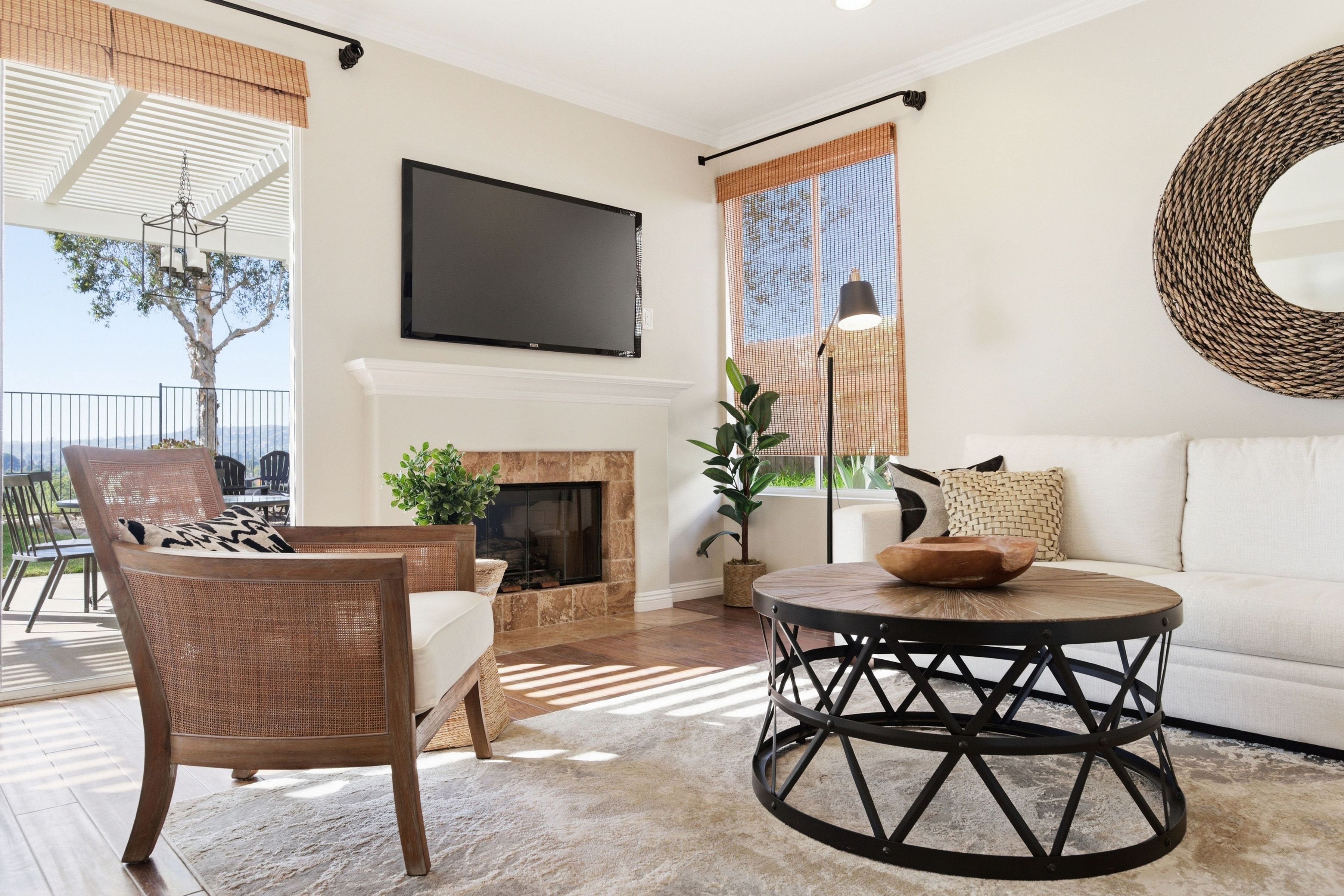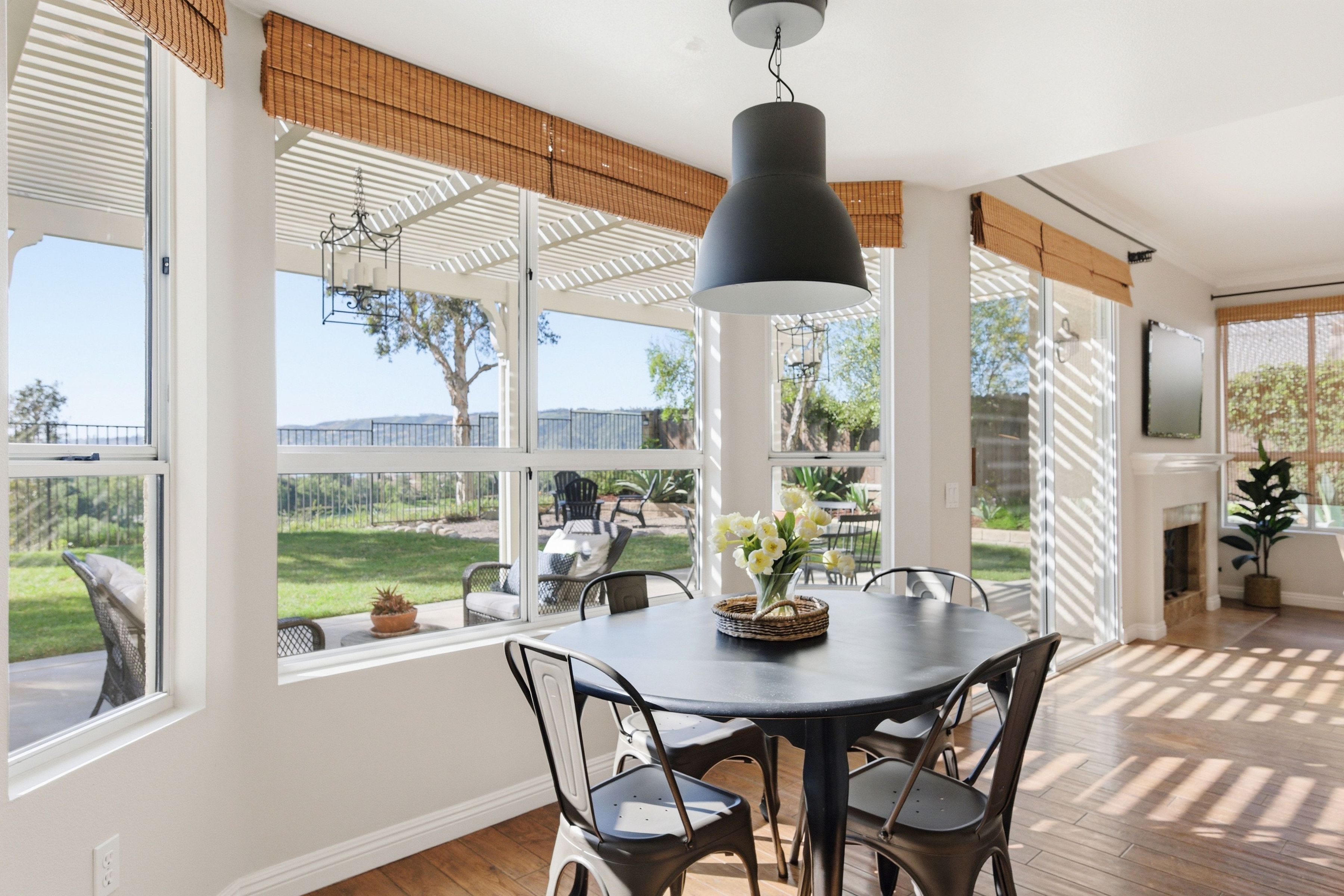 Nestled in the highly sought-after Mission Oaks neighborhood of Camarillo, this beautifully maintained two-story residence offers exceptional curb appeal and a warm, inviting presence from the moment you arrive. Thoughtfully designed, the home features a desirable floor plan with 4 bedrooms and 3.5 bathrooms, including a convenient downstairs bedroom with its own private bath--ideal for guests, multigenerational living, or a private home office. The entry opens to a large, light-filled living room that flows effortlessly into the dining area, creating an elegant space for gatherings and everyday living. The heart of the home is the spacious family room, complete with a cozy fireplace and seamless access to the kitchen. The kitchen itself is generously sized and well-appointed, offering stainless steel appliances, ample cabinetry, and plenty of counter space for cooking and entertaining. A downstairs laundry area and powder bathroom add to the home's functionality and comfort. This home also features distressed wood flooring, crown molding, and large baseboards that elevate the home style with a refined yet welcoming feel. Upstairs, the expansive primary suite serves as a peaceful retreat. The remodeled primary bathroom features modern finishes, dual vanities, and a huge walk-in closet designed for exceptional storage and organization. Two additional upstairs bedrooms include brand-new carpet, and all bathrooms throughout the home have been tastefully updated, ensuring a cohesive and contemporary aesthetic. The serene backyard oasis has meticulously landscaped grounds to create a sense of privacy and tranquility. A new covered patio and inviting sitting area provide the perfect setting for outdoor dining, relaxation, or simply enjoying the stunning views that make this property truly special. Whether hosting friends or savoring quiet moments, the outdoor space is designed to be enjoyed year-round. Located within close proximity to all three highly regarded local schools--Tierra Linda Elementary, Las Colinas Middle School, and Adolfo Camarillo High School--this home offers not only comfort and beauty but also convenience and community. With its thoughtful upgrades, versatile layout, and picturesque surroundings, this Mission Oaks gem is ready to welcome its next chapter.