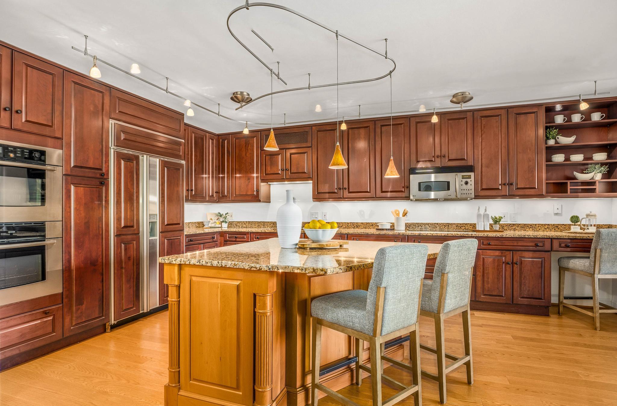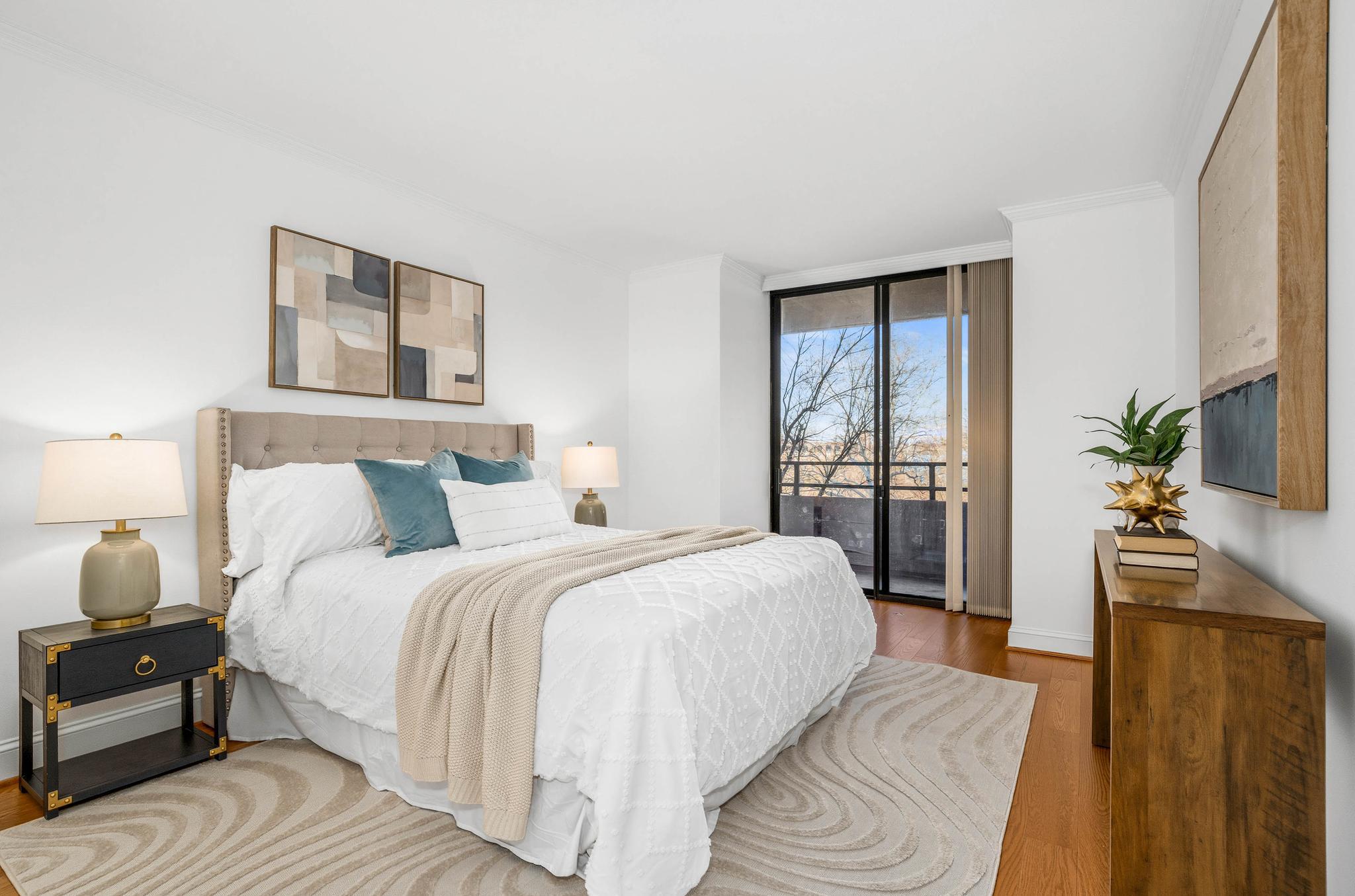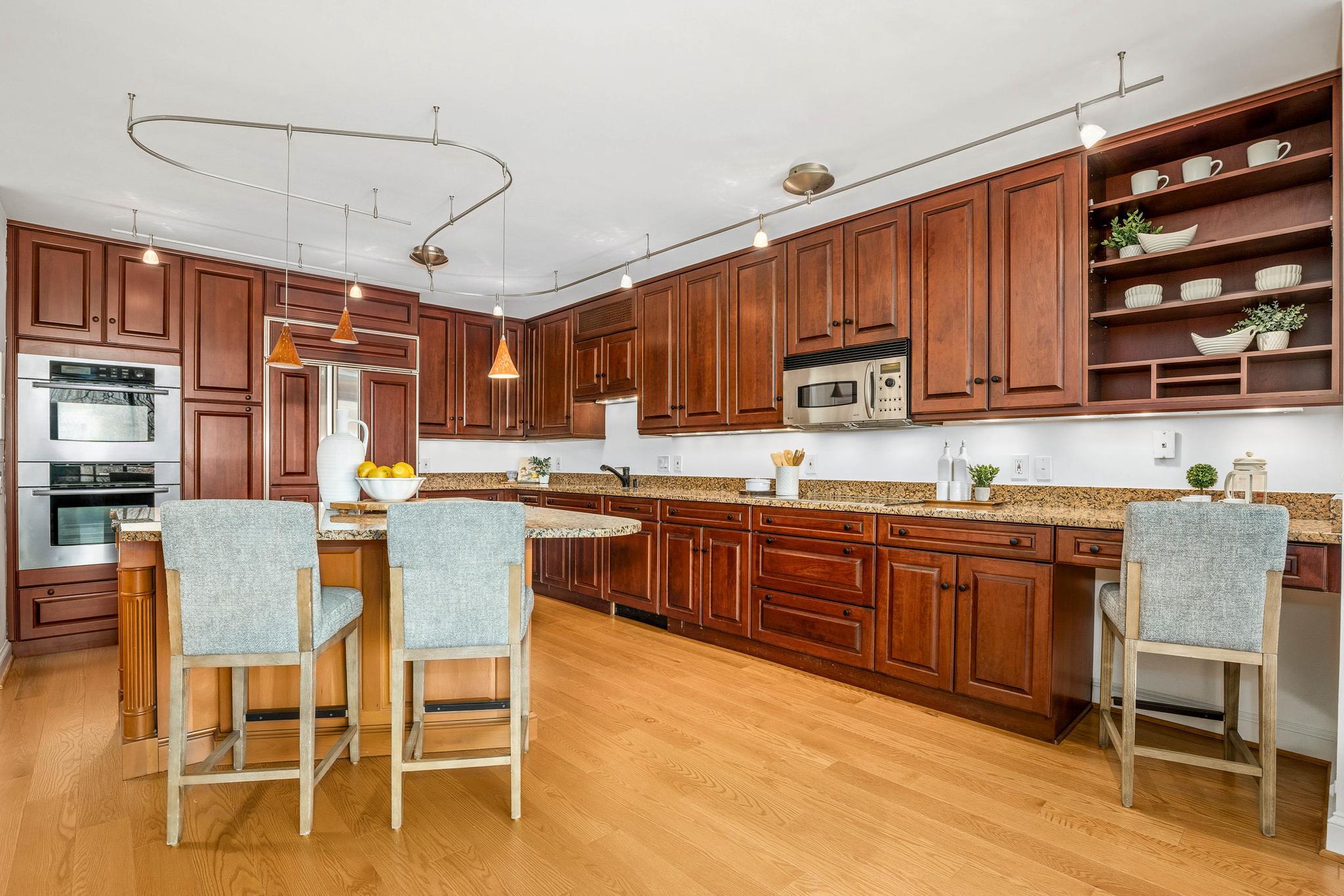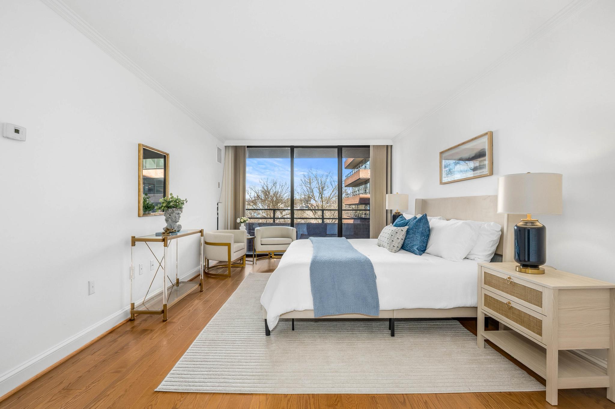 This expansive residence offers nearly 1,400 square feet of thoughtfully designed living space with sweeping sunset views from every room. The well-proportioned two-bedroom, two-bath layout features brand-new imported hardwood floors throughout and an exceptional 45-foot private balcony accessed through floor-to-ceiling sliding glass doors, creating seamless indoor-outdoor living with views toward Georgetown and Rock Creek Park. The open kitchen is anchored by a large center island with granite countertops, custom solid cherry cabinetry, and premium appliances including a Sub-Zero refrigerator and Bosch double ovens, along with additional Bosch appliances. The generous living area includes a custom built-in bookcase with integrated cabinetry, offering both style and functionality. The spacious primary suite features a walk-in closet plus an additional closet, along with a well-appointed bath offering a double vanity, soaking tub, and separate shower. The second bedroom also includes a walk-in closet, providing excellent storage and flexibility for guests or a home office. A side-by-side washer and dryer, garage parking, and a private storage unit complete the offering. Residents of The Westbridge enjoy a full-service lifestyle with 24-hour concierge and security, on-site management, building engineer, and dedicated porters. Building amenities include a heated outdoor swimming pool and a newly updated fitness center, while the corridors have recently been refreshed with new lighting, carpeting, and paint. The building is pet-friendly.Located in the vibrant West End, the residence is moments from Georgetown, Rock Creek Park trails, Trader Joe’s, the Foggy Bottom Metro, and many of Washington’s most acclaimed restaurants and hotels, as well as convenient access to the World Bank and IMF.