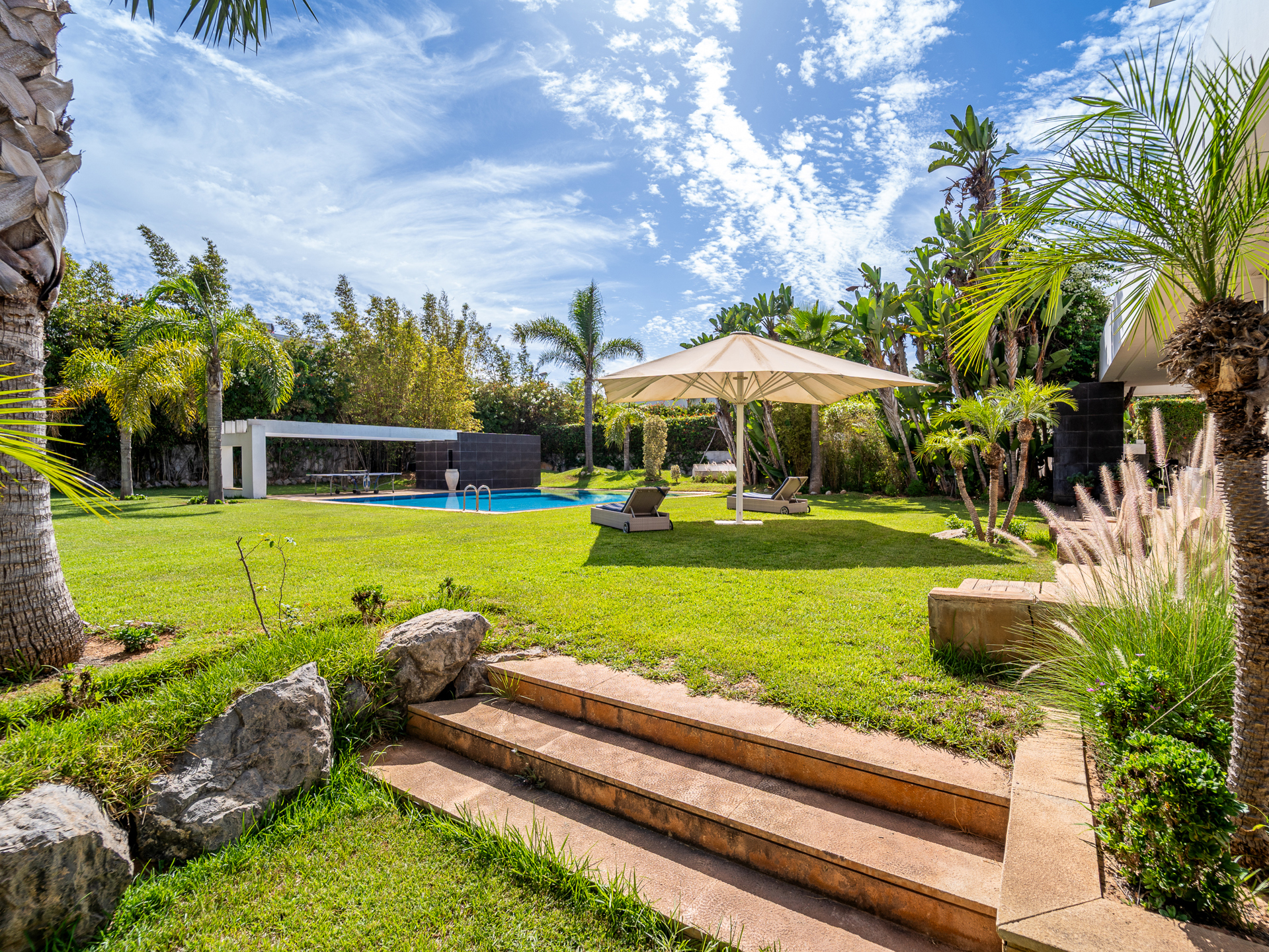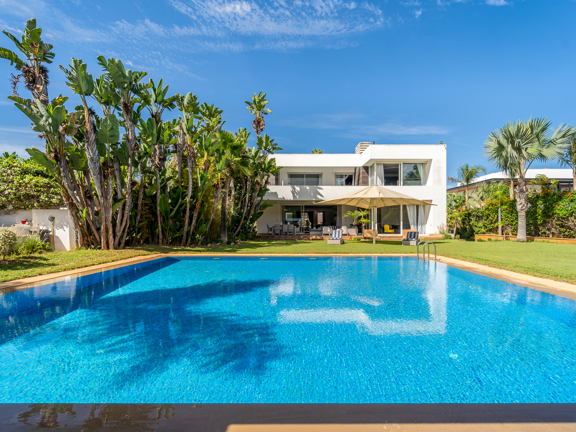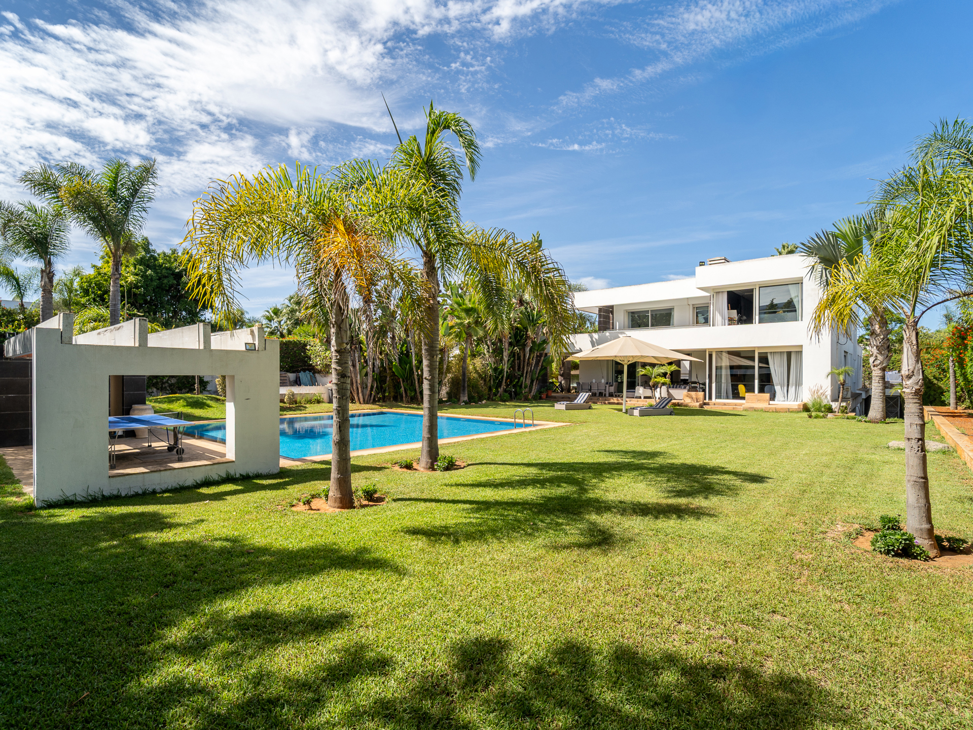 Morocco Sotheby's International Realty in Rabat, presents this villa of 1.000 m² habitable, set in the heart of its garden of 2.000 m² and ideally located in the quiet and secure Orangeraie. Situated in one of Rabat's most sought-after districts, this villa exemplifies refinement and elegance. Spread over three levels, the property offers generous living spaces, a lush garden, and a large swimming pool, all set in an environment of absolute tranquility. On the ground floor, you will find a traditional Moroccan lounge offering a warm ambiance, as well as a modern European lounge. The living area, complete with a fireplace, opens out onto a magnificent garden, while a large dining room allows you to entertain in style. This level also features a guest bedroom with an en-suite bathroom and dressing room, as well as open-plan guest areas with double shower rooms. Additionally, it includes a high-quality fitted kitchen, a practical laundry room overlooking the courtyard, a staff bedroom, and a storeroom. Upstairs, the master suite, featuring a fireplace, is a true sanctuary of luxury, complete with a spacious bathroom. A junior suite with an en-suite bathroom and two further bedrooms with a shared bathroom offers all the comforts you could wish for. The basement of this villa is designed for a resolutely modern and enjoyable lifestyle. It features a fully equipped gym with a sauna and jacuzzi, as well as a multi-purpose room (ideal for a cinema or games area) that opens onto the courtyard. Other facilities include a Garage for 10 cars, a lift, solid wood flooring, split air conditioning, central heating, Bose sound system. The Orangeraie district, part of the Souissi area, is characterized by its tranquillity and lush greenery, in the heart of Rabat. For further information about this property, please contact Zoubida Labdi on +212 6 67 99 08 09.