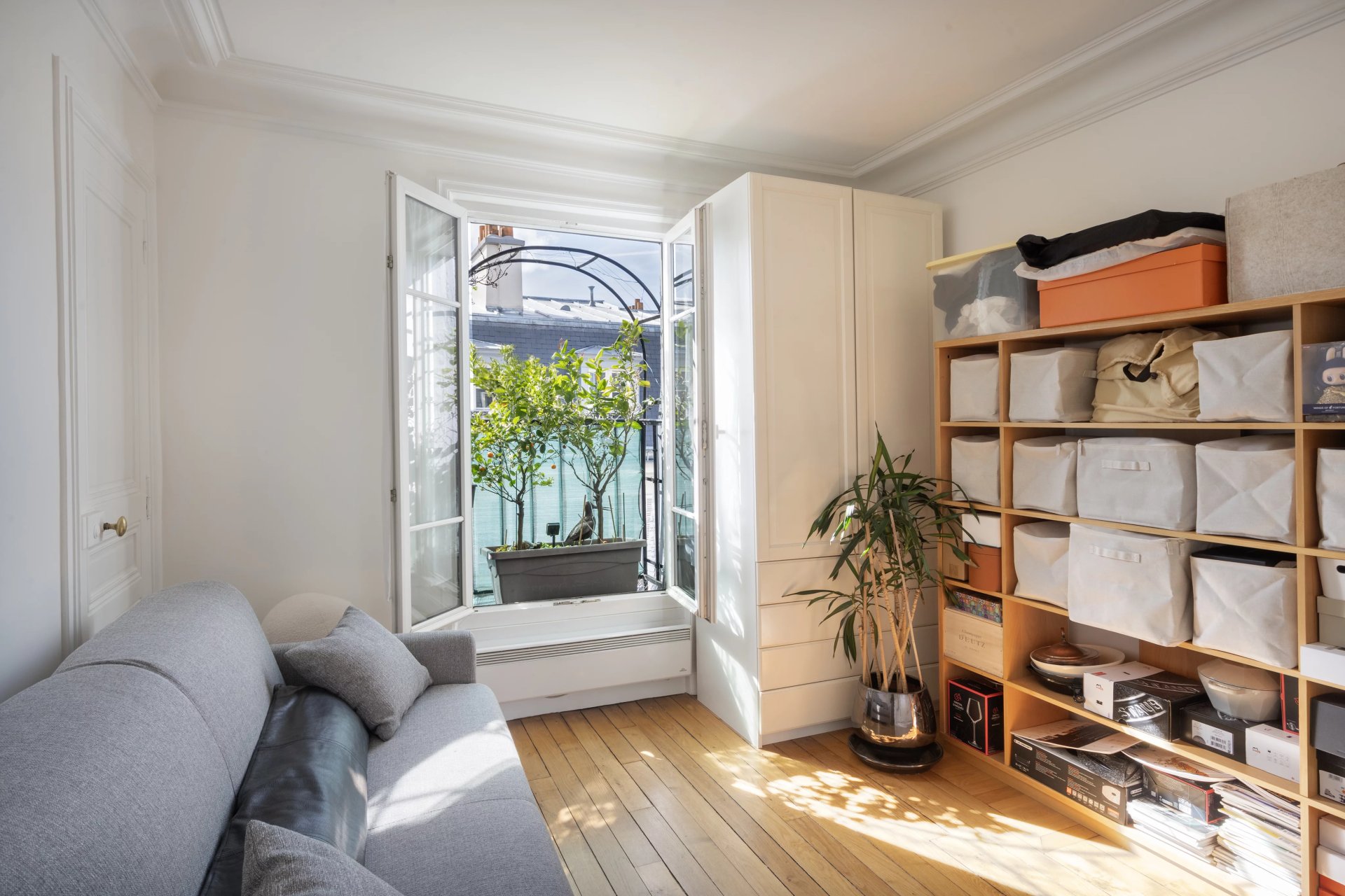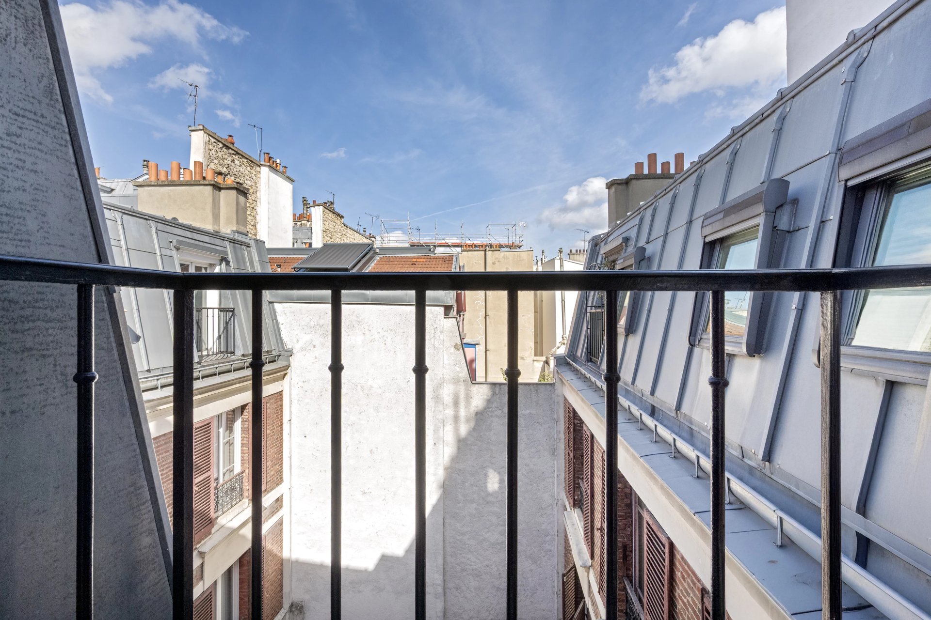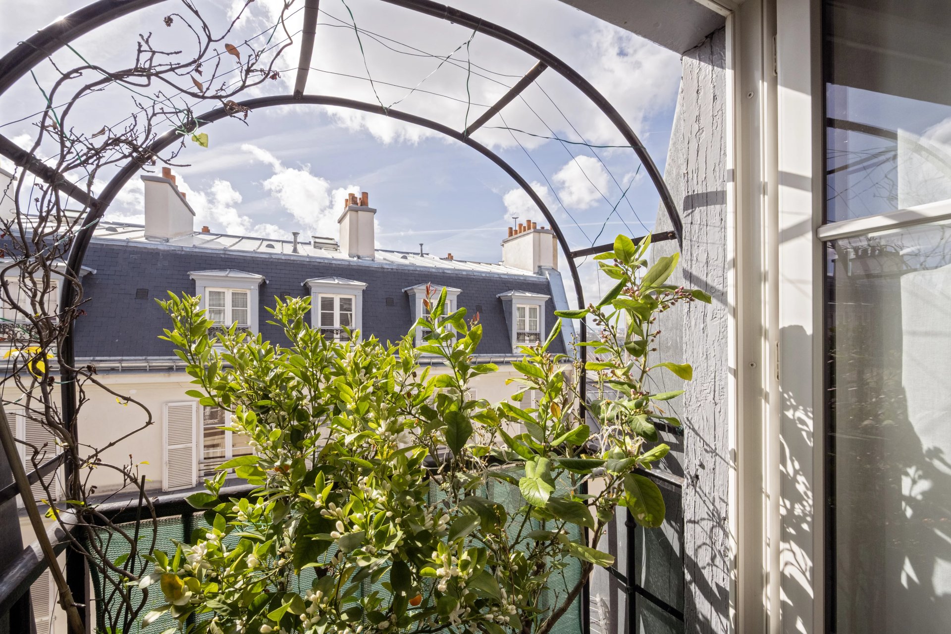 Rue de la Tour d'Auvergne. This air conditioned dual-aspect apartment is on the 5th and top floor of a fine early 20th century building. It includes a fully south-facing living/reception room with an open-plan kitchen, four bedrooms (three overlooking a courtyard, two communicating), a bathroom, a shower room and a utility room.