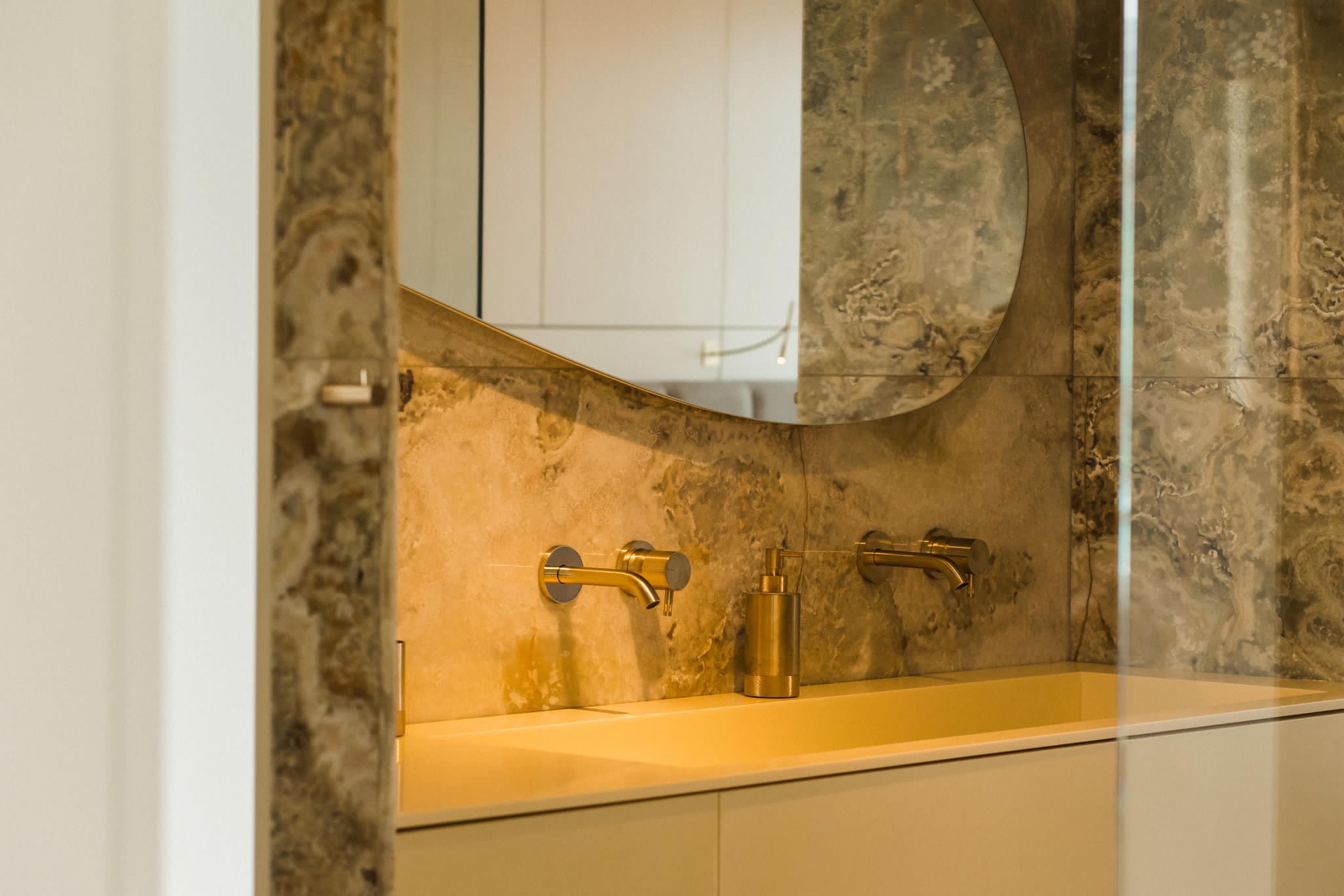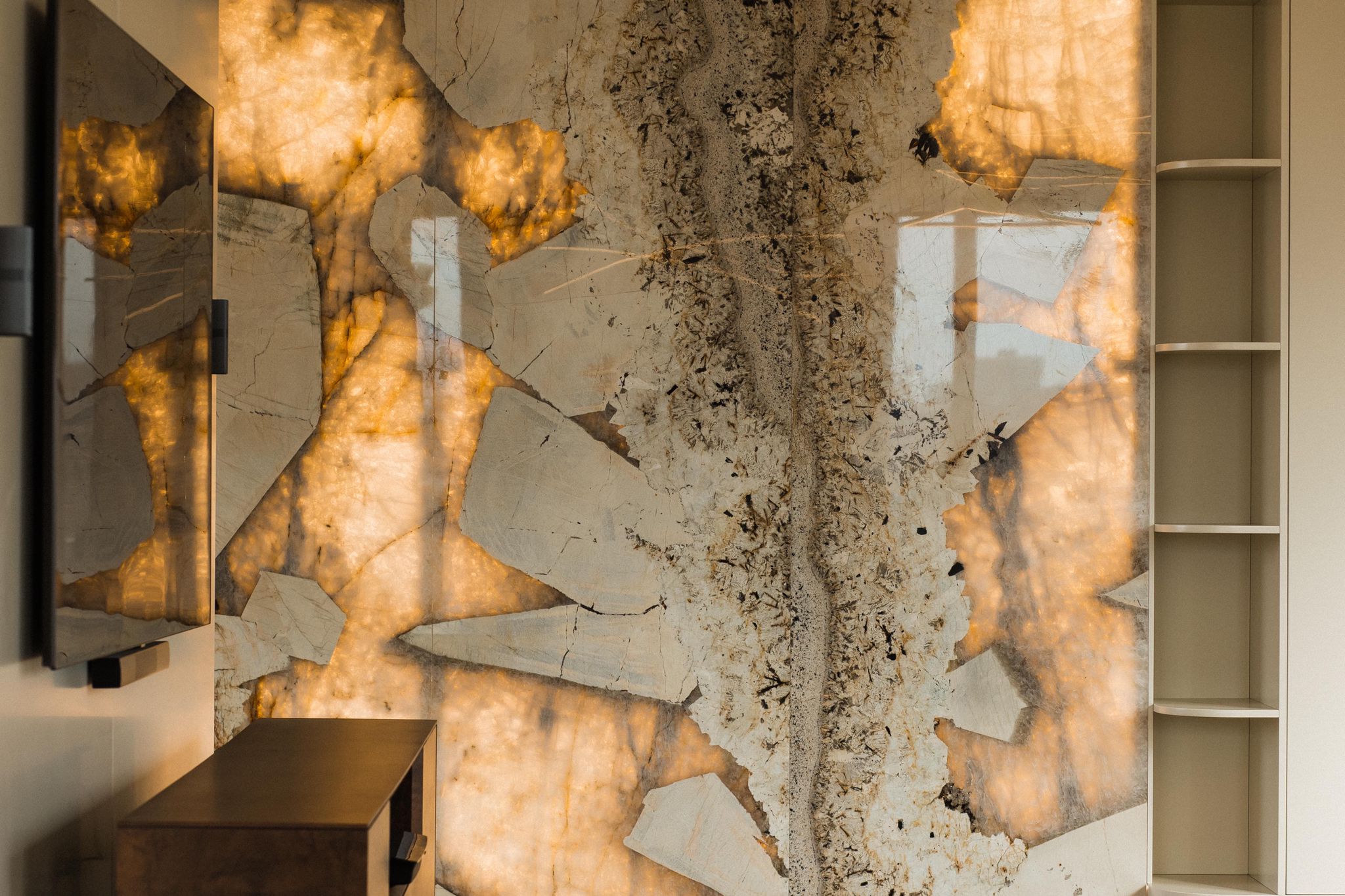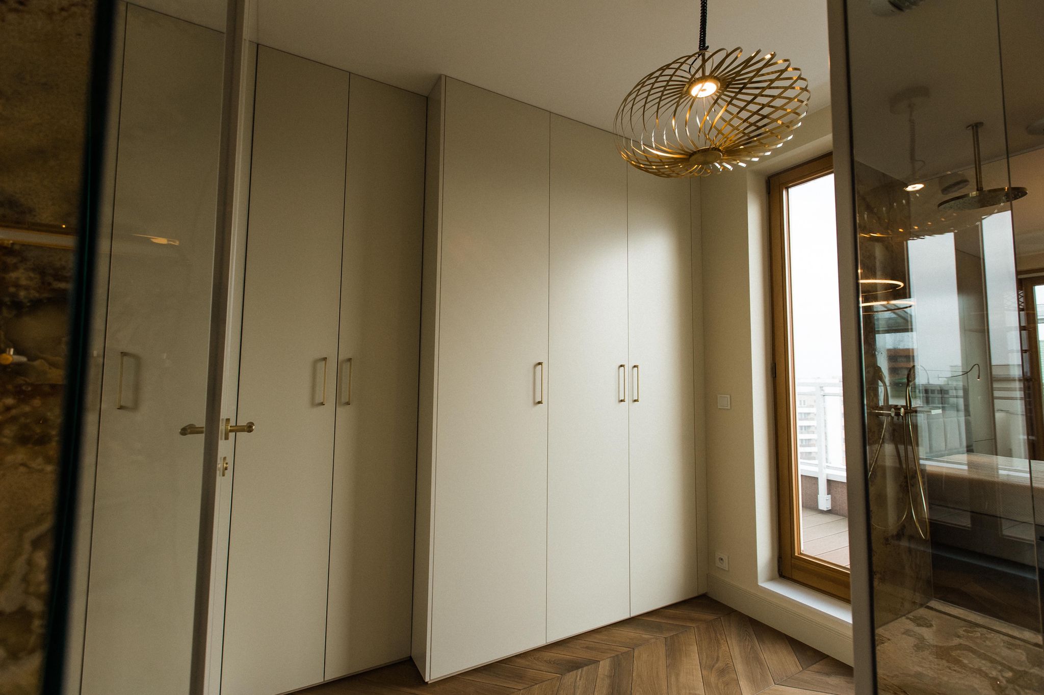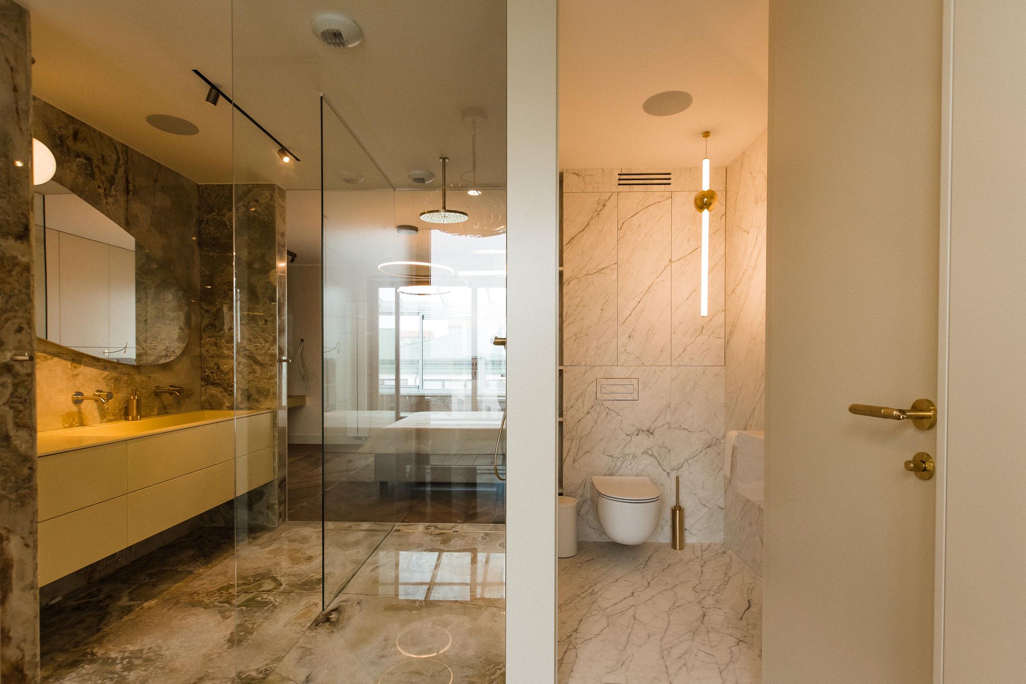 The interiors stand out for their timeless elegance and exceptional quality of finishes. Natural materials such as oak flooring, Patagonia stone and quartz sinters create a cohesive and luxurious environment. Large wooden windows and carefully designed lighting enhance the sense of space and natural light throughout the apartment.