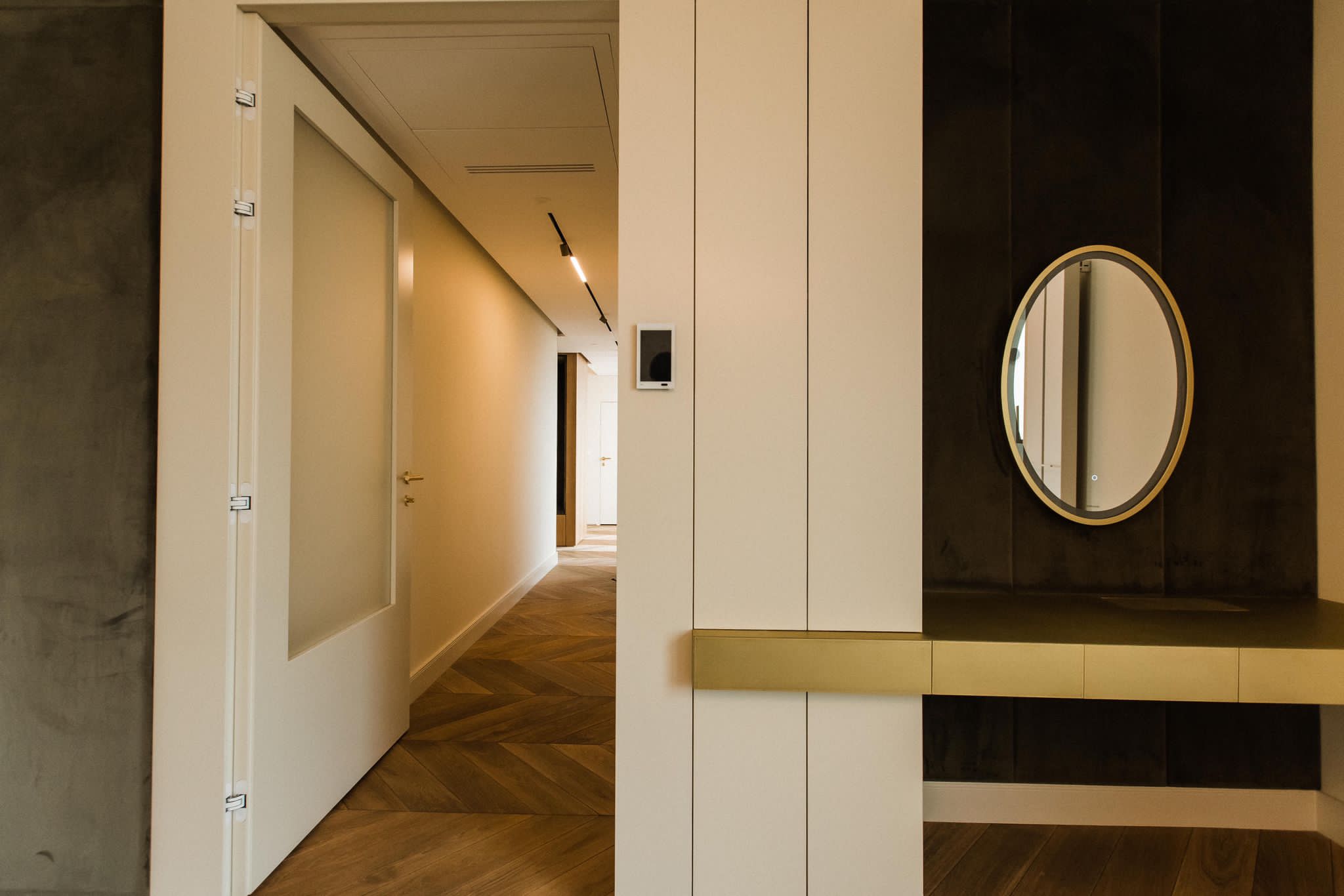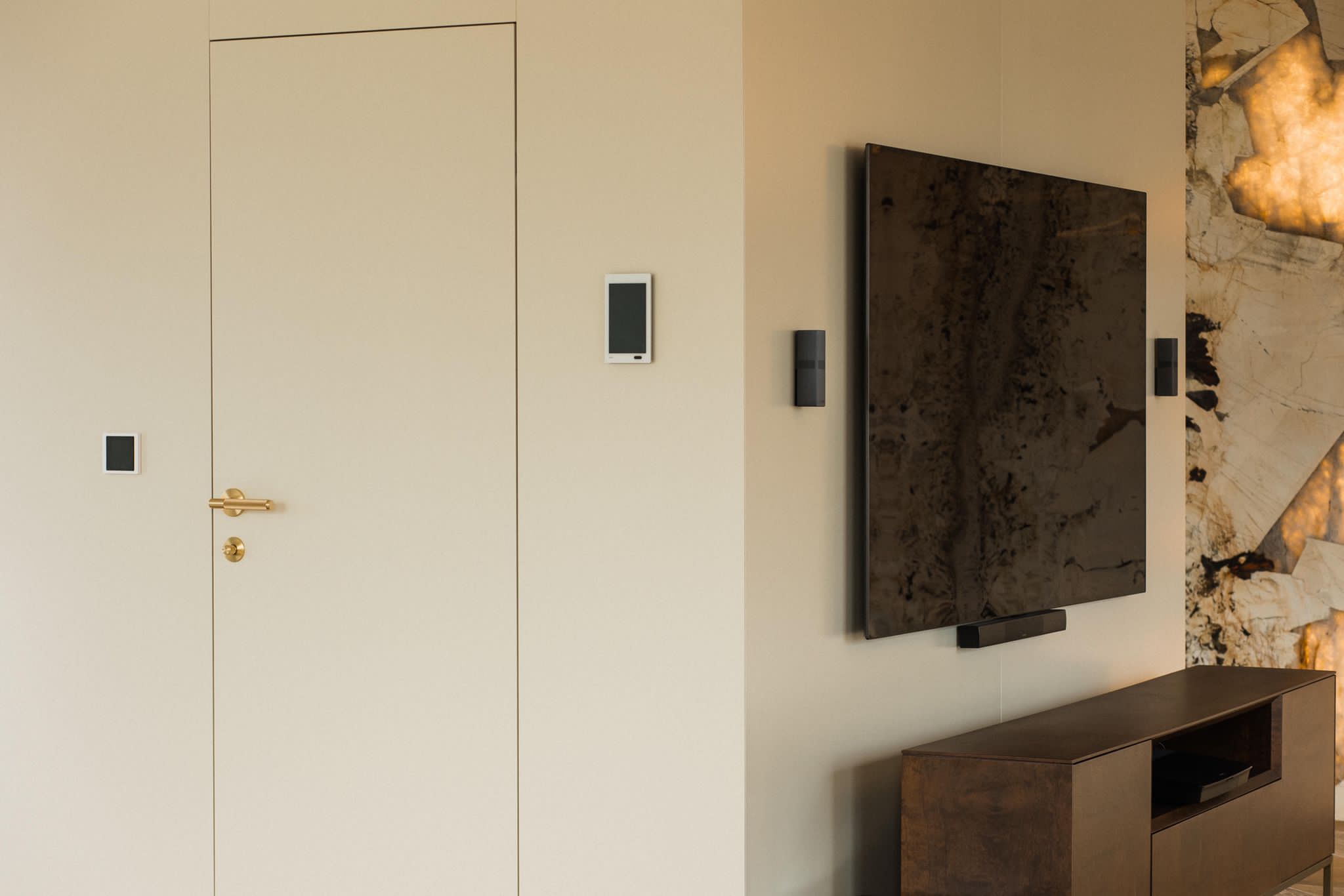 The apartment is equipped with an advanced KNX smart home system, allowing full control of lighting, climate, heating, multimedia and security via smartphone or tablet. The system enables customized lighting scenarios and adapts the living space to the daily rhythm of its residents.