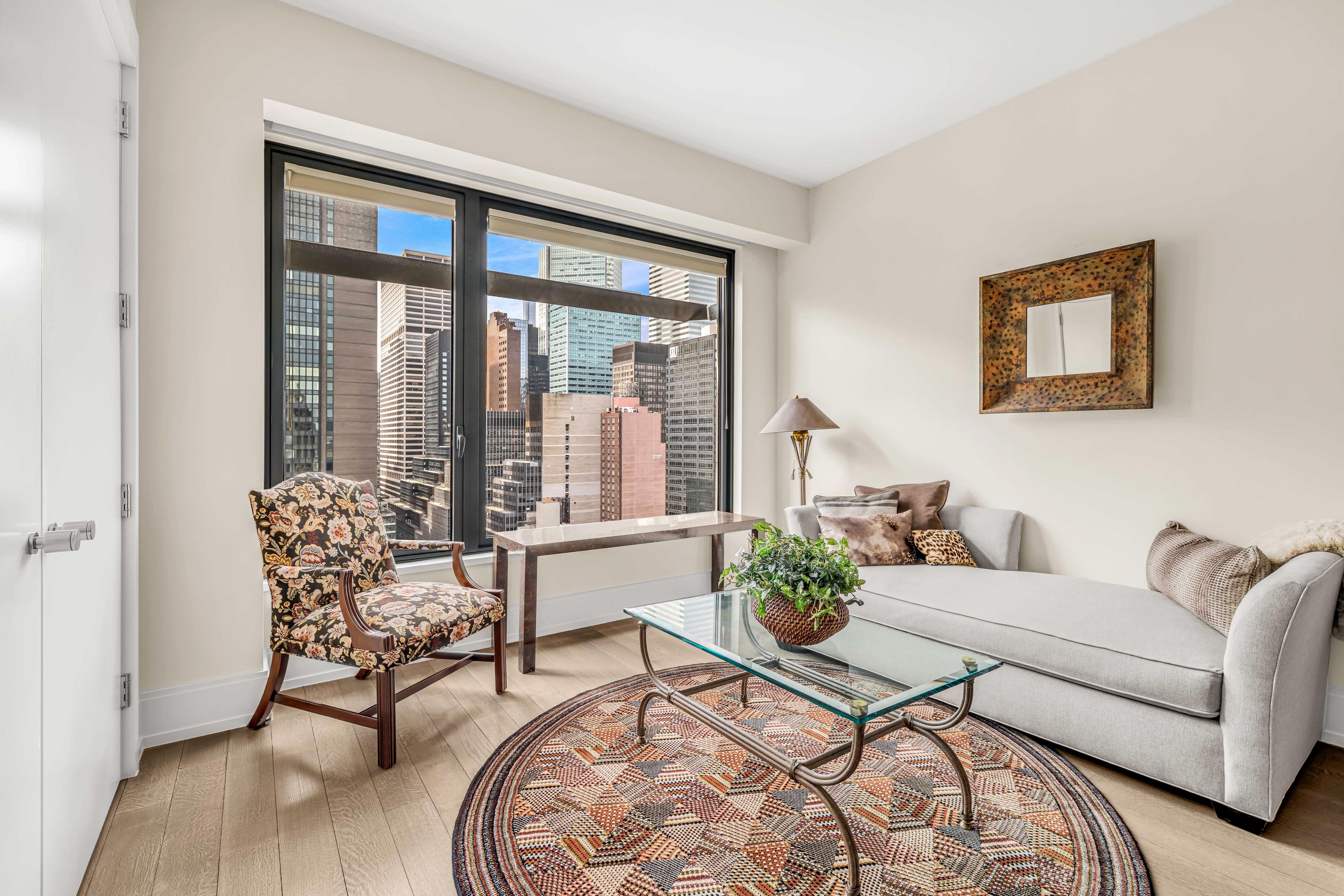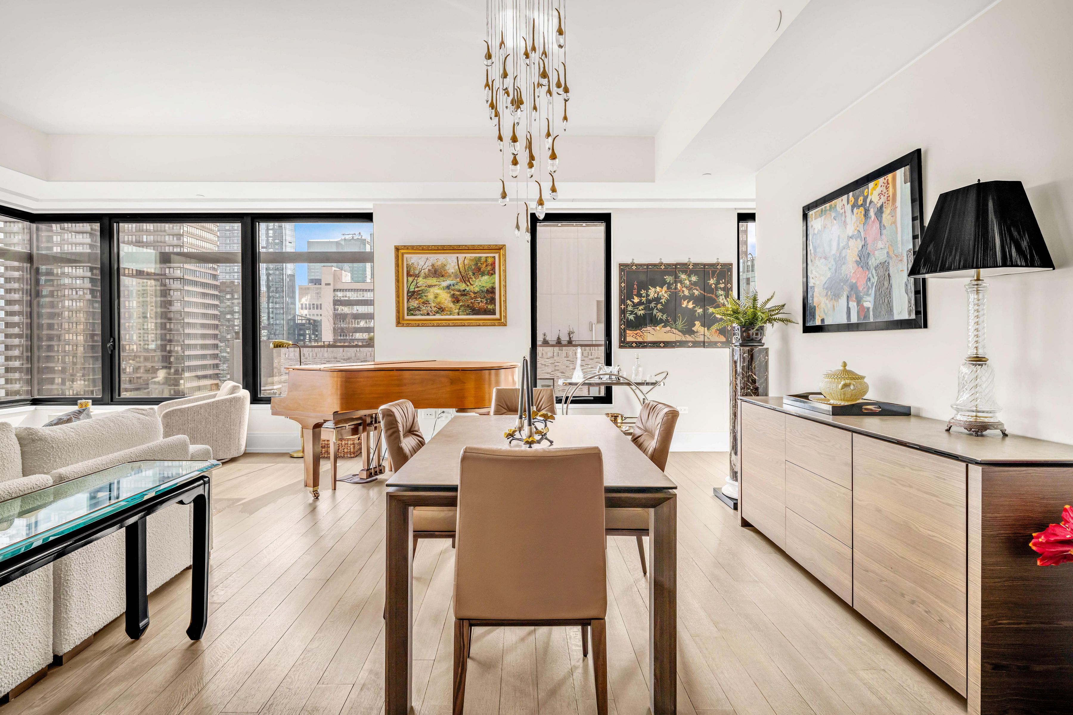301 East 50th Street, Residence 22A Perched on a high floor, this spectacular 2,195 square foot, 3 Bedroom, 3.5 Bath mint-condition residence offers expansive proportions, exceptional light, and river and city views, which include the iconic Chrysler Building and new JP Morgan Chase Tower. A gracious entry foyer leads into a stunning double corner Living and Dining Room, featuring oversized windows, wide plank solid oak flooring, and 10-foot ceilings. The Kitchen is seamlessly integrated with professional-grade Gaggenau appliances, a vented hood over the cooktop, a Dornbracht faucet with instant hot and filtered water, a U-line wine refrigerator, and Caesarstone countertops accented by a Bianco Dolomiti marble backsplash. The Primary Suite offers generous proportions and exceptional storage, including two walk-in closets with custom built-ins as well as an additional reach-in closet. The en-suite 5 fixture Bath is thoughtfully finished in Bianco Dolomiti marble with Waterworks fixtures, Calacatta Gold mosaic flooring, heated floors, deep soaking tub, separate glass enclosed shower, and a smart Toto toilet. Two additional very spacious Bedrooms, each with en-suite Baths, provide flexibility for guests or a home office. Additional features of this home include: 8-foot solid core doors, motorized shades throughout, multi-zone climate control, city-quiet Low-E glass windows, and a full-size side by side LG washer and dryer. Designed by COOKFOX Architects, 301 East 50th Street is a LEED certified full-service limestone condominium, with enhanced air filtration, energy efficiency, and environmentally conscious design. Residents enjoy a comprehensive amenity package including a 24-hour doorman and concierge, fitness center, spa with steam and sauna, treatment room, relaxation lounge, a landscaped wellness terrace, central laundry room, cold storage, pet grooming room and bike storage. Perfectly positioned between Sutton Place and Beekman Place, the building offers a quiet residential setting just moments from the East River and the best of Midtown Manhattan, offering easy access to the E/F/6 trains, Grand Central Station and the East River Greenway.