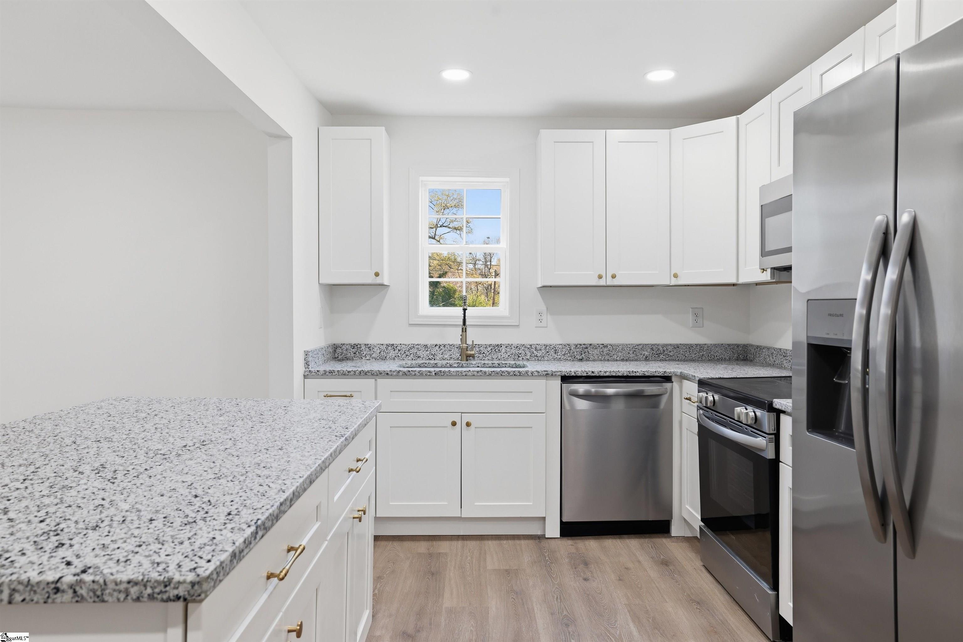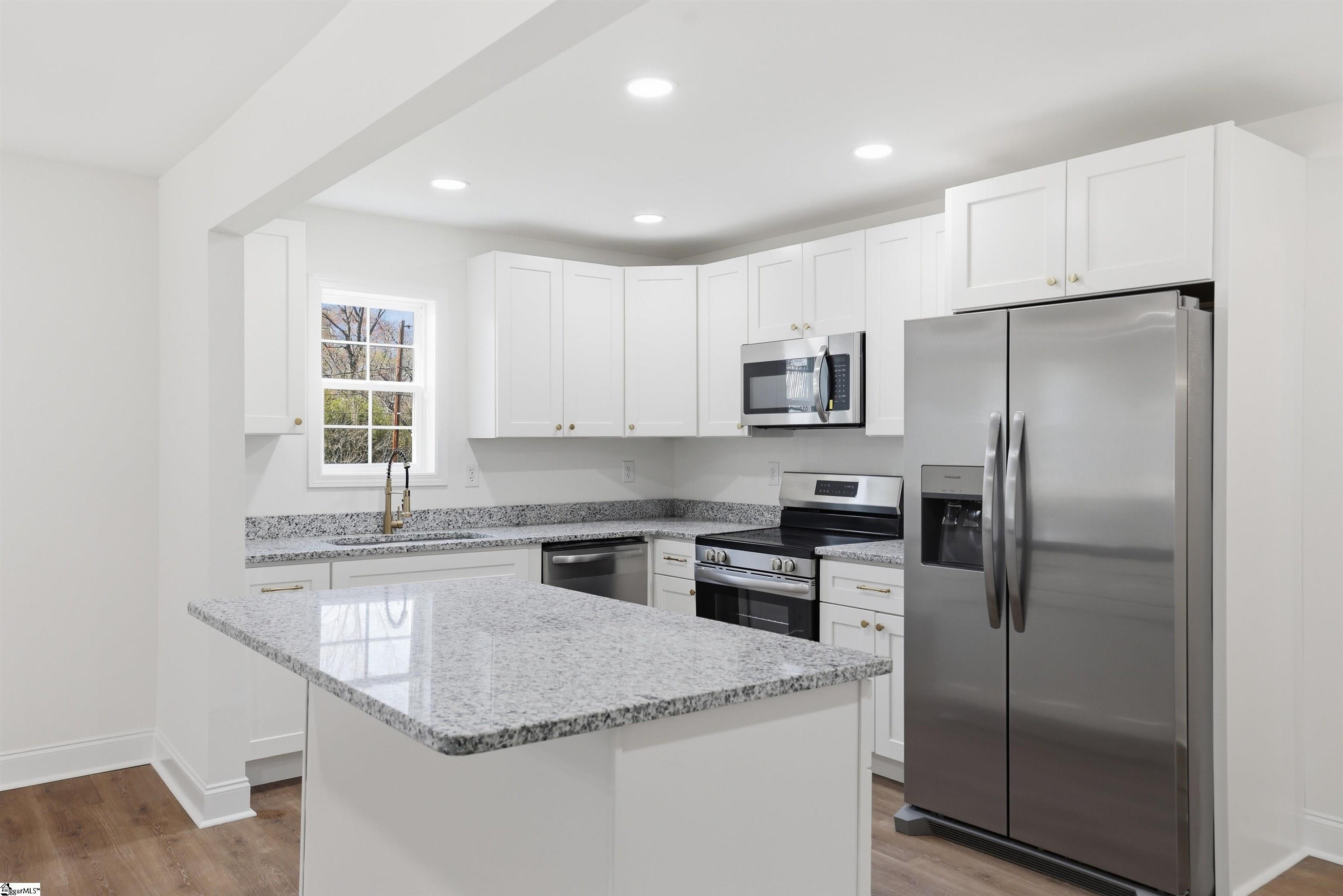 Situated on a nearly half-acre corner lot, this fully renovated 3-bedroom, 3-bath home offers the perfect blend of modern updates and functional outdoor space - just minutes from everything Greenville has to offer. From the moment you arrive, the fresh exterior, large covered front porch, and expansive decking create an inviting first impression with plenty of room to relax or entertain. Inside, the home opens to a bright, open-concept living area with updated flooring, recessed lighting, and a seamless flow into the kitchen. The kitchen has been completely updated with white shaker cabinetry, granite countertops, stainless steel appliances, and a large island that anchors the space - ideal for both everyday living and hosting. The layout is thoughtfully designed with three full bathrooms, including a private primary suite featuring its own bath and walk-in closet. Step outside and you'll find one of the property's standout features - a large backyard with a detached barn, offering endless potential for storage, a workshop, or hobby space. The corner lot provides added privacy, space, and flexibility that's hard to find at this price point. Located just 2 miles from Swamp Rabbit Caf and less than 5 miles from the heart of Downtown Greenville, you'll enjoy quick access to some of the area's best dining, shopping, and outdoor recreation. Whether you're looking for a move-in ready home, space to spread out, or room to grow, this property delivers a rare combination of updates, land, and convenience in a prime Greenville location.