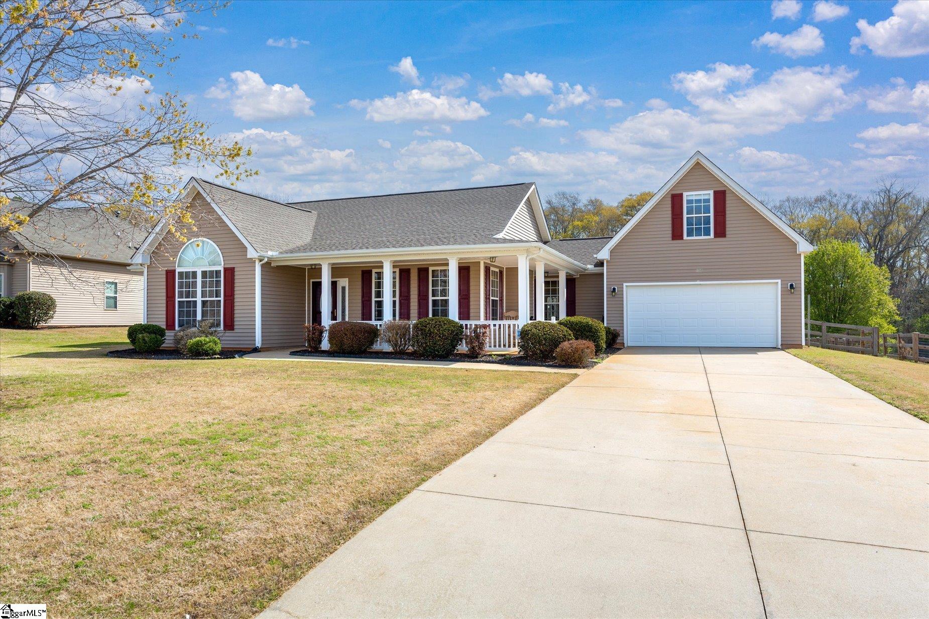 This is an incredible opportunity to acquire a remarkable property situated in the beautiful Farm at Sandy Springs in Piedmont. Welcome to 164 Pendock Lane, a charming single-story ranch that includes a bonus feature. The layout of this home is exceptional, comprising 3 bedrooms and 2 full bathrooms. The modern open floor plan creates a wonderful living space. You will undoubtedly fall in love the moment you enter the driveway. This home, owned by a single family, has been well-loved. You are welcomed by a pleasant flat lot that exceeds 1/2 acre. The yard is meticulously maintained and equipped with inground irrigation in both the front and back areas. The front porch is covered, providing a lovely space that wraps around the house. The highlighted banisters enhance the charm and intimacy, making it a perfect spot for enjoying morning coffee. Additionally, there is a side door entrance, which is quite convenient for unloading items from the car. Now, let us step inside and explore. The front door is stunning, featuring lead glass accents along with an embellished glass storm door. Once inside, you will surely appreciate the floor plan, which includes a welcoming foyer with hardwood flooring and a coat closet. The great room boasts high ceilings adorned with numerous windows, complemented by a cozy gas log fireplace and mantle. The kitchen is equipped with granite countertops, a tile backsplash, and ample space, including an island. All appliances will remain with the sale. I particularly admire the wooden cabinets, as they impart a warm and elegant ambiance. There is also a delightful dining area that offers views of both the front and back yards, destined to become one of your favorite places. Further down the hall, you will discover two generously sized bedrooms and a full bathroom featuring a shower-tub combination. A laundry room equipped with a washer and dryer, which will also convey, is accompanied by a linen closet. The primary suite is exceptionally spacious, with a large arched window that significantly enhances the room by allowing in natural light. The primary bathroom includes dual separate vanities, a garden tub, and a standalone shower. You will appreciate the generously sized walk-in closet, which boasts a very practical layout. Now, let us take a look at the backyard. There is a utility closet and a concrete patio that overlooks more than 1/2 acre of fenced, nearly level backyard. There is a utility shed equipped with power, ideal for storing all your lawn equipment. The lot itself was a significant factor in my decision. Where else can you find over half an acre that adjoins 42 acres of communal land? Indeed, you heard correctly: 42 acres are owned by the neighborhood, ensuring that you will never have to worry about any development behind your property. This is the charm of the Farm at Sandy Springs neighborhood. In total, there are 87 acres of common space, with nearly all homes positioned so that they do not back onto one another and are situated on at least 1/2-acre lots. It is truly a hidden treasure. Additionally, the neighborhood features a beautiful pool, which has just been resurfaced, along with an abundance of chairs - there is no need to compete for a spot - and new chairs have already been purchased and will be available in May when the pool opens. The cabana is also impressive, complete with swings and picnic tables, and can be reserved for events. The children's playground was recently replaced, and new plastic bumper edging was added this year. The location is exceptional: just 25 minutes to downtown Greenville and 2 miles to grocery stores, gas stations, pharmacies, and Highway 185 (toll), which can take you to the main Greenville Upstate hospital and medical facilities in 20 minutes. House has just been cleaned professionally and ready for you to come put your spin on this charming home. I am on standby for private showings call anytime!